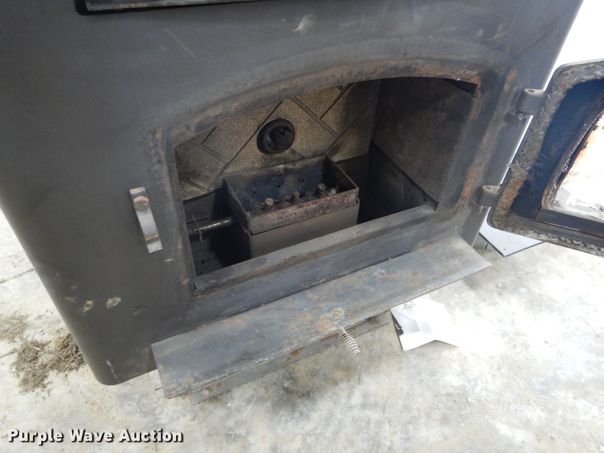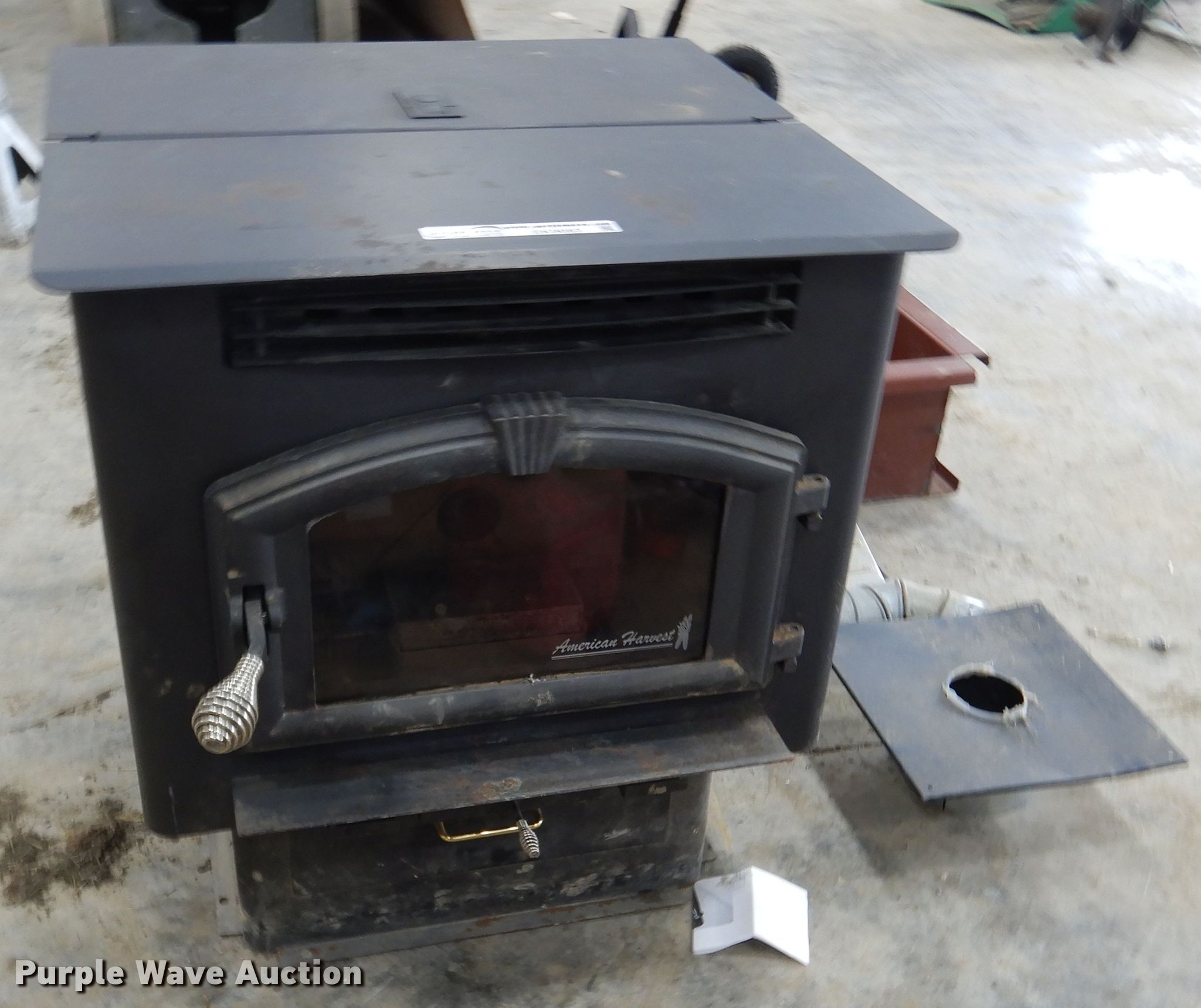 Purple Wave is selling a used Appliances in Missouri. This item is a American Harvester 6039T pellet stove with the following: 29"W x 28"D x 31"H, 1,200 sq. ft. heating capacity, 48,280 BTU per hour max heat output, 60 lbs fuel storage capacity, Hopper extension, Owners manual
