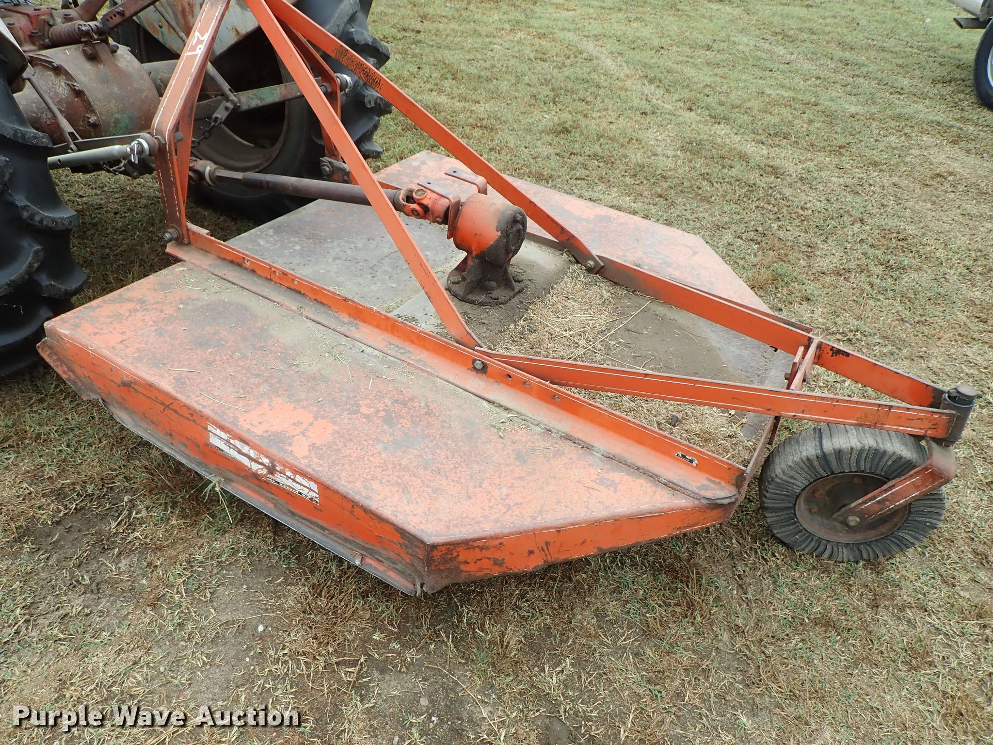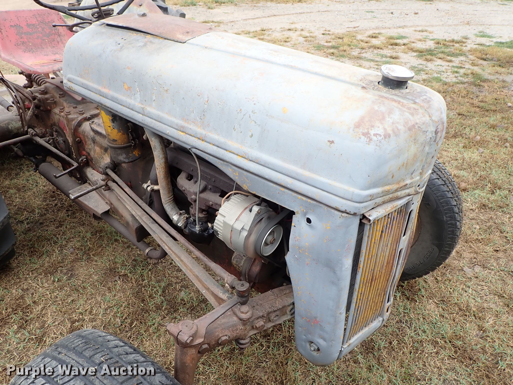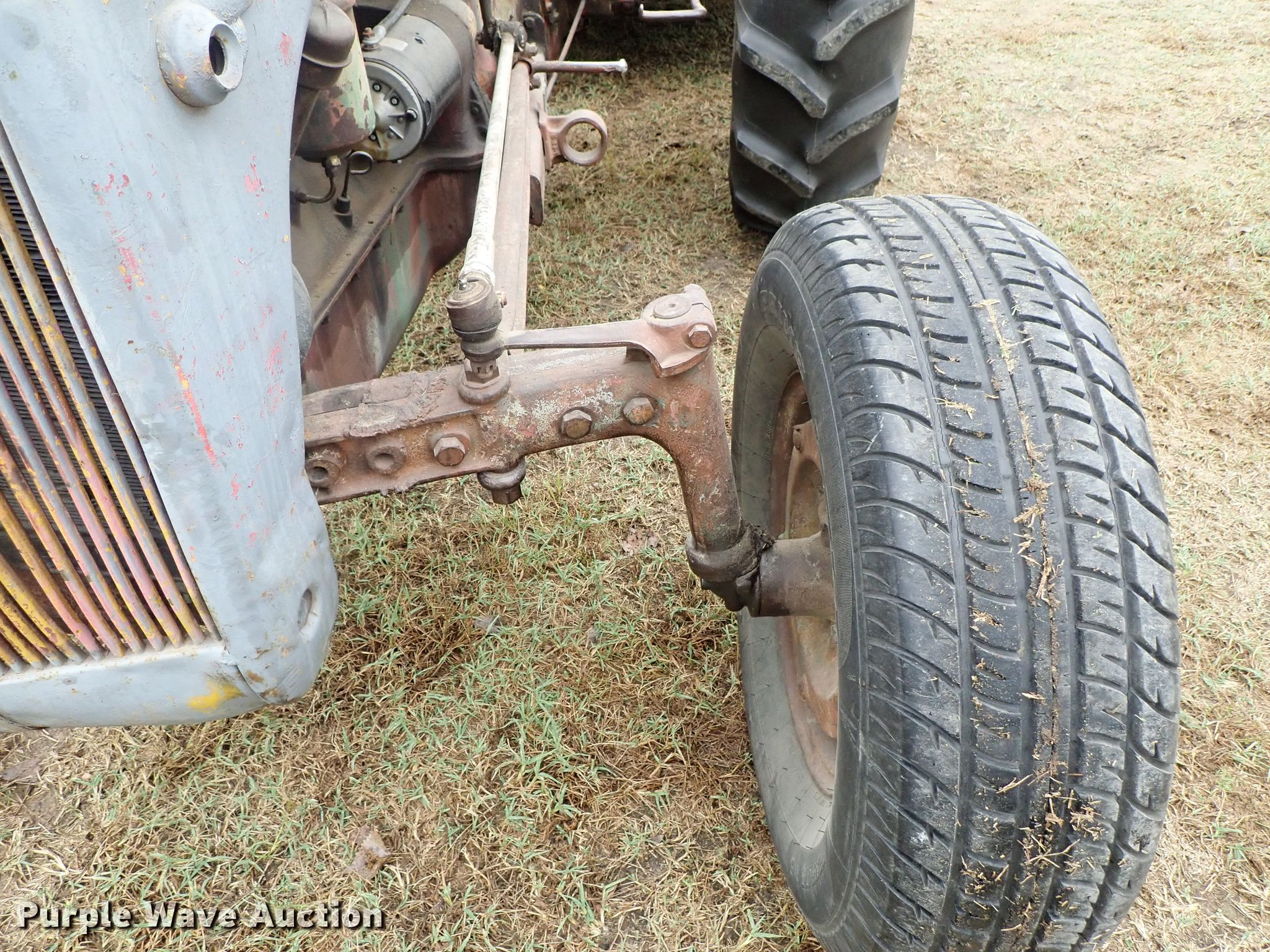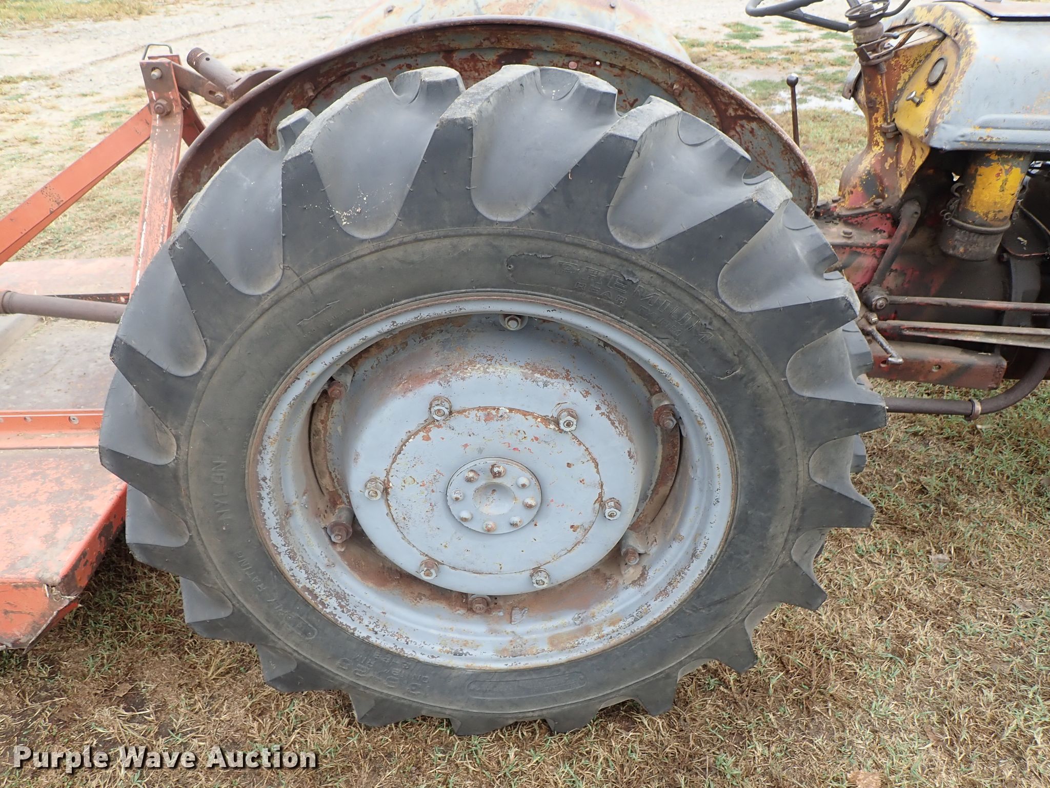 Purple Wave is selling a used Tractor in Kansas. This item is a Ford 9N tractor with the following: Four cylinder gas engine, Manual transmission, 4F-1R gears, Three point, 540 PTO, Rotary mower, 60"W, 540 PTO, 235/75R15 tires, 13.6-28 rear tires, Serial 23172