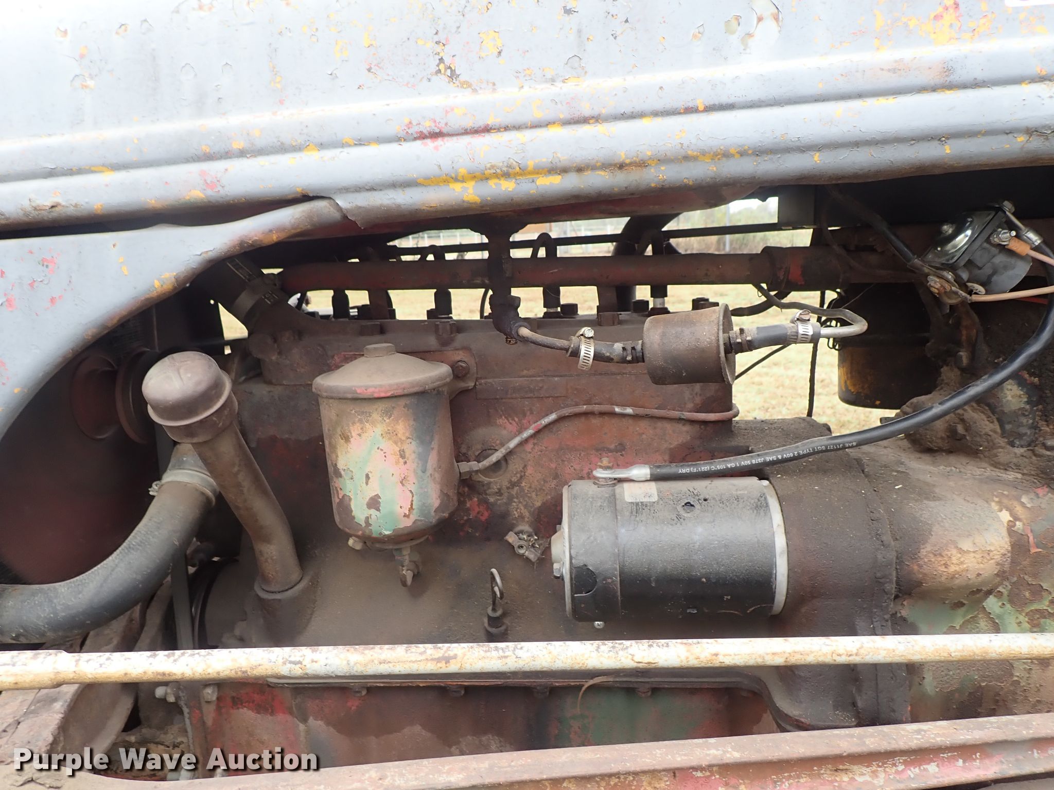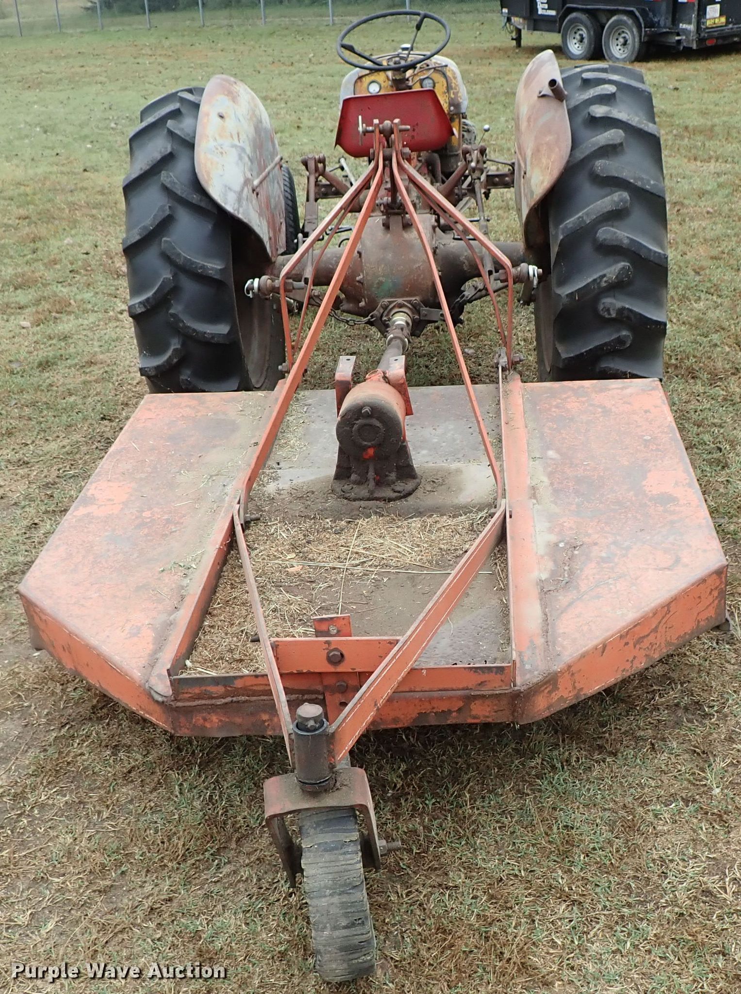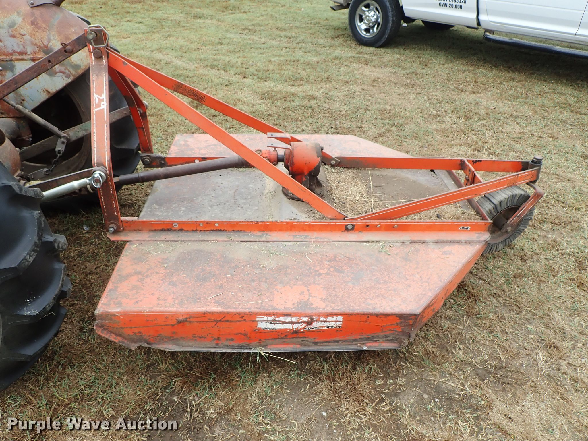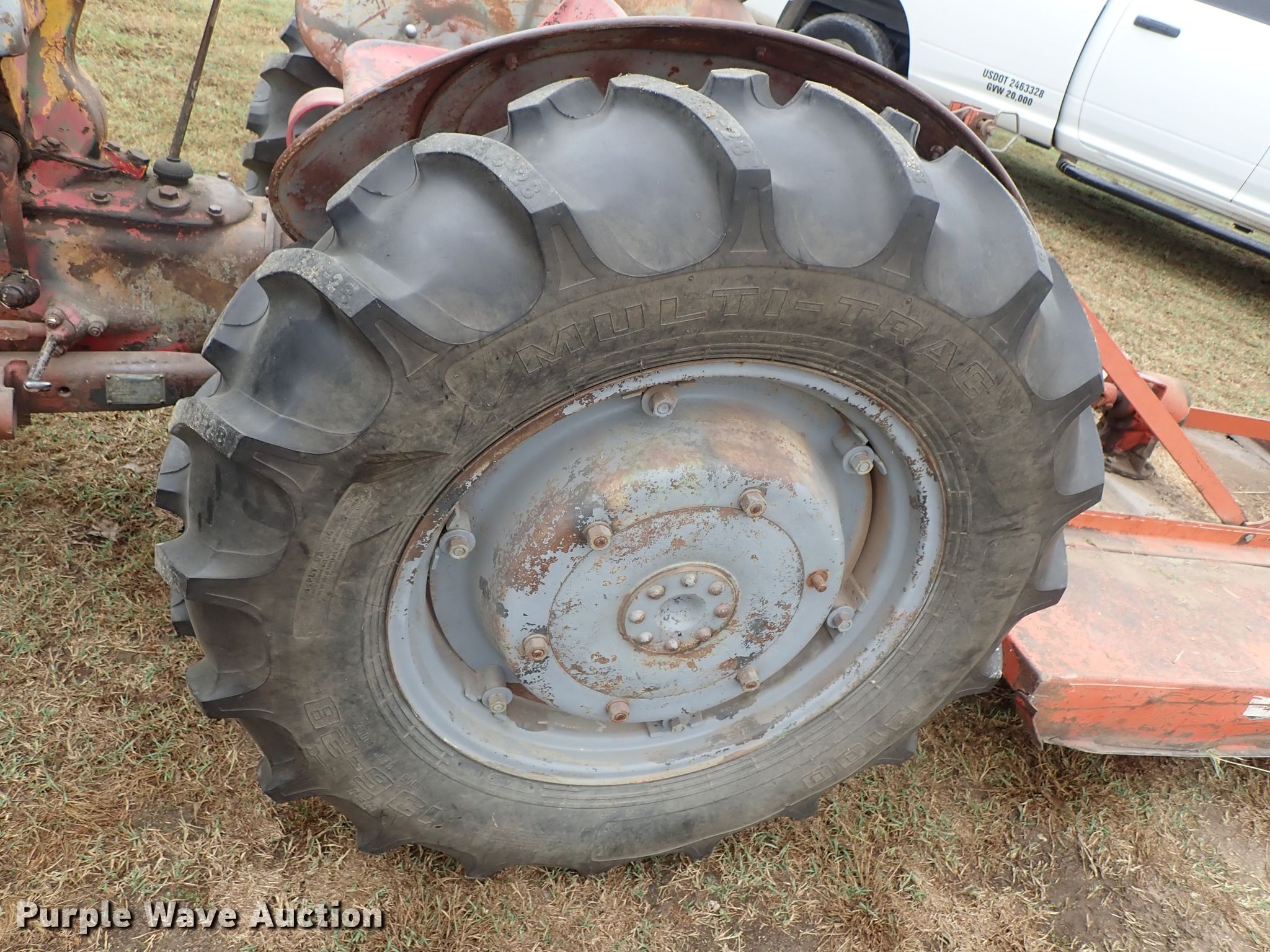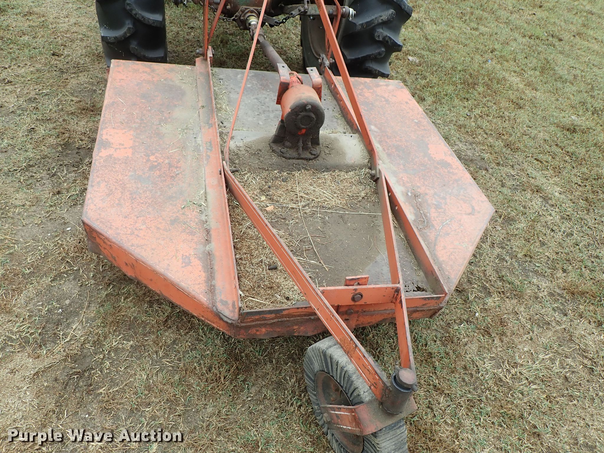 Purple Wave is selling a used Tractor in Kansas. This item is a Ford 9N tractor with the following: Four cylinder gas engine, Manual transmission, 4F-1R gears, Three point, 540 PTO, Rotary mower, 60"W, 540 PTO, 235/75R15 tires, 13.6-28 rear tires, Serial 23172