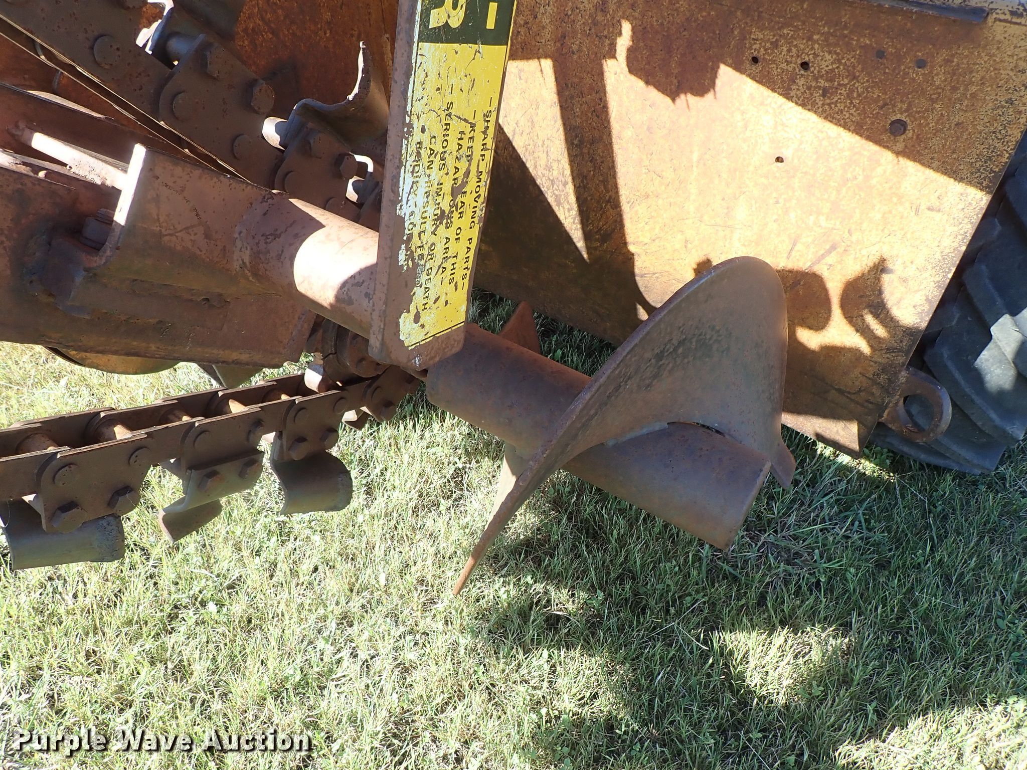 Purple Wave is selling a used Trencher or Rock Saw in Kansas. This item is a 1983 Case 30+4 trencher with the following: Four cylinder gas engine, Hydrostatic transmission, 60"W backfill blade, 60" trenching boom, Approximately 5" cutting width, Case D100 backhoe, 15"W bucket, 26 x 12.00-12 tires, Serial 1223406
