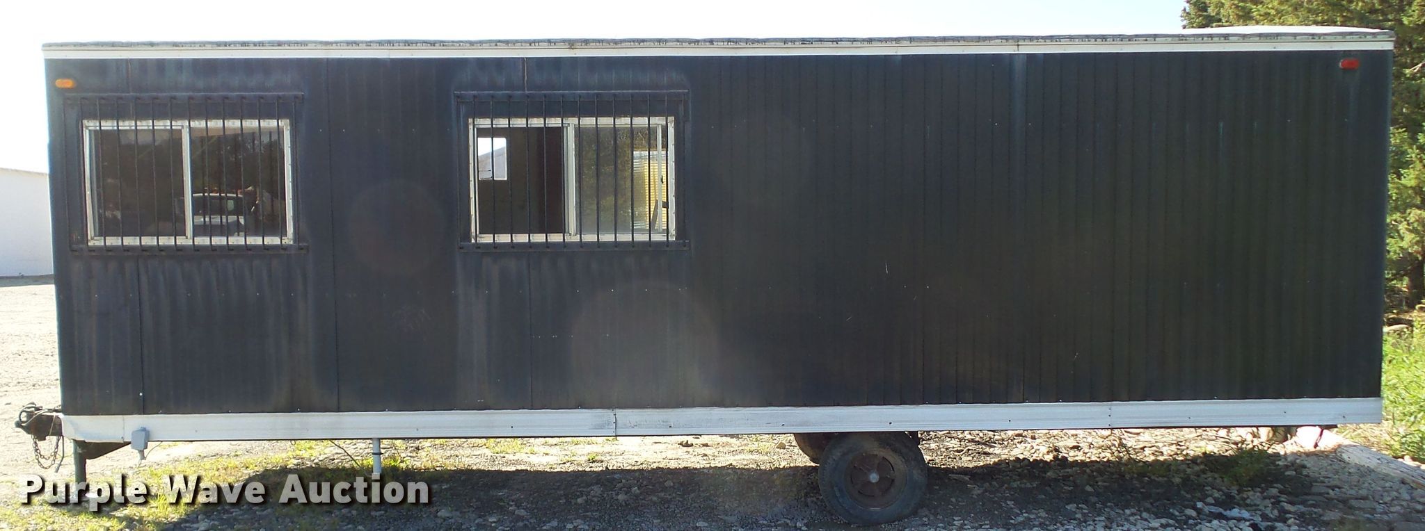 1999 Forest River Premiere job site trailer. 29.5'L x 97"W overall dimensions, 7' interior height, 26'L x 89"W interior dimensions, AC and heat, Stairs, 2 5/16" ball hitch, Single leg landing gear, Electric brakes, 8-14.5 tires. Iowa title. Title distribution may be delayed up to 14 days from verification of funds. 276899. KLK Construction. 646 Hwy T-14. Pella, IA 50219