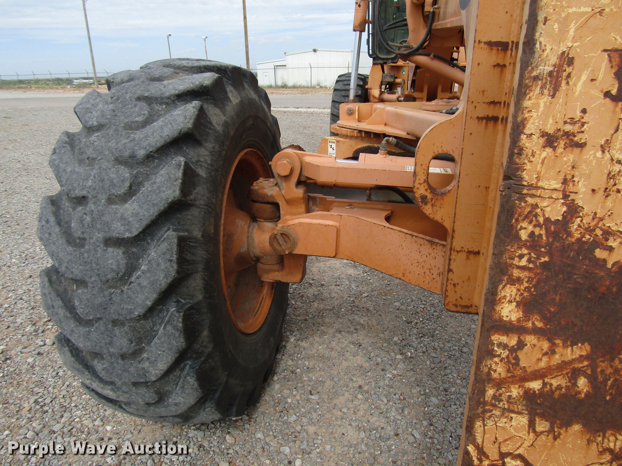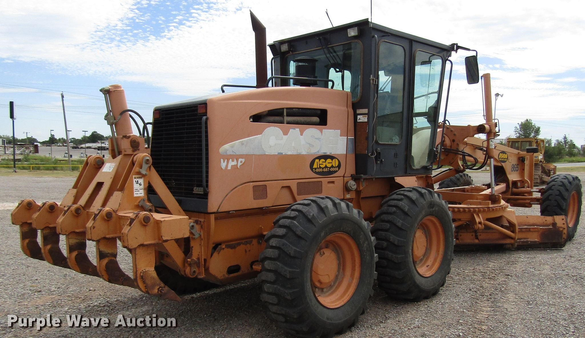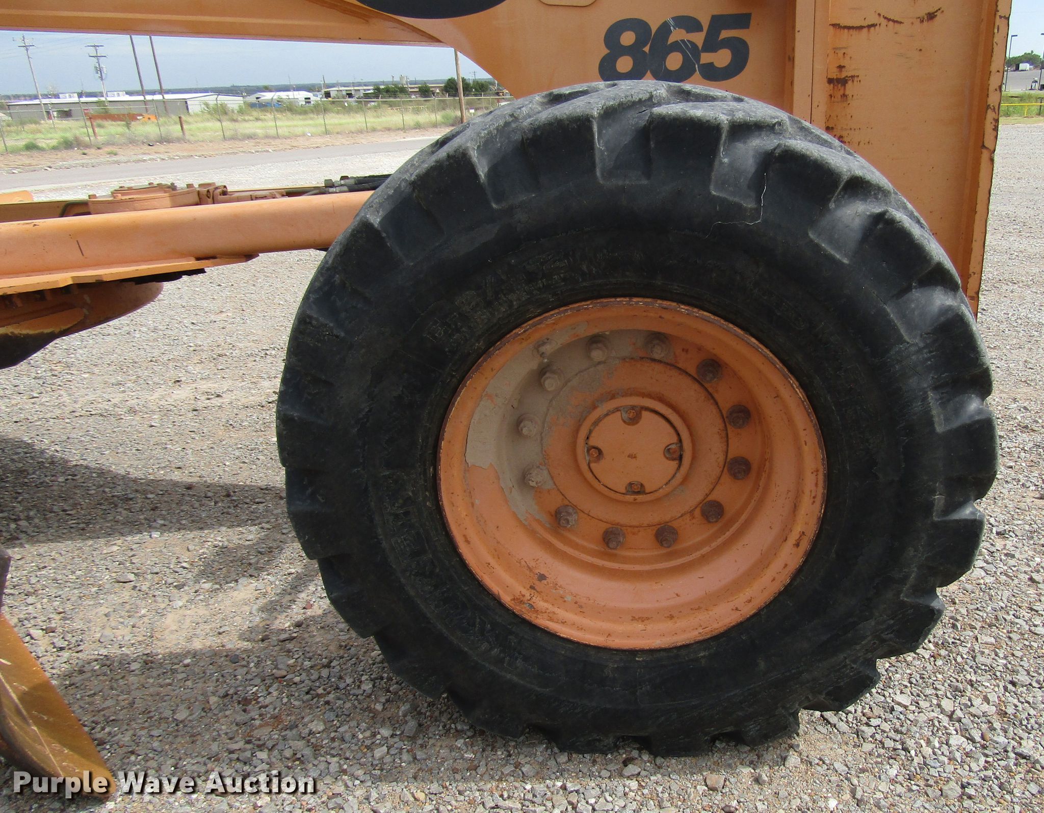 Purple Wave is selling a used Motor Grader in Oklahoma. This item is a 2007 Case 865 motor grader with the following: Cummins QSB6 six cylinder diesel engine, Serial 30918217, Powershift transmission, 8F-4R gears, Enclosed cab, AC and heat, Nine hydraulic control valves, 14'W mold board, Tip controls, Side shift, Circle slip clutch, Rear ripper, (5) shanks, 17.5-25 tires, Uses oil, Serial N7AF04355, Unit# E30