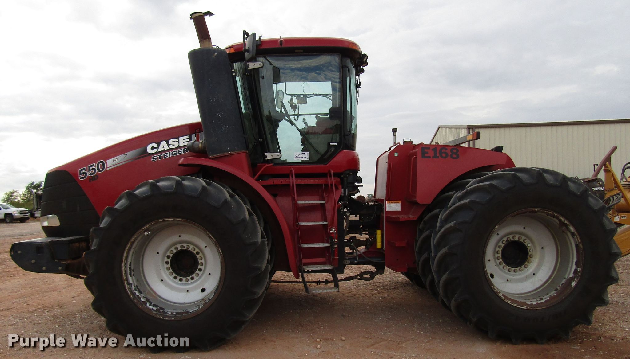 Purple Wave is selling a used Articulated 4-Wheel Drive Tractor in Oklahoma. This item is a 2013 Case IH Steiger 550 HD 4WD tractor with the following: 4,683 hours on meter, Case six cylinder diesel engine, Powershift transmission, Left hand reverser, AC and heat, Seven pin outlet, (4) rear hydraulic remote sets, (22) suitcase weights, 156" wheelbase, 710/70R42 tires, Hydraulic oil filter blocked message, Serial ZDF134203, Unit# E168