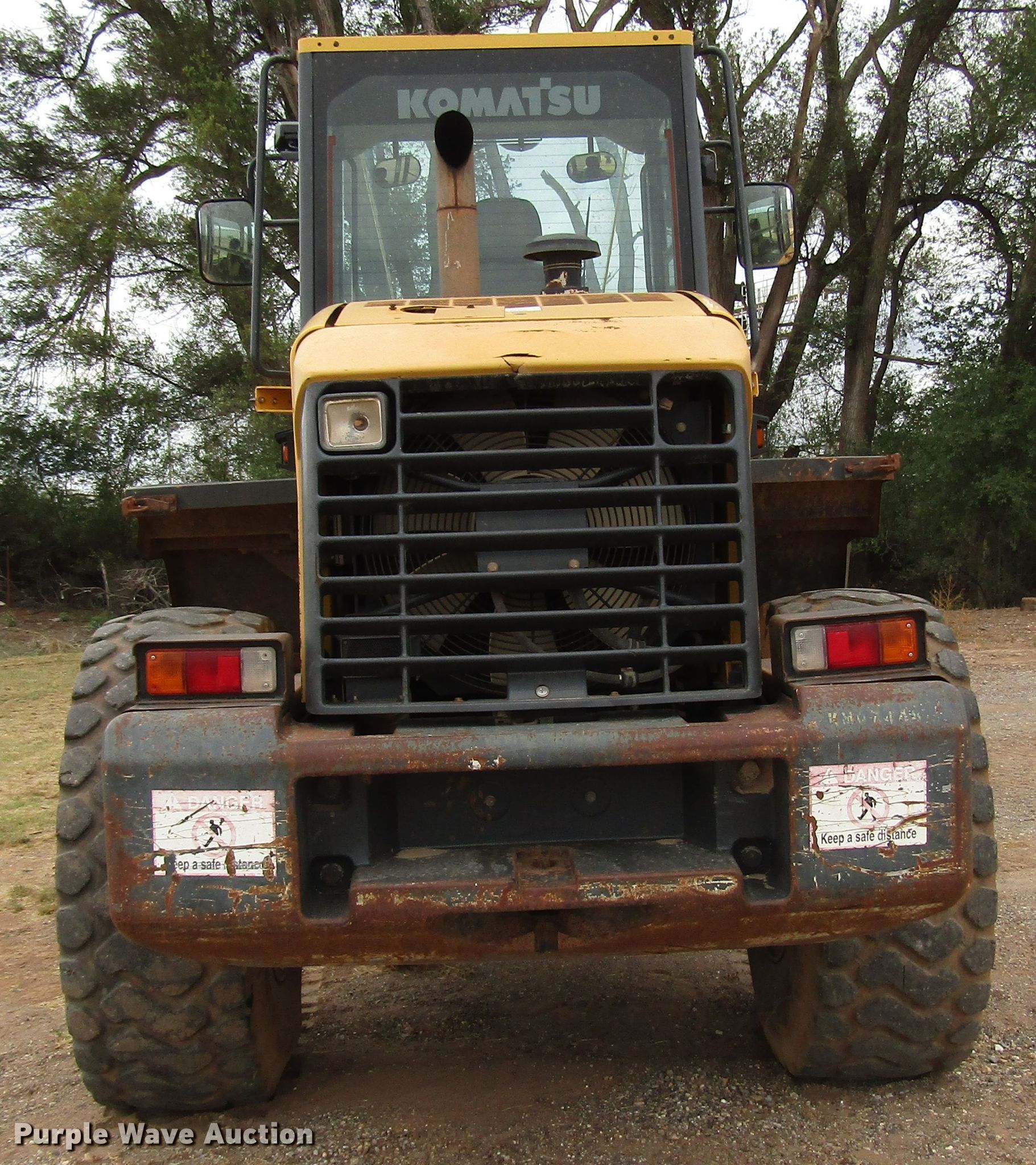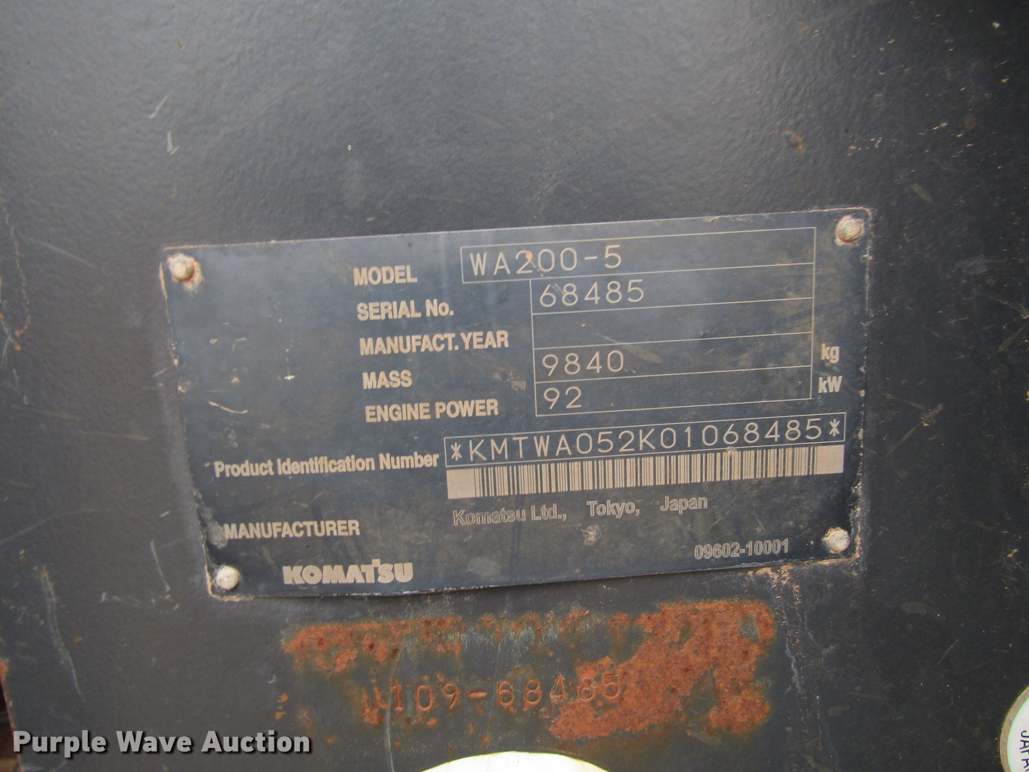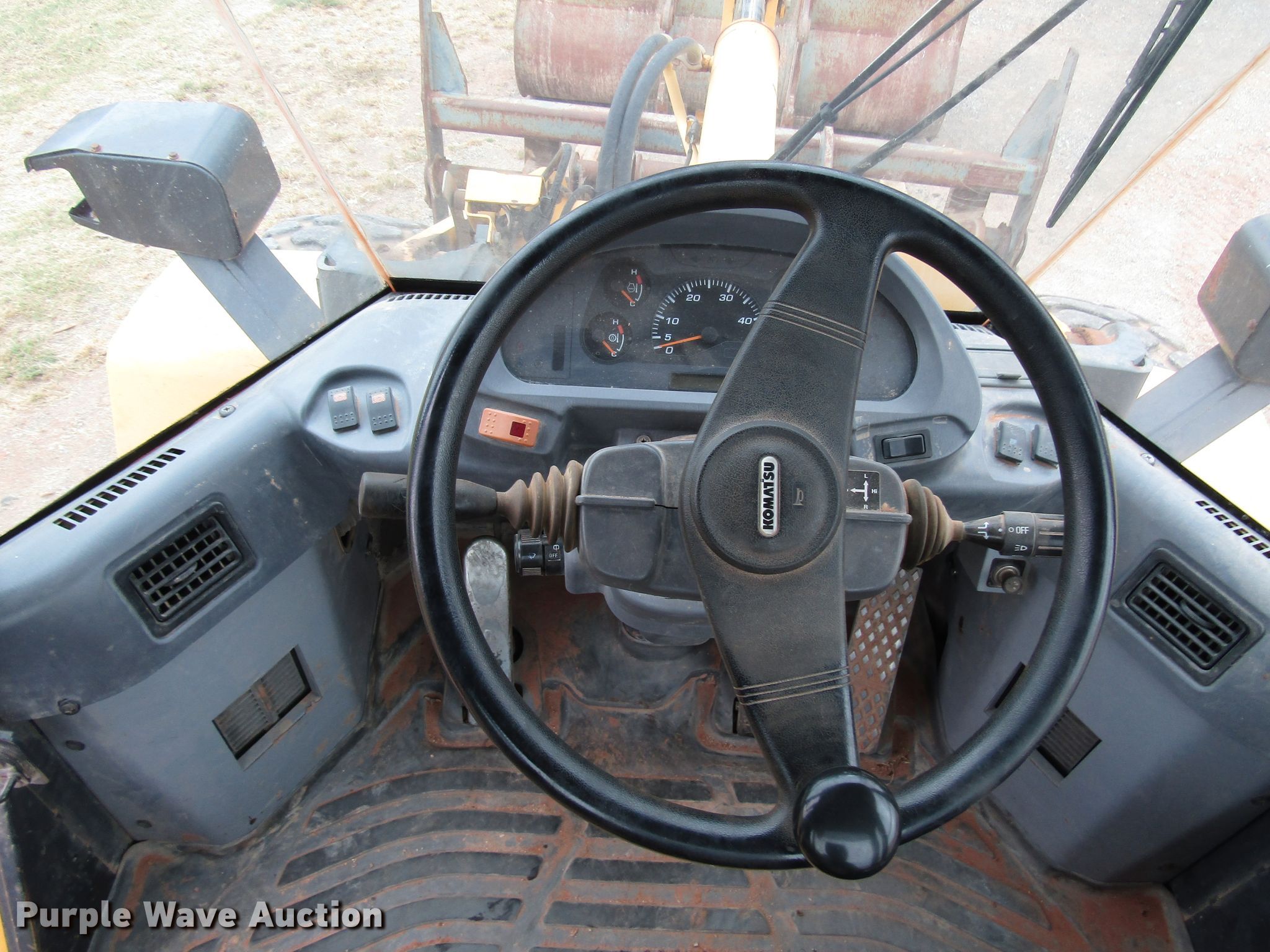 Purple Wave is selling a used Wheel Loader in Oklahoma. This item is a 2007 Komatsu WA200 wheel loader with the following: 7,387 hours on meter, Six cylinder diesel engine, Powershift transmission, 4F-4R gears, Enclosed cab, AC And heat, Joystick bucket controls, 105"W bucket, Weld-on cutting edge, 72"L pallet forks, Hydraulic quick coupler, 20.5R25 tires, Serial KMTWA052K01068485, Unit# E23