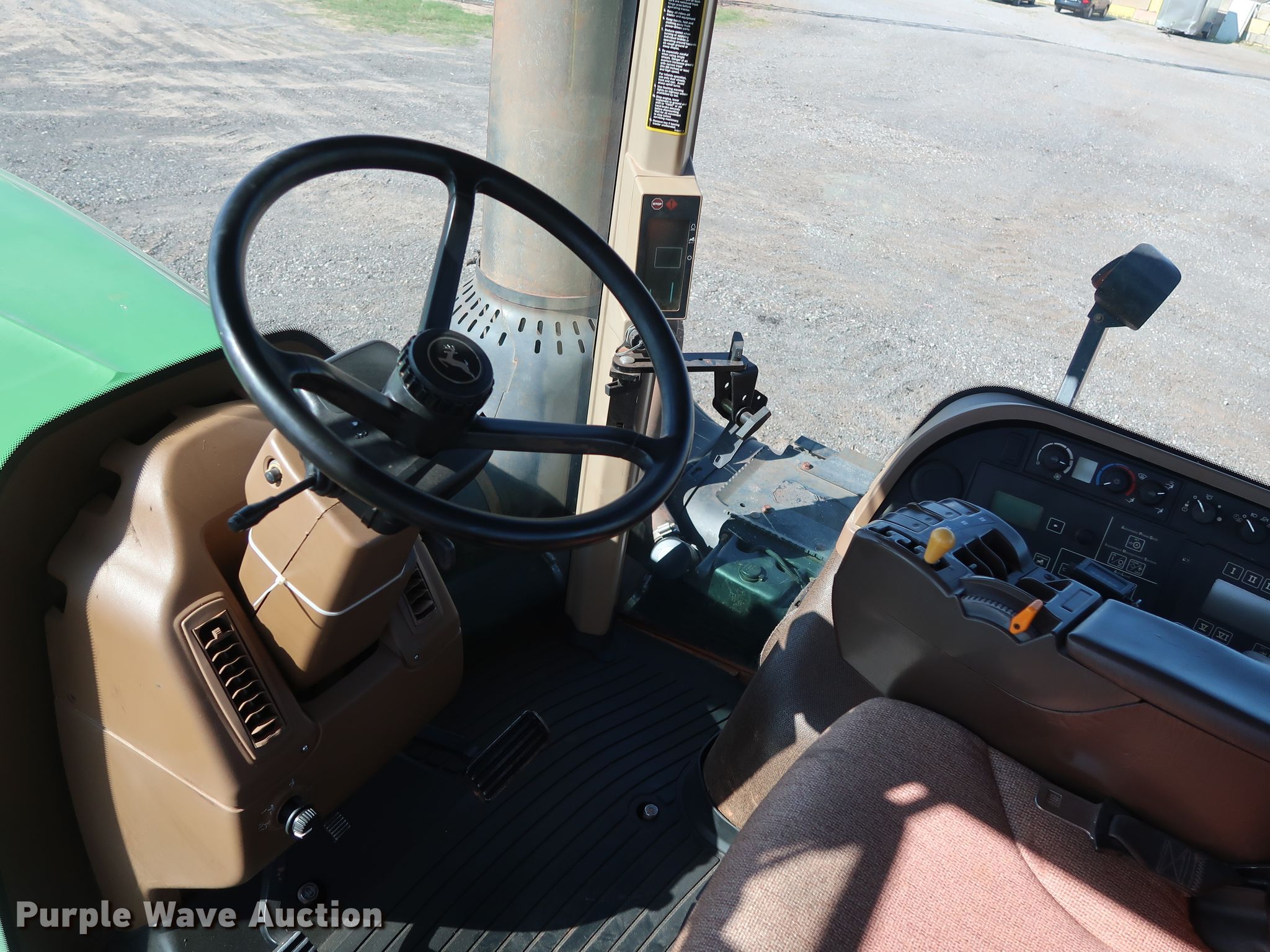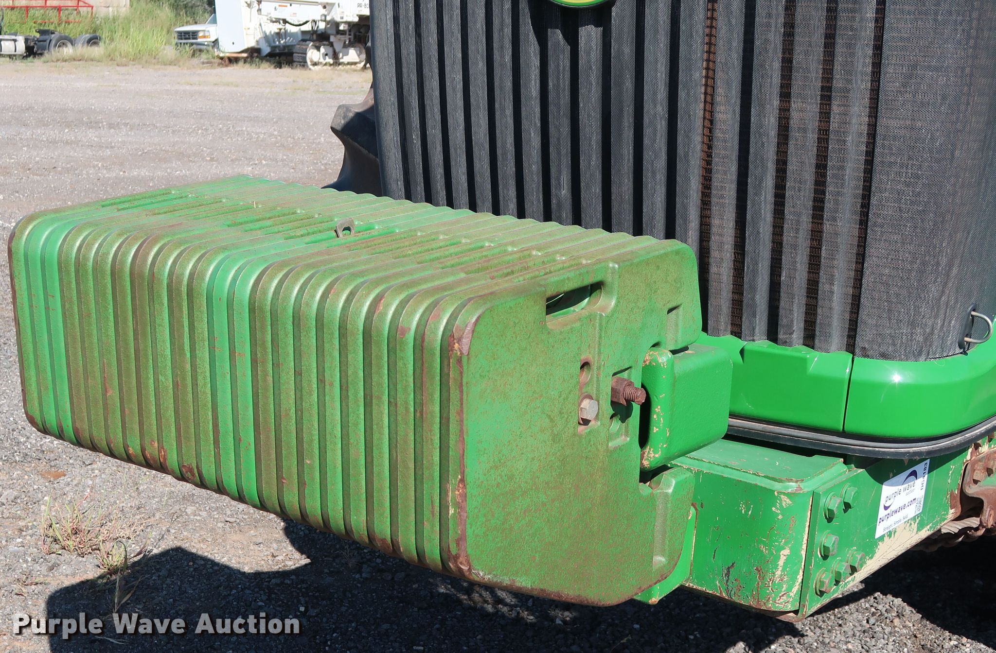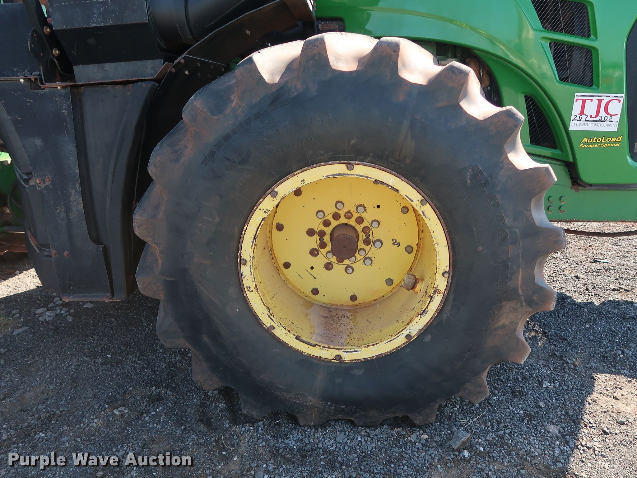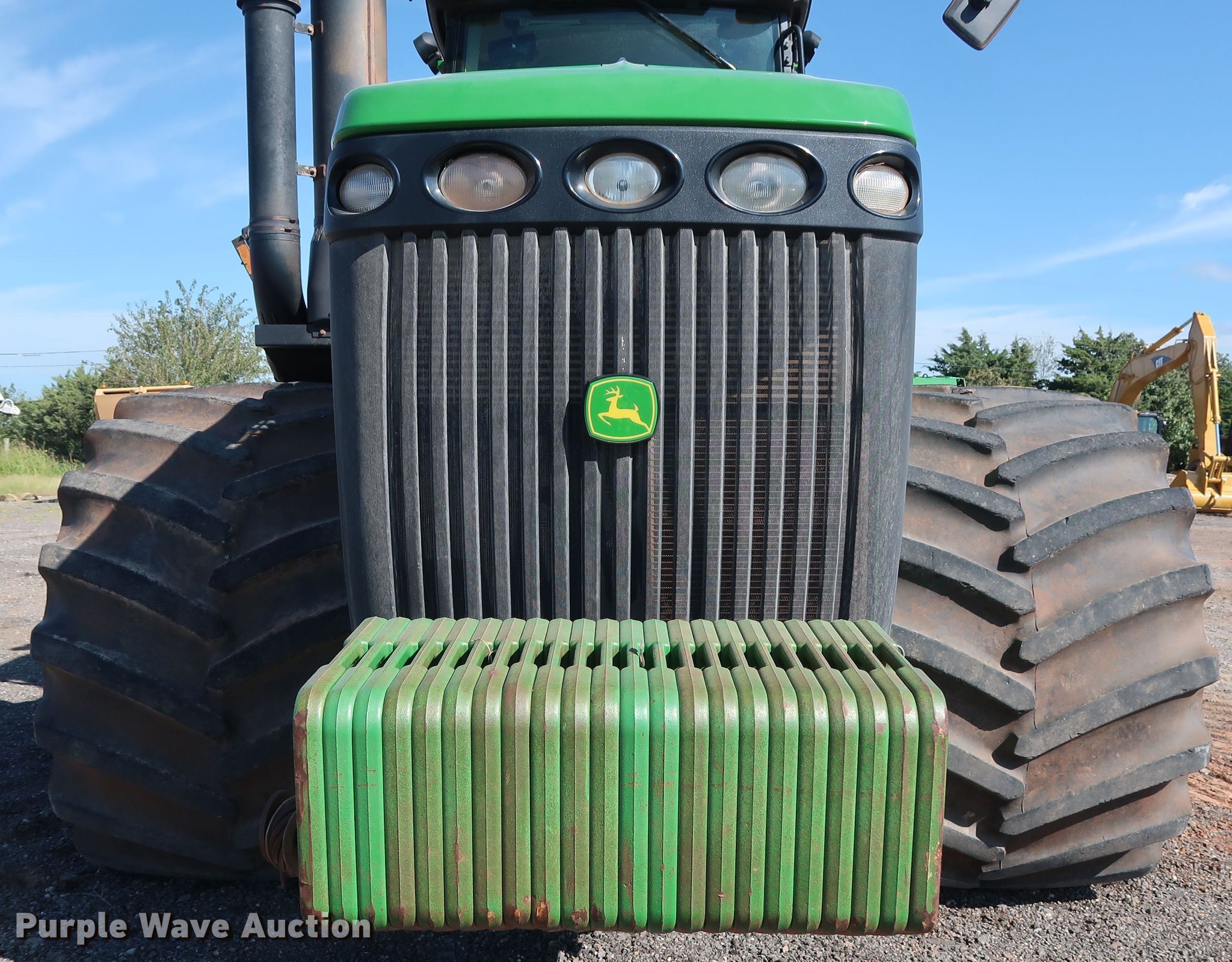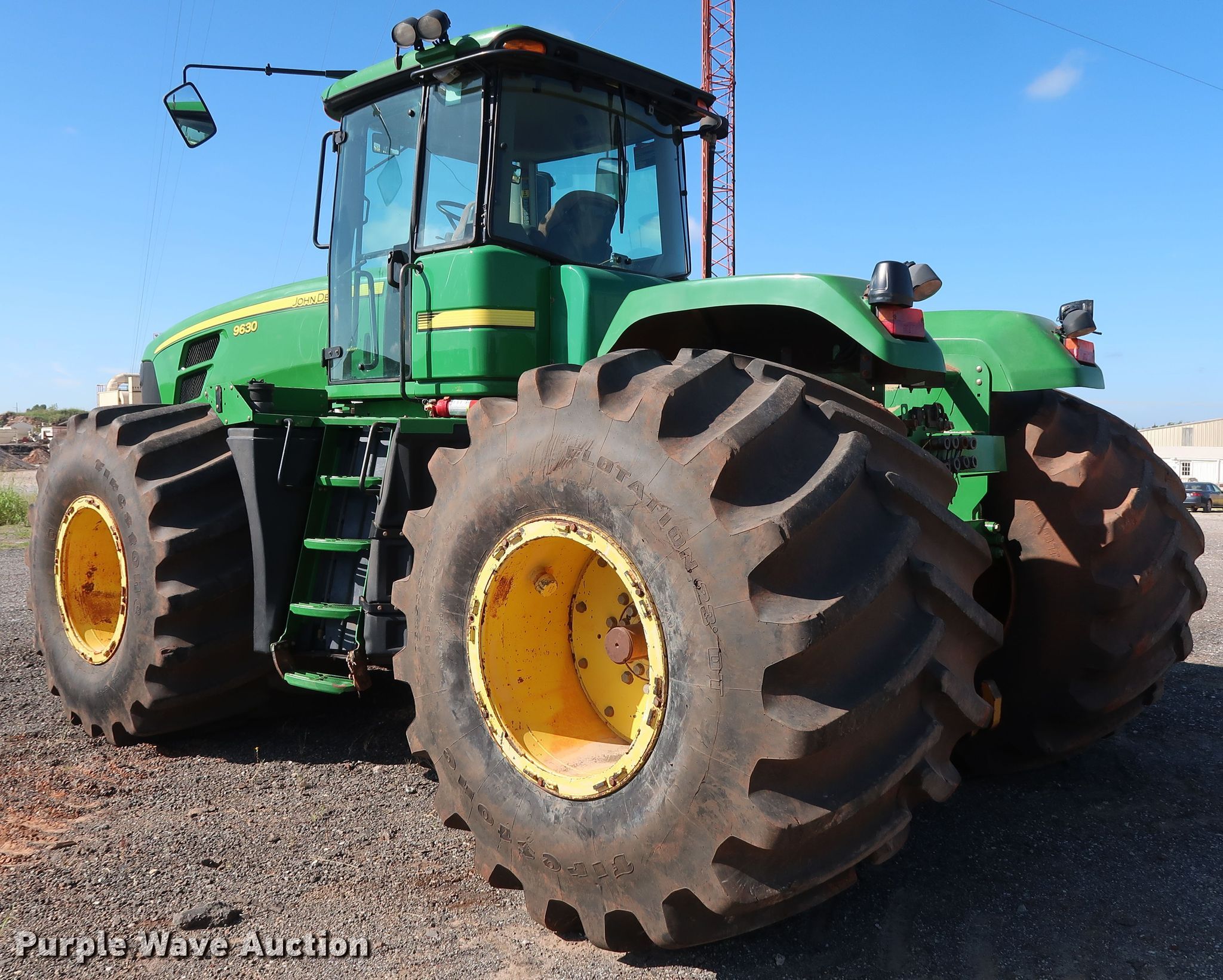Purple Wave is selling a used Articulated 4-Wheel Drive Tractor in Oklahoma. This item is a 2008 John Deere 9630 Scraper Special 4WD tractor with the following: 9,102 hours on meter, John Deere 6135HRW01 13.5L six cylinder diesel engine, 18F-6R gears, AC and heat, Seven pin outlet, ISO electrical outlet, (4) rear hydraulic remote sets, (22) suitcase weights, 76 x 50.00-32 flotation tires, 1250/45-32 flotation tires, 138" wheelbase, Serial RW9630E003827, Unit# 267.302