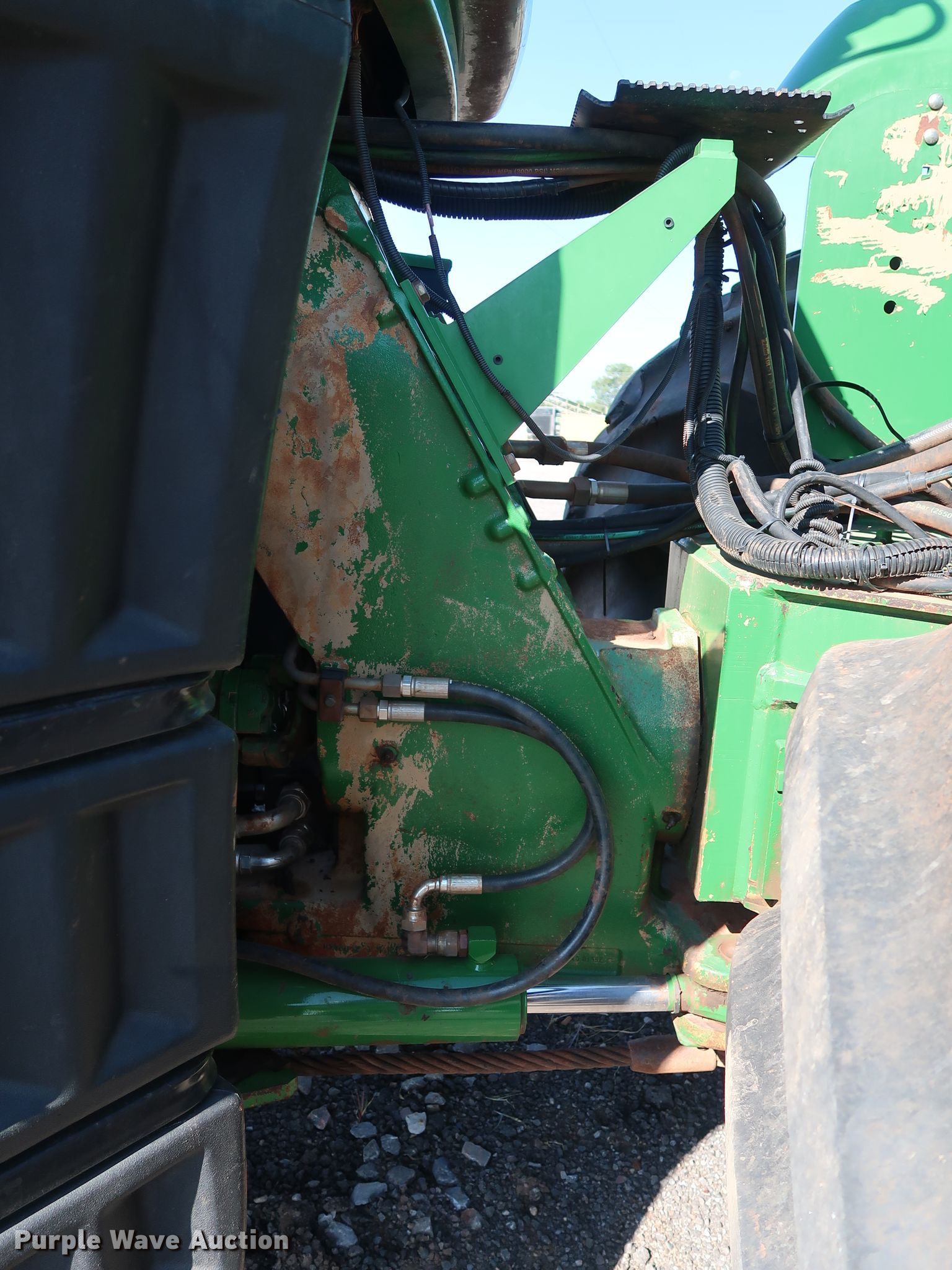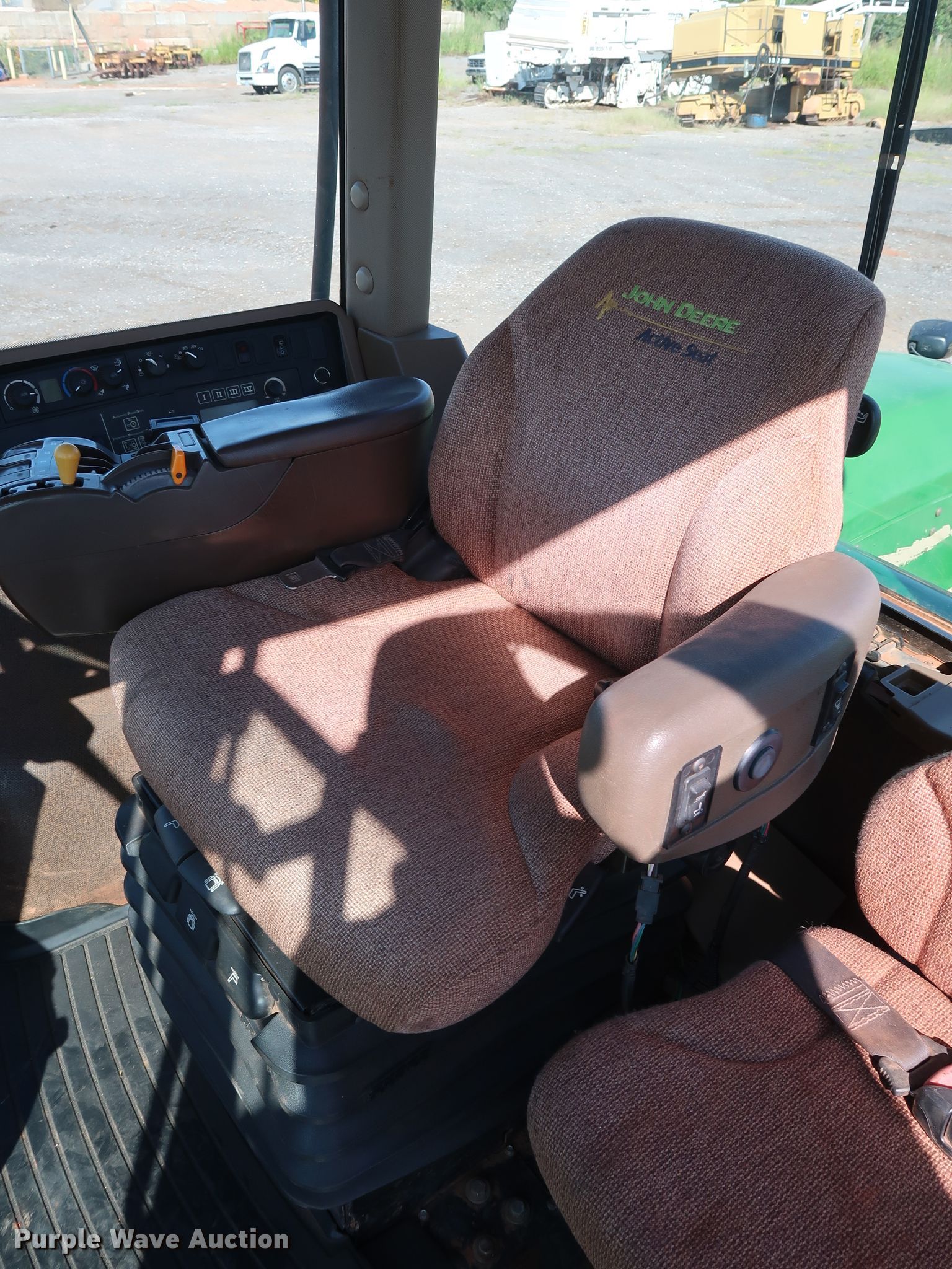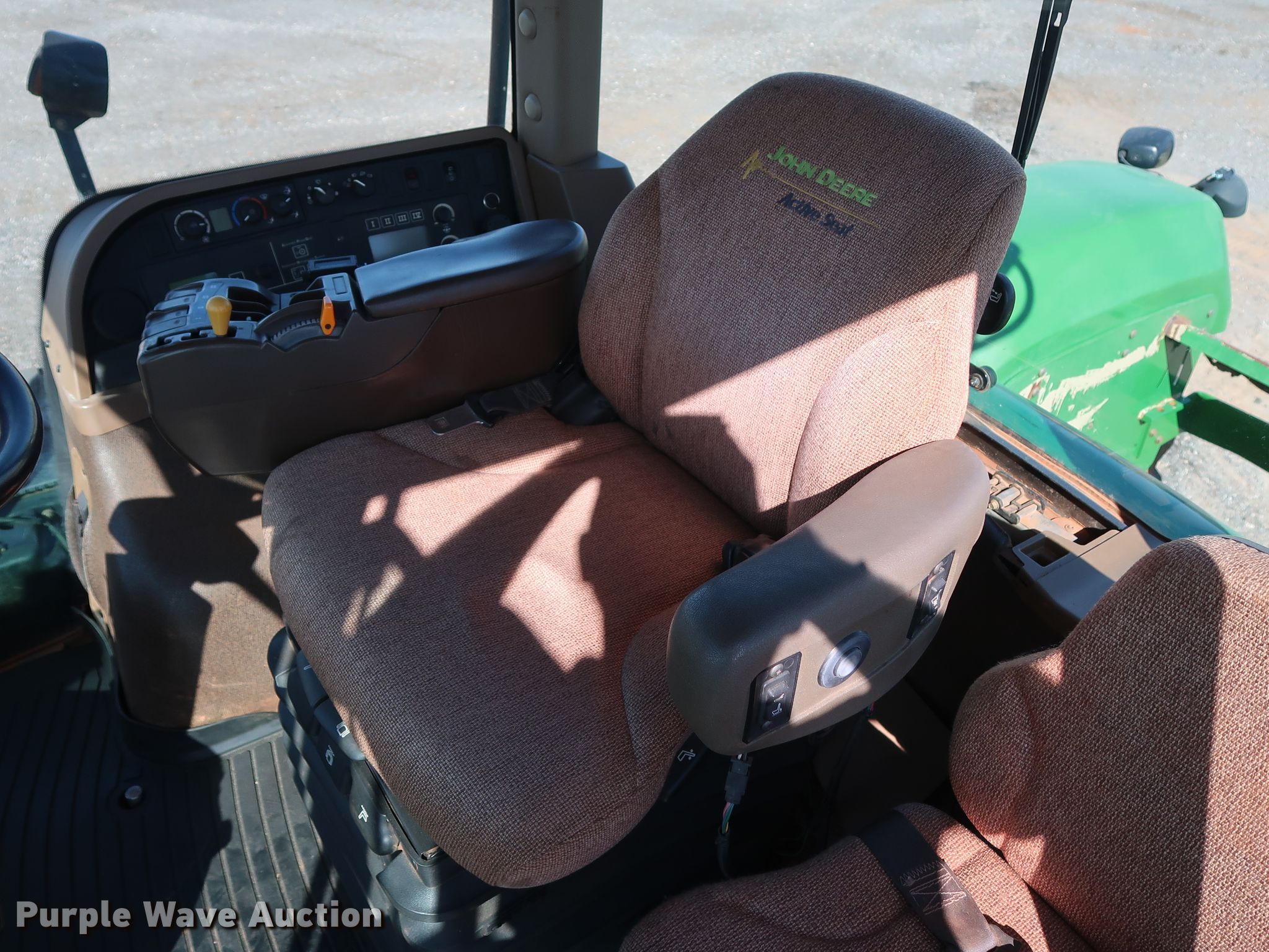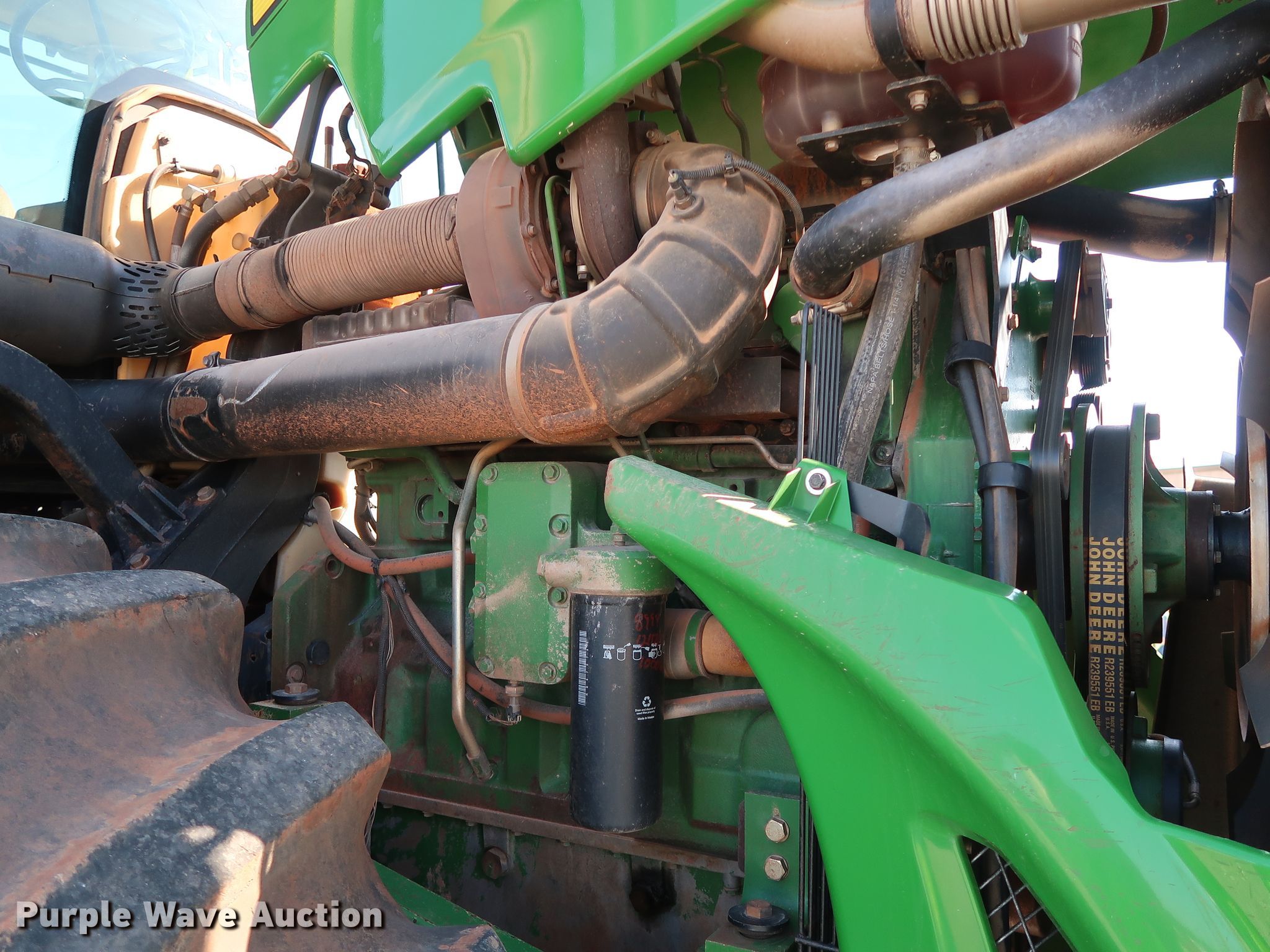 Purple Wave is selling a used Articulated 4-Wheel Drive Tractor in Oklahoma. This item is a 2008 John Deere 9630 Scraper Special 4WD tractor with the following: 9,102 hours on meter, John Deere 6135HRW01 13.5L six cylinder diesel engine, 18F-6R gears, AC and heat, Seven pin outlet, ISO electrical outlet, (4) rear hydraulic remote sets, (22) suitcase weights, 76 x 50.00-32 flotation tires, 1250/45-32 flotation tires, 138" wheelbase, Serial RW9630E003827, Unit# 267.302