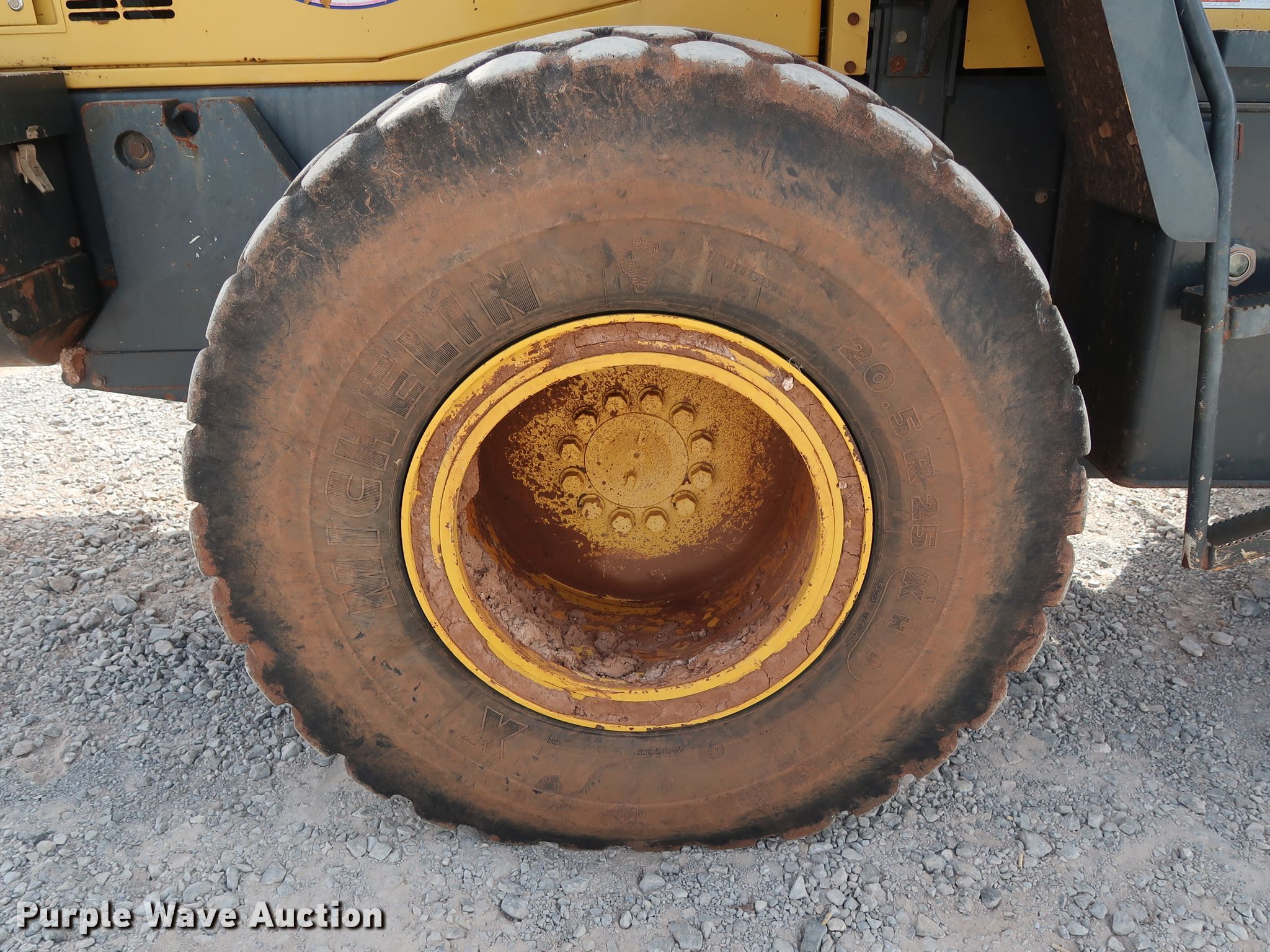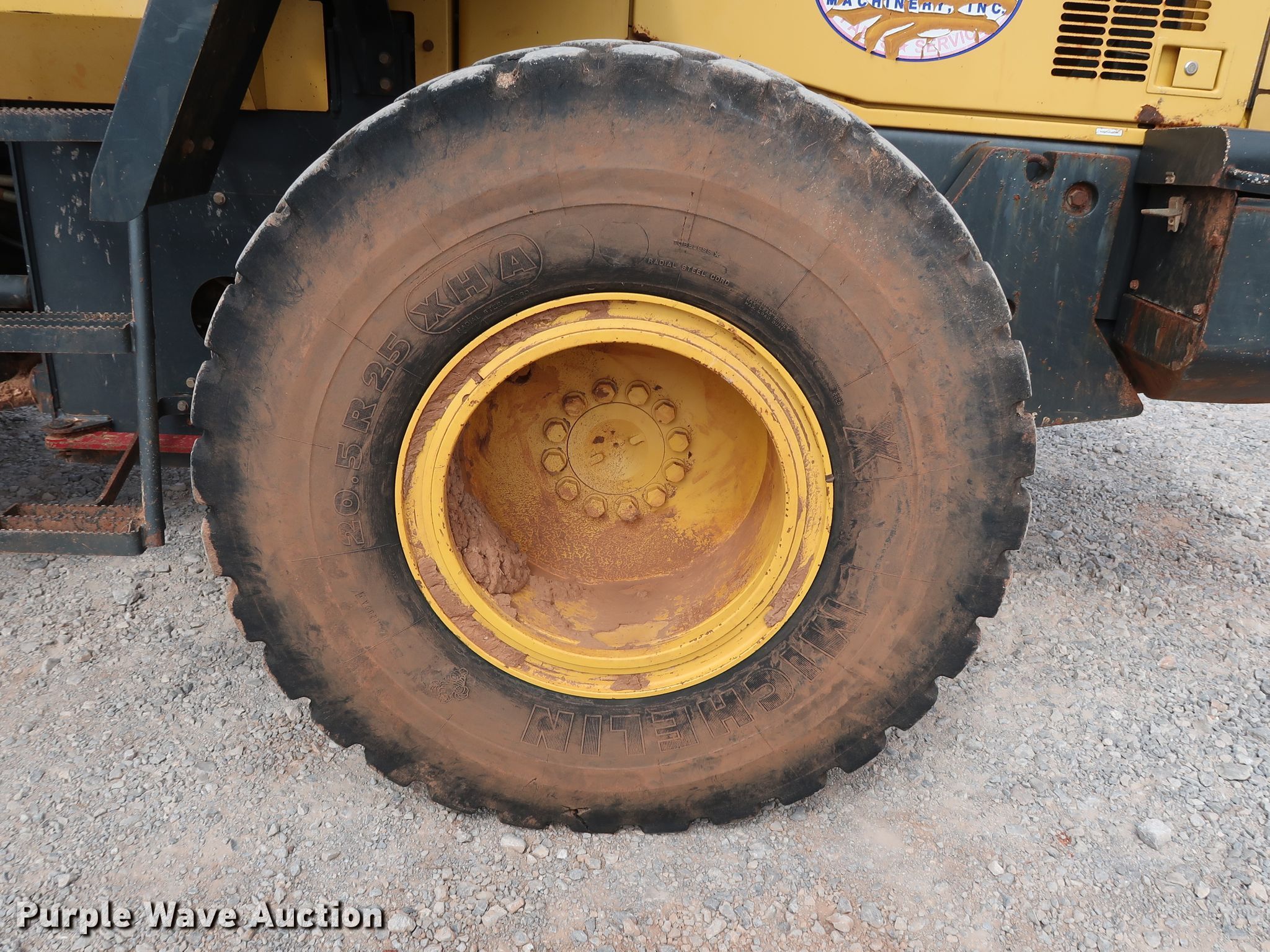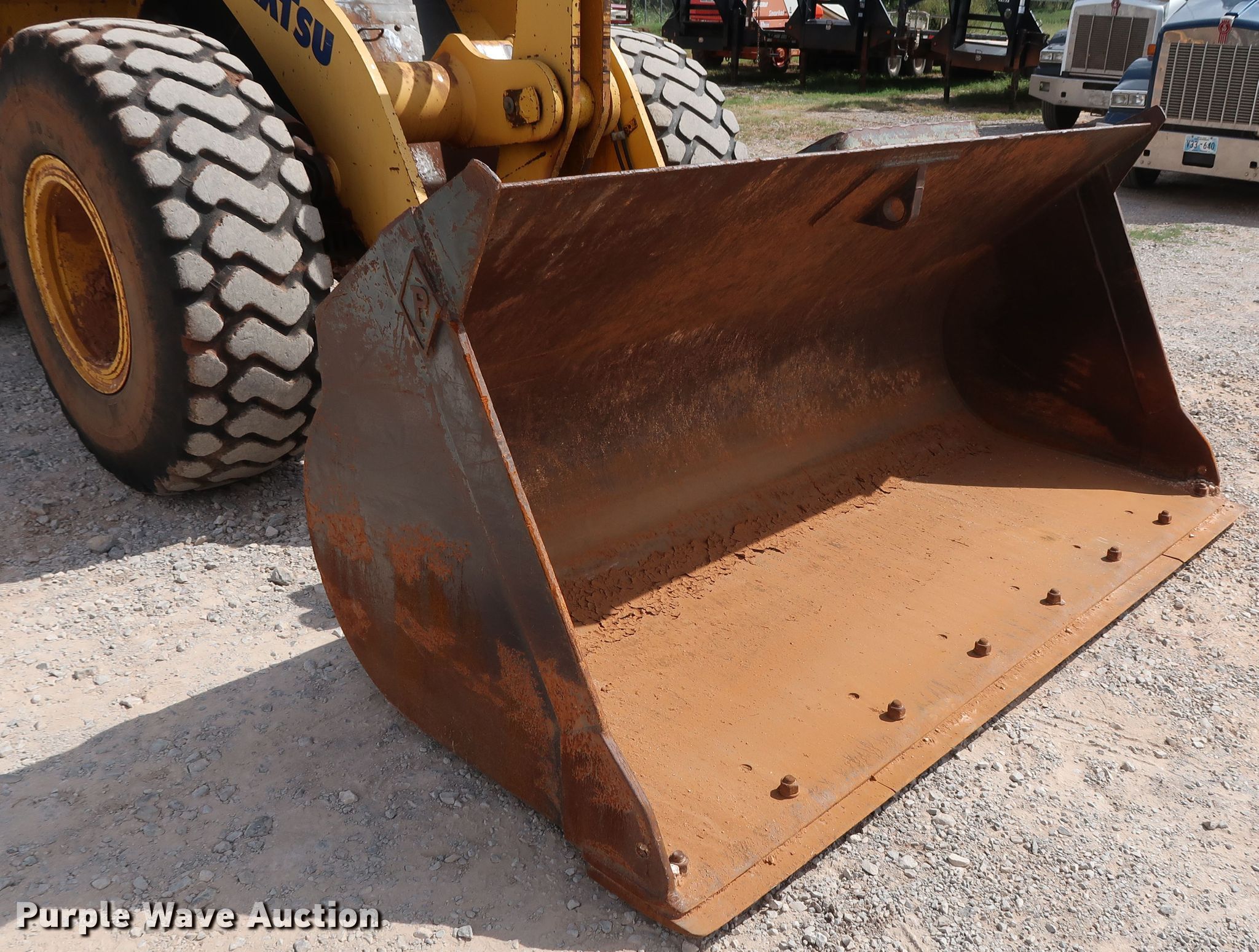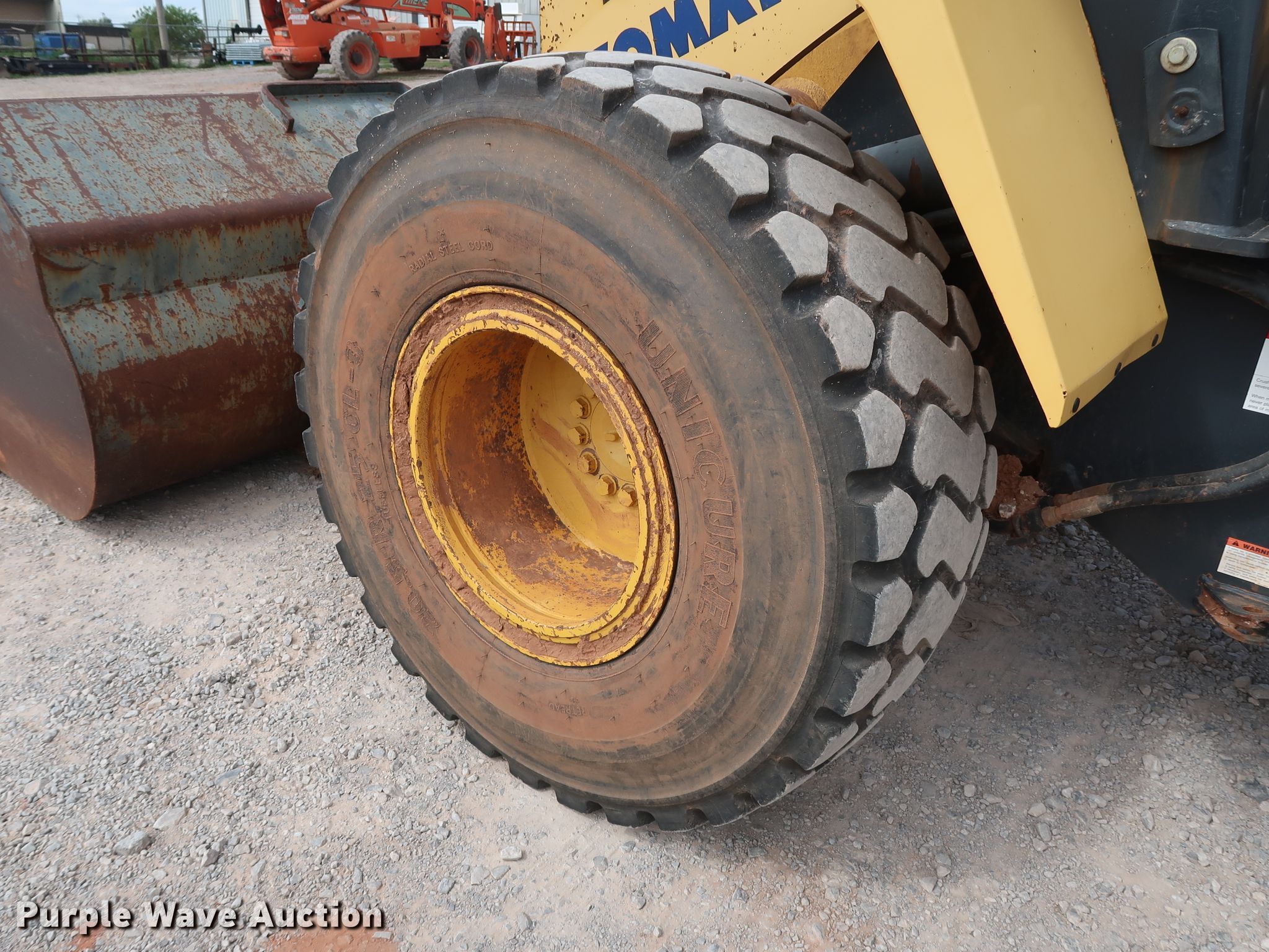 Purple Wave is selling a used Wheel Loader in Oklahoma. This item is a 2006 Komatsu WA250-5 wheel loader with the following: 7,394 hours on meter, Komatsu SAA6D102E-2 5.9L six cylinder diesel engine, 140 HP, Serial 26386510, Autoshift transmission, 4F-4R gears, EROPS, AC and heat, Joystick bucket controls, Pemberton 108"W bucket, Bolt-on cutting edge, Hydraulic quick coupler, Auxiliary hydraulics, Counter weights, 20.5R25 tires, Serial KMTWA020P01072148, Unit# LE22