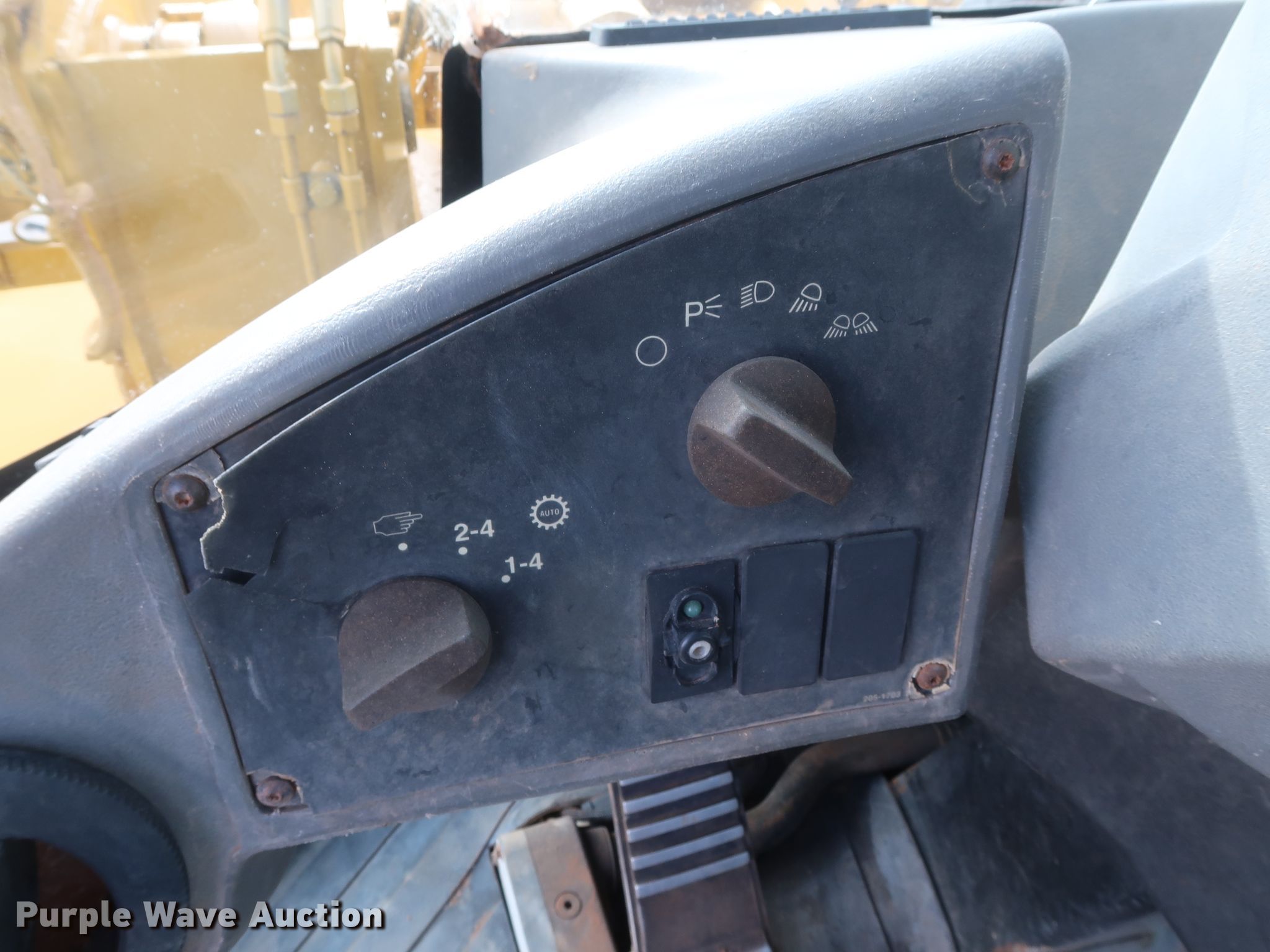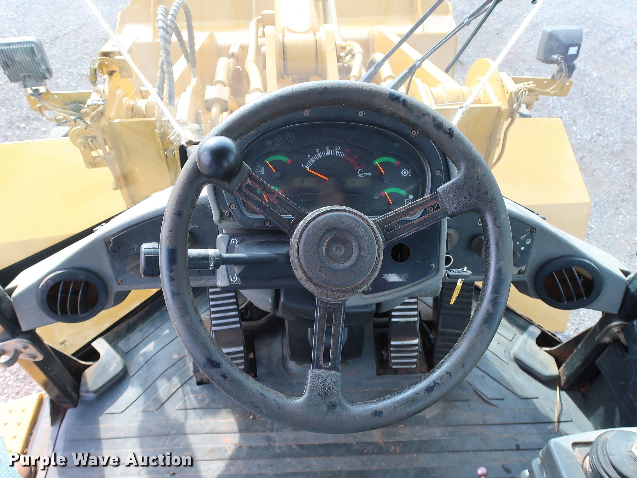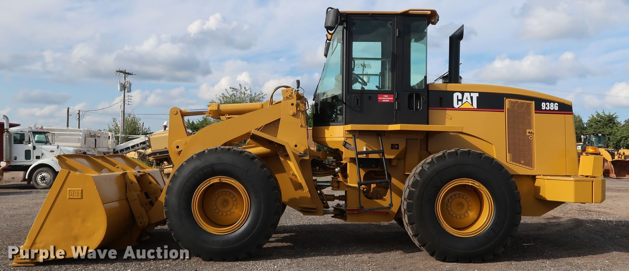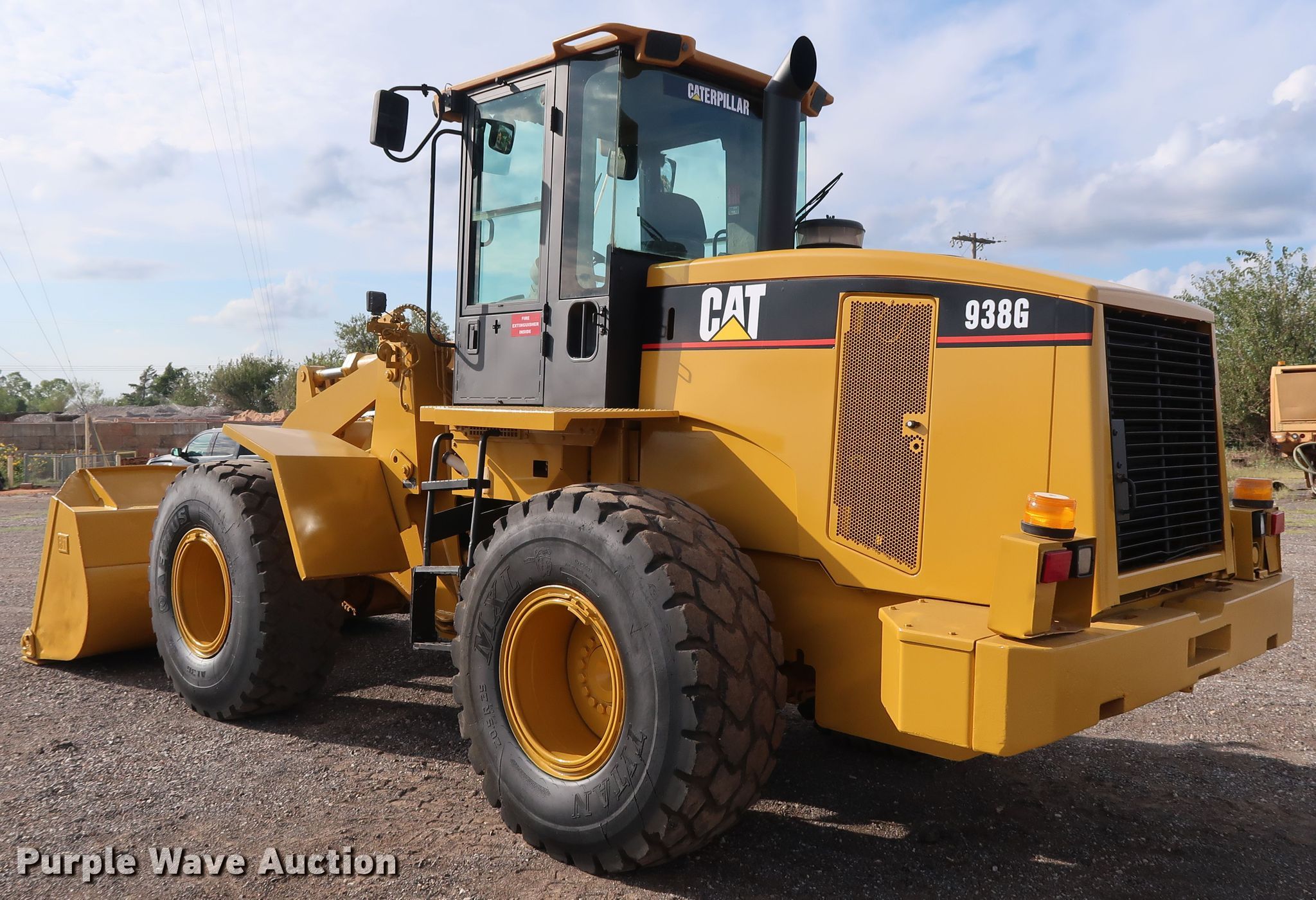 Purple Wave is selling a used Wheel Loader in Oklahoma. This item is a 2005 Caterpillar 938G wheel loader with the following: 15,112 hours on meter, Caterpillar 3126 7.2L six cylinder diesel engine, 260 HP, Serial 5GG07521, Powershift transmission, 4F-4R gears, Enclosed cab, AC and heat, Joystick bucket controls, Ride controls, Caterpillar 108"W bucket, Bolt-on cutting edge, Caterpillar pallet forks, 60"L x 6"W, Serial HA65455, 20.5R25 tires, Serial CAT0938GCCRD01424, Unit# 521.263