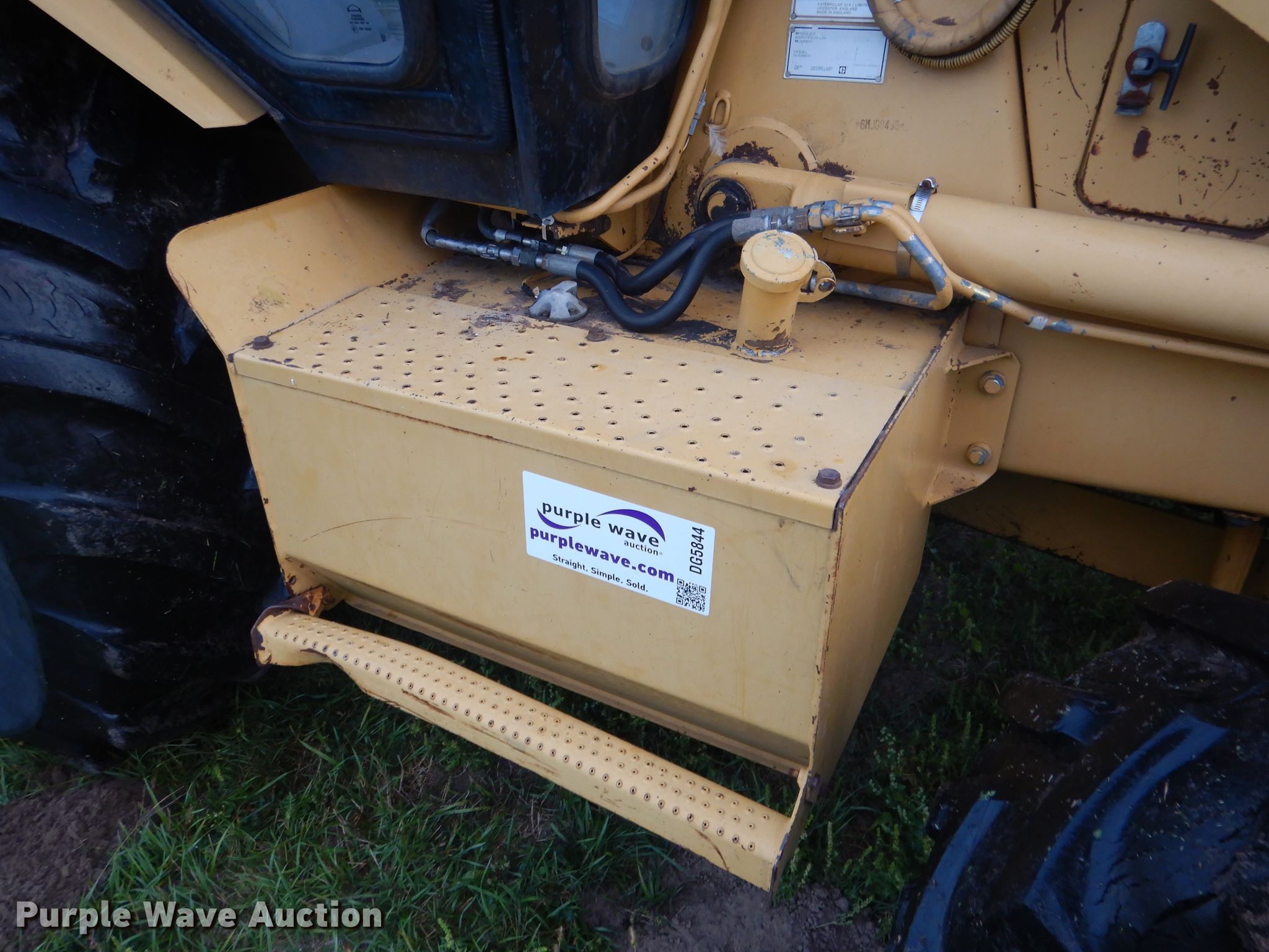 Purple Wave is selling a used Tractor Loader Backhoe in Nebraska. This item is a 1993 Caterpillar 436B backhoe with the following: 11,439 hours on meter, Caterpillar four cylinder diesel engine, Serial 5HK08293, Shuttle shift transmission, 4F-4R gears, Four wheel drive, Differential lock, Enclosed cab, Heat, Wobble stick backhoe controls, Auxiliary electrical outlet, Auxiliary hydraulics, Caterpillar 88"W loader bucket, 1.5 cu. yd. capacity, (8) teeth, Caterpillar 24"W backhoe bucket, (5) teeth, Michelin 335/80R18 front tires, 19.5LR24 rear tires, Glass broken, Serial 6MJ00497
