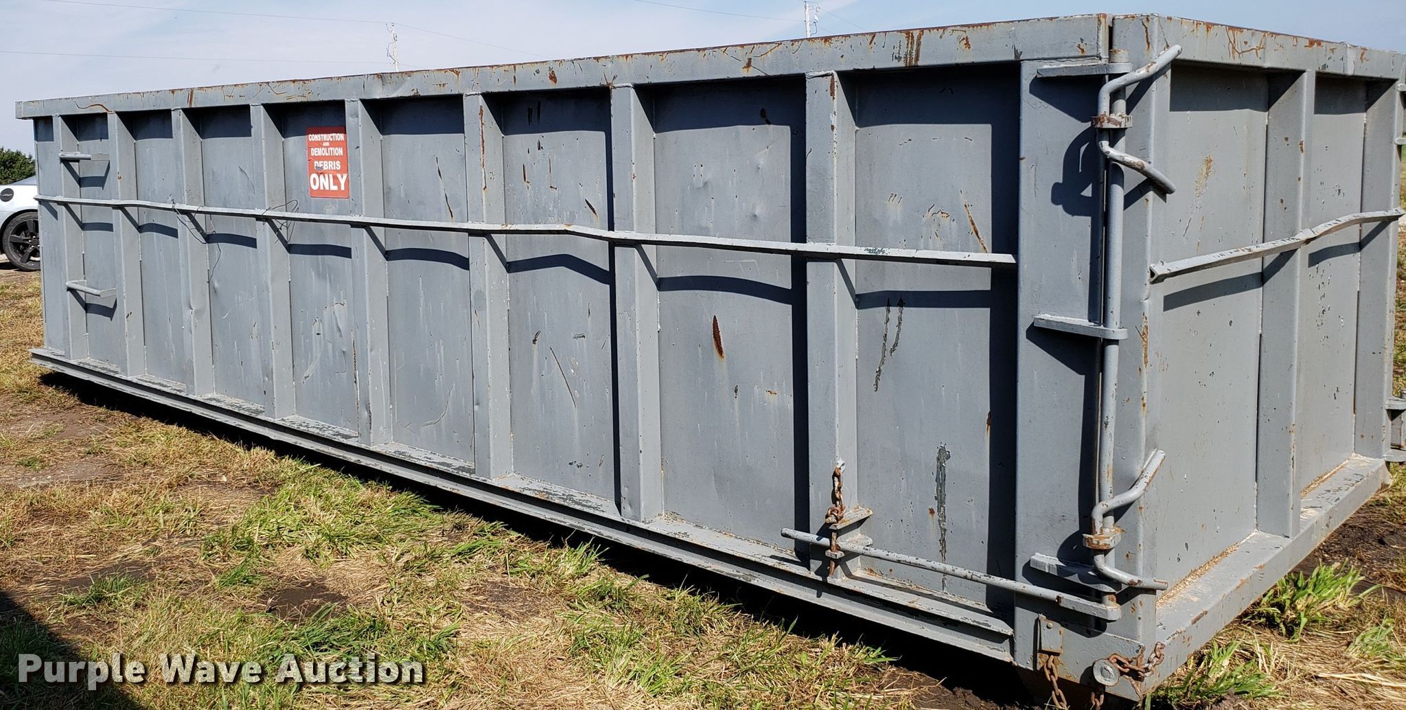 Purple Wave is selling a used Refuse or Compaction Equip. in Missouri. This item is a KL Metal Fabricating Inc. roll-off container with the following: 22.5'L x 96"W x 60"H, 30 cu.yd. capacity
