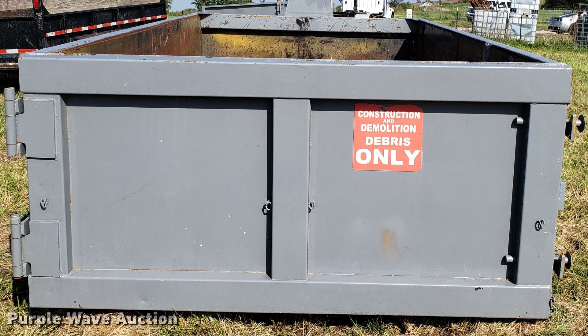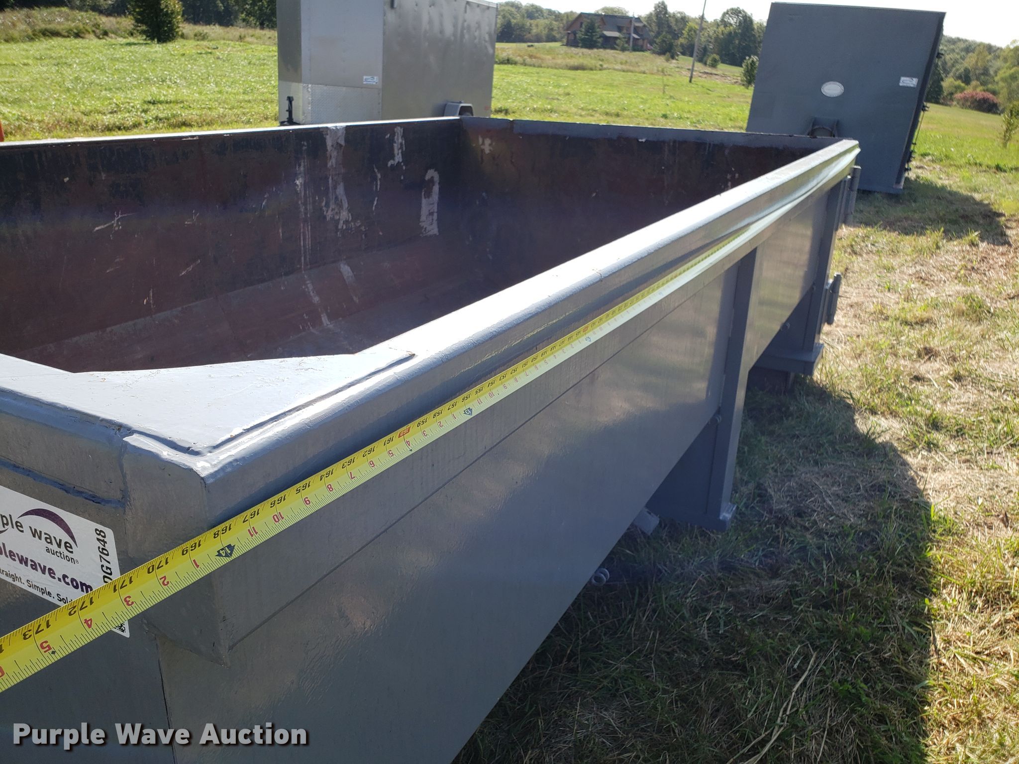 Purple Wave is selling a used Refuse or Compaction Equip. in Missouri. This item is a Roll-off container with the following: 14'L x 94"W x 42"H, 36" hook lift, 14 cu.yd. capacity, Dual attachment, Cable style