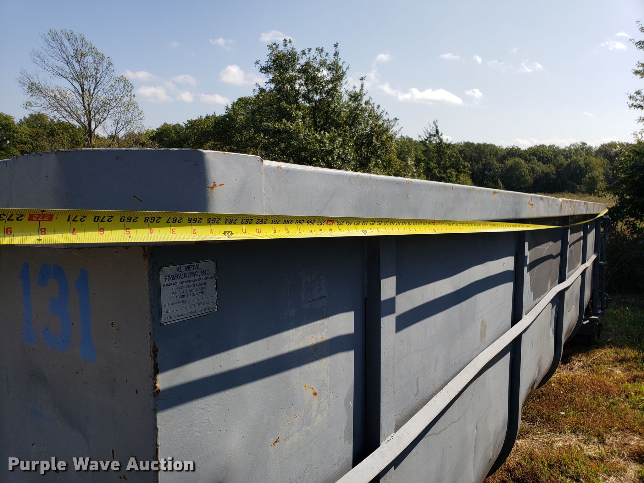 Purple Wave is selling a used Refuse or Compaction Equip. in Missouri. This item is a KL Metal Fabricating Inc roll-off container with the following: 22.5'L x 90"W x 60"H, 30 cu.yd. capacity