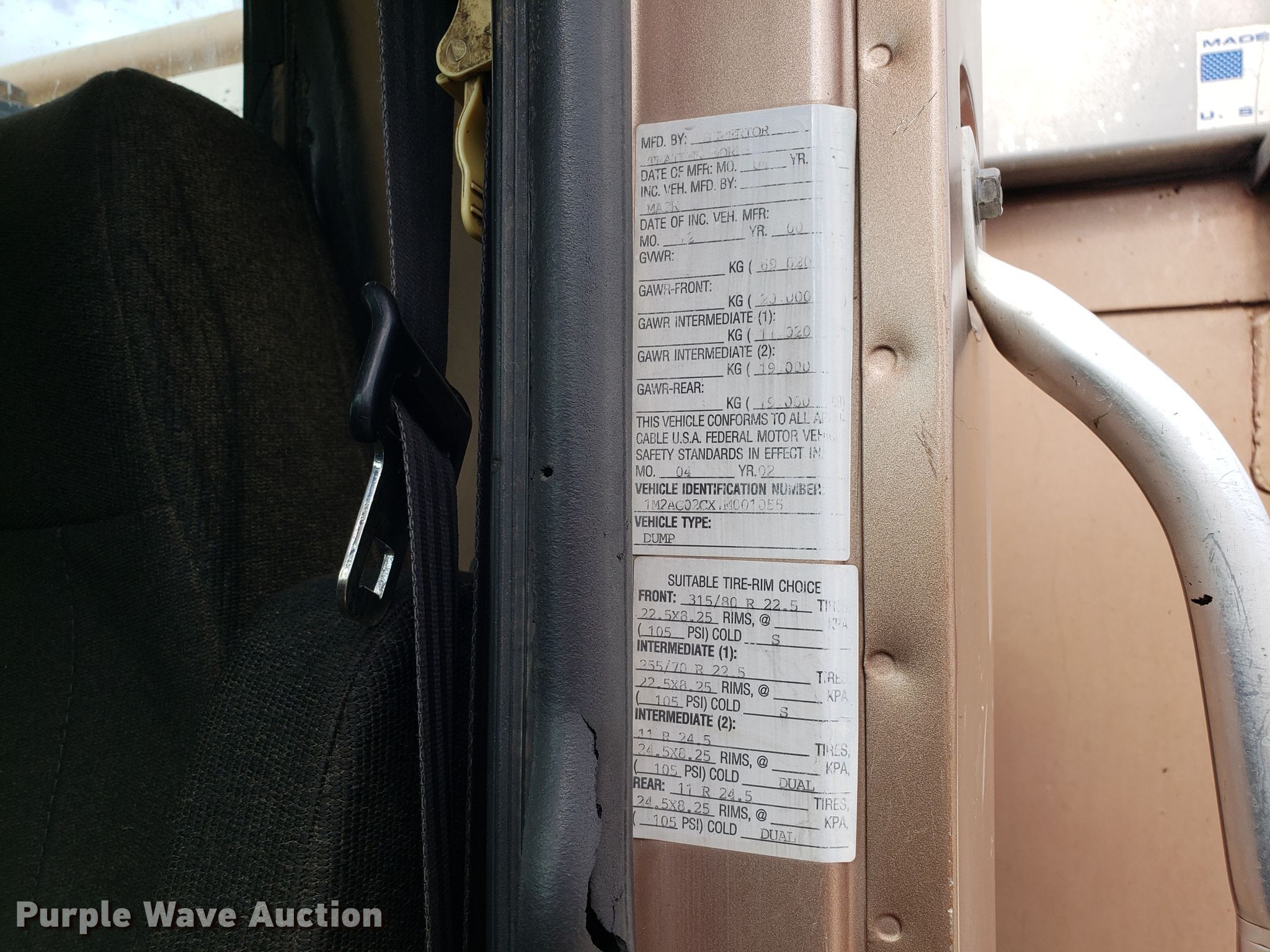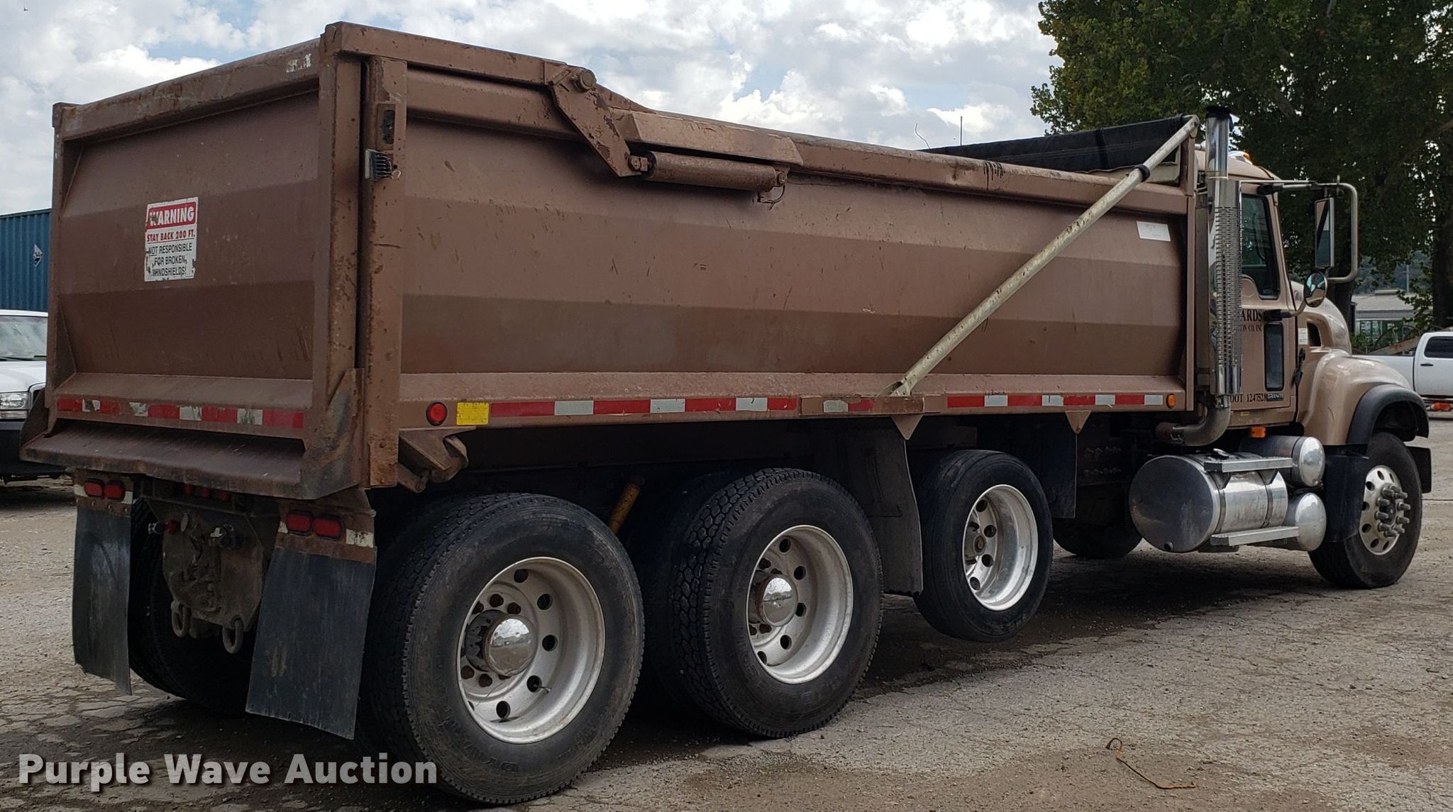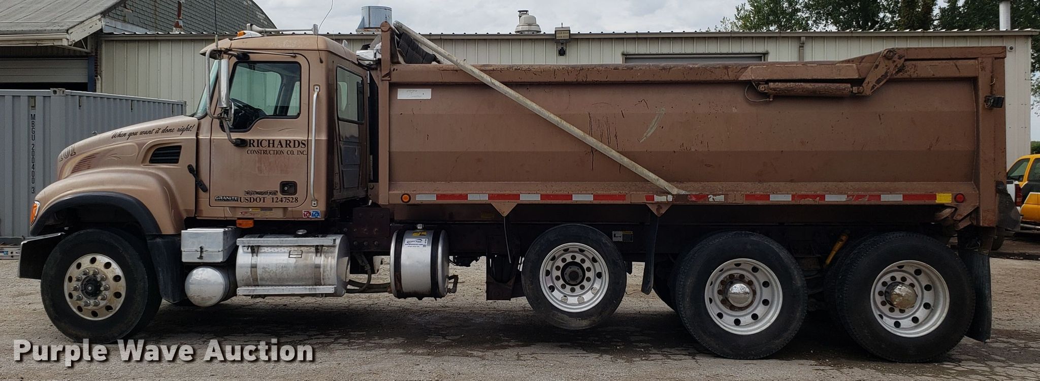 Purple Wave is selling a used Construction Dump Truck in Missouri. This item is a 2001 Mack CV513 dump truck with the following: 341,137 miles on odometer, 18,008 hours on meter, Mack 12.0L L6 diesel engine, Maxitorque 10 speed manual transmission, Triple axle, Pusher axle, AC and heat, Cruise control, Power windows, Heated mirrors, PTO, 17'L x 8'W steel dump bed, 52" side height, Single ram hoist, Air operated end gate, Roll tarp, Walking beam suspension, Air brakes, 315/80R22.5 front tires, 255/70R22.5 lift axle tires, 11R22.5 rear tires, GVWR 69,620 lbs
