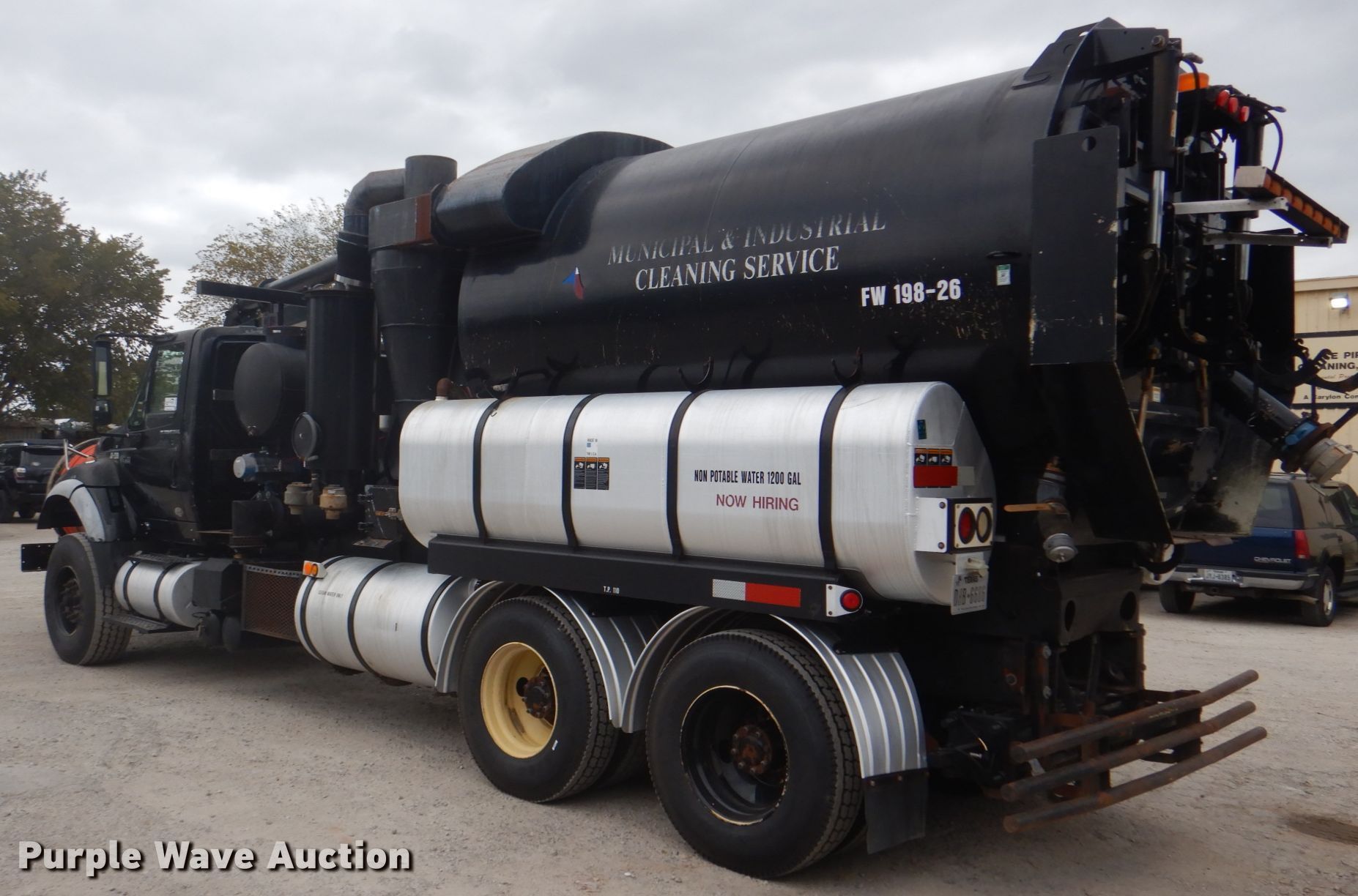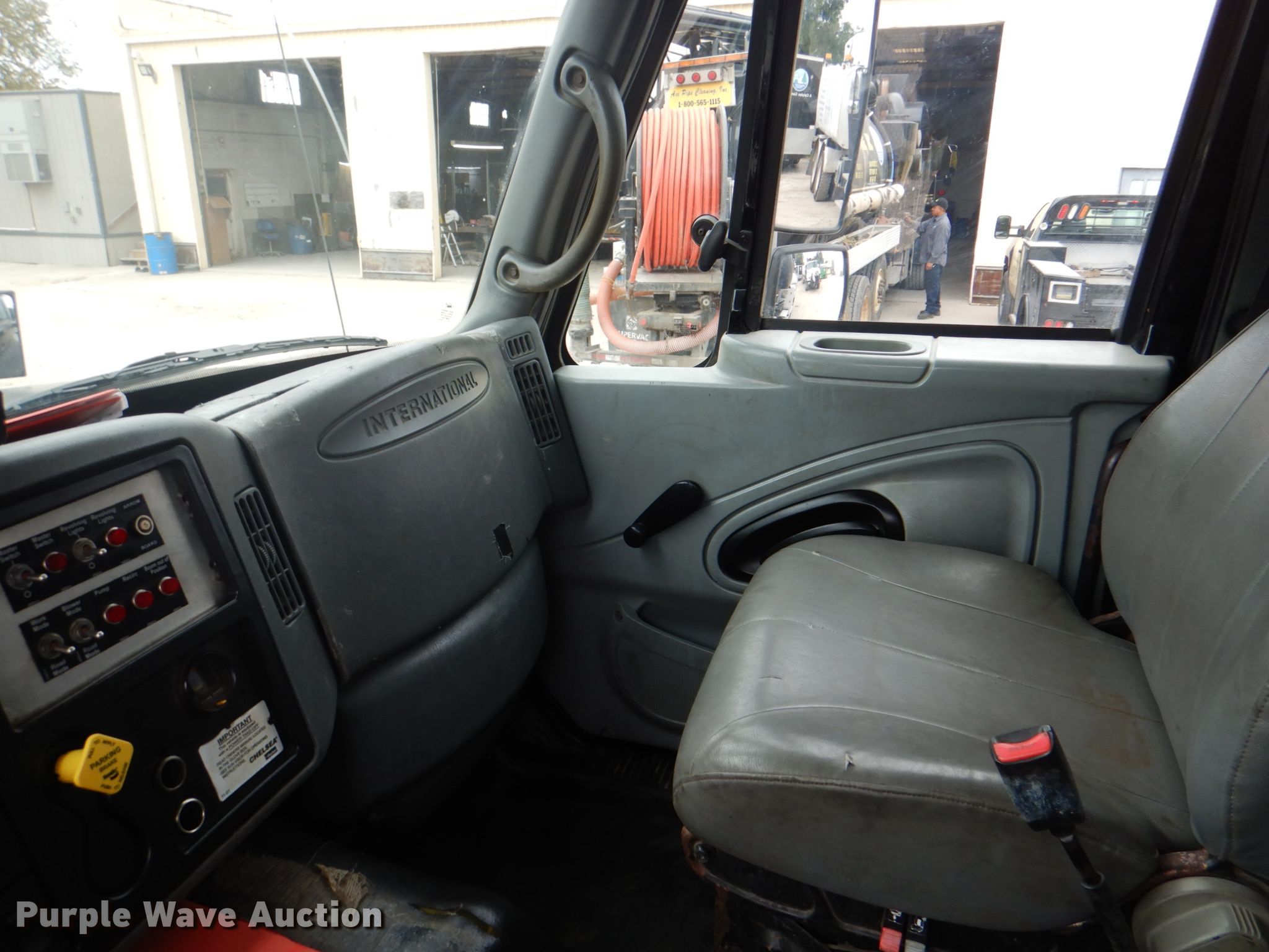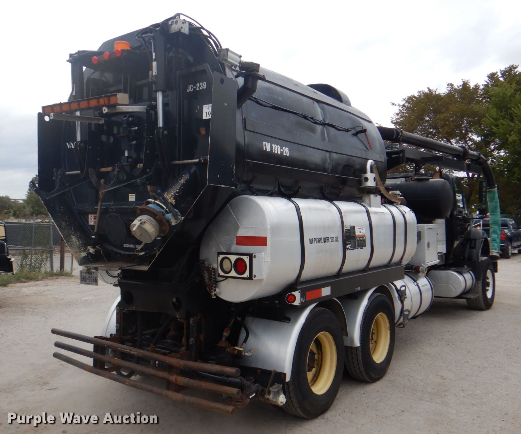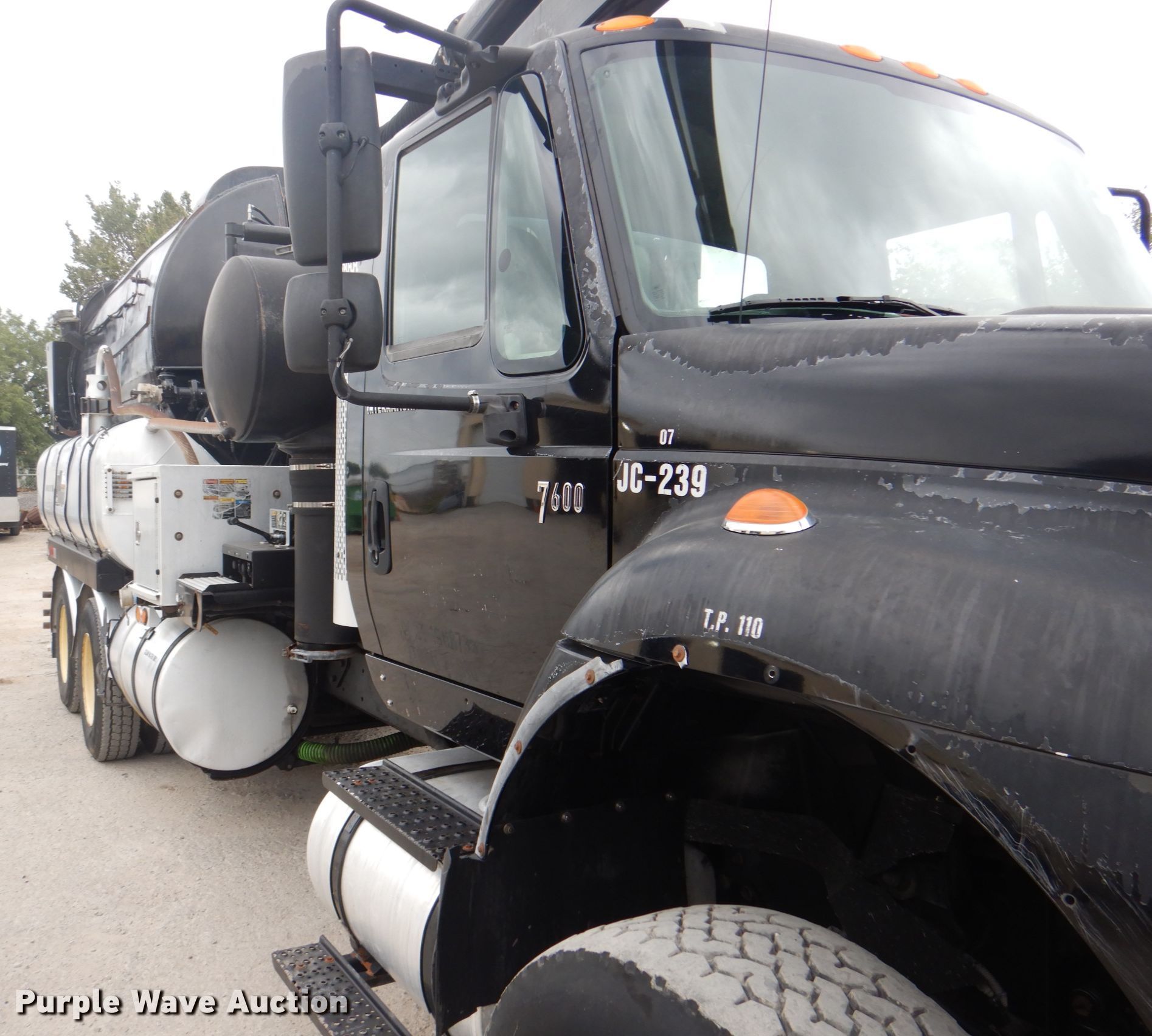 Purple Wave is selling a used Vacuum Truck in Texas. This item is a 2006 International 7600 hydrovac truck with the following: 106,533 miles on odometer, Caterpillar C13 12.5L L6 diesel engine, Automatic transmission, Tandem axle, AC and heat, PTO, Vactor 2115RAS-18 vacuum bed, 1,200 gallon capacity, 6" rear outlet, Front hydraulic hose reel, Ram Jet water pump, 80 gallon per minute at 2,000 psi, Roots positive displacement blower, 15 cu.yd. debris capacity, 8' telescopic boom, Serial 07-04V-10455, Spring suspension, Air brakes, 252" wheelbase, 425/65R22.5 front tires, 11R22.5 rear tires, GVWR 66,000 lbs, Decals will be removed