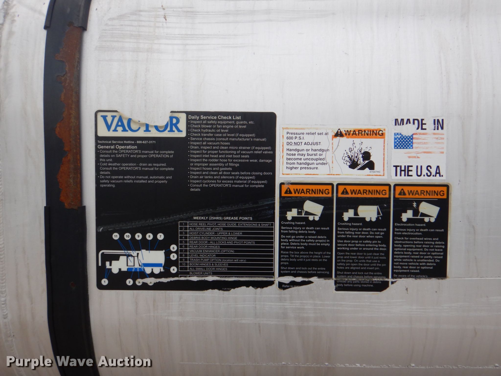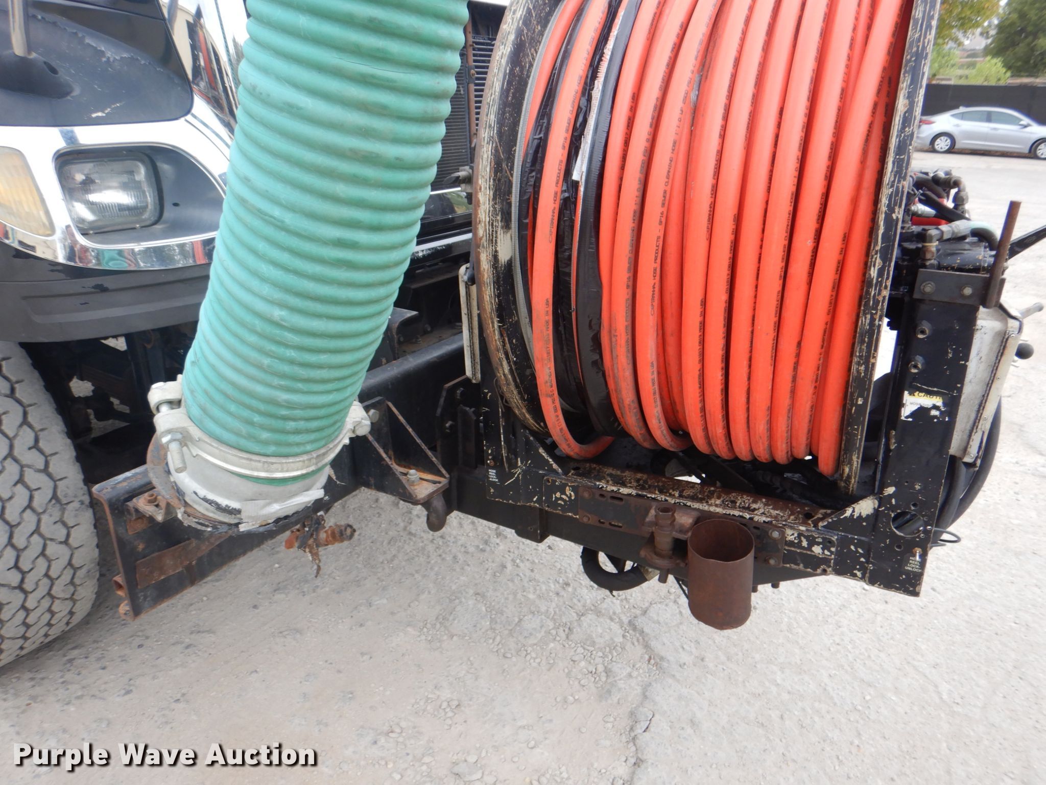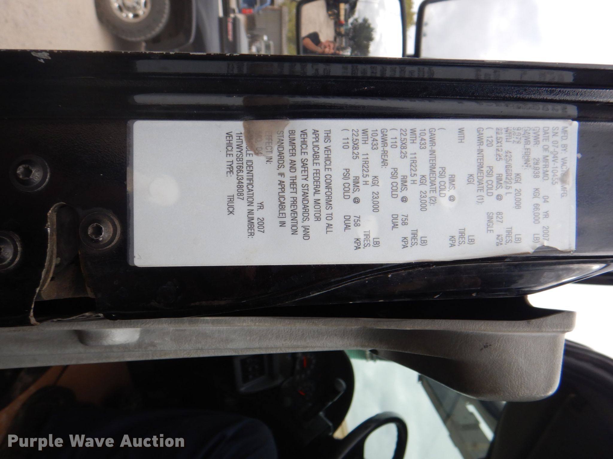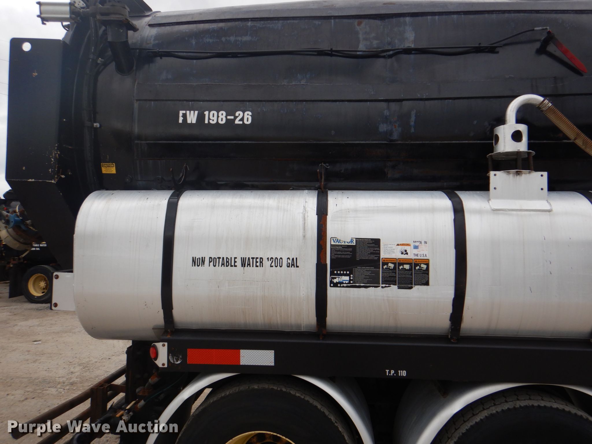 Purple Wave is selling a used Vacuum Truck in Texas. This item is a 2006 International 7600 hydrovac truck with the following: 106,533 miles on odometer, Caterpillar C13 12.5L L6 diesel engine, Automatic transmission, Tandem axle, AC and heat, PTO, Vactor 2115RAS-18 vacuum bed, 1,200 gallon capacity, 6" rear outlet, Front hydraulic hose reel, Ram Jet water pump, 80 gallon per minute at 2,000 psi, Roots positive displacement blower, 15 cu.yd. debris capacity, 8' telescopic boom, Serial 07-04V-10455, Spring suspension, Air brakes, 252" wheelbase, 425/65R22.5 front tires, 11R22.5 rear tires, GVWR 66,000 lbs, Decals will be removed