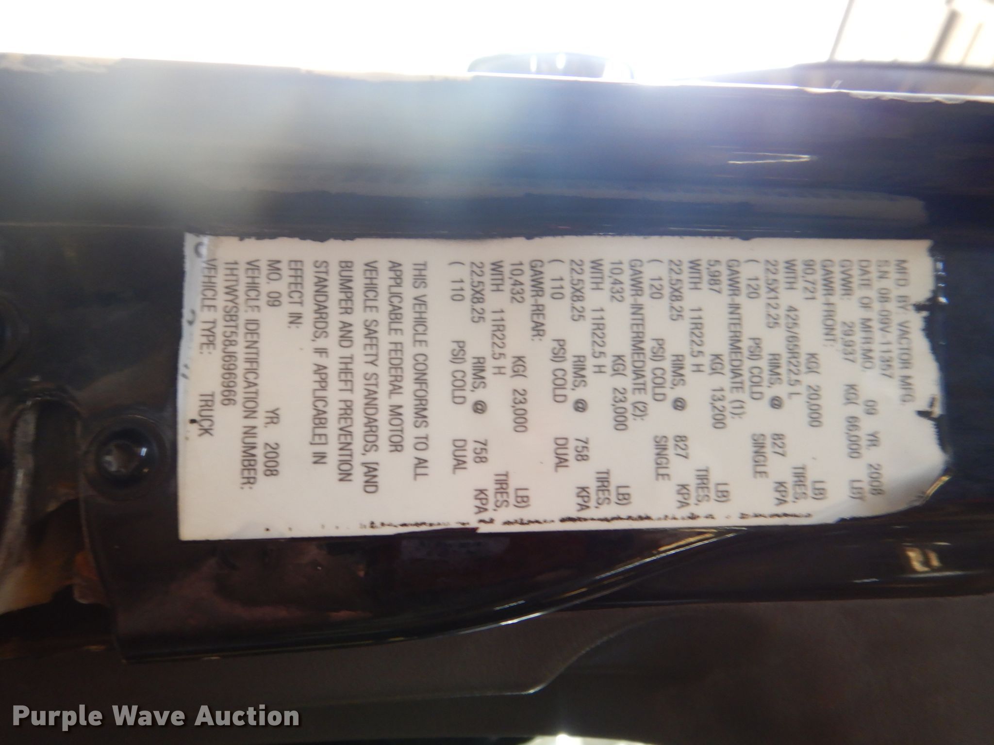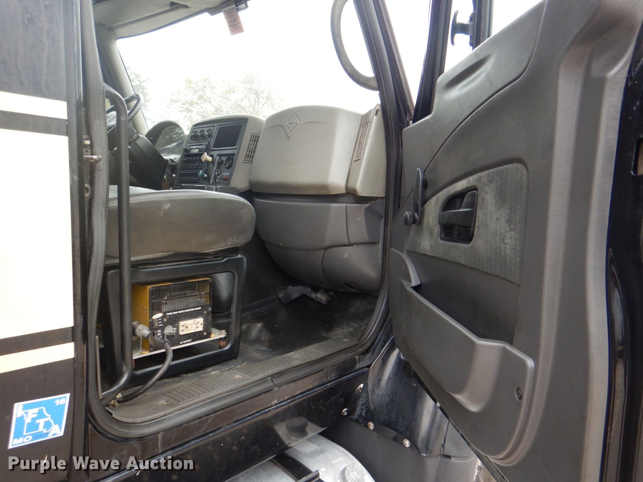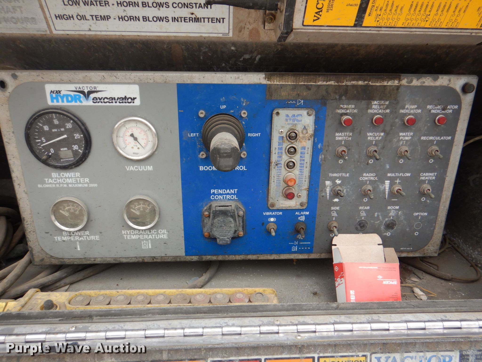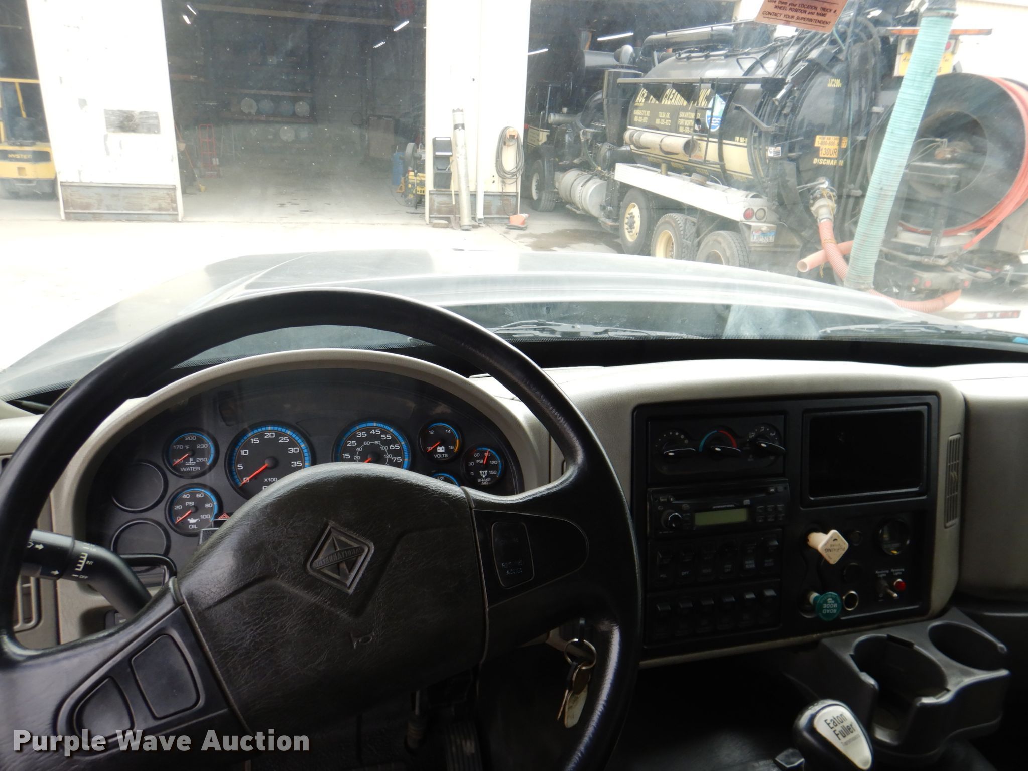 Purple Wave is selling a used Vacuum Truck in Texas. This item is a 2008 International 7600 hydro excavation truck with the following: 120,427 miles on odometer, Caterpillar C13 12.5L L6 diesel engine, Eaton Fuller 10 speed manual transmission, Triple axle, AC and heat, PTO, 2009 Vactor vacuum bed, 8" rear outlet, Water Pro Tech pump water heater, 10 gallon per minute at 3,000 psi, 400,000 BTU, 8' telescopic boom, Remote control, Positive displacement blower, 5,000 CFM, Omsi transfer case, Serial 08-09V11357, Spring suspension, Air brakes, 298" wheelbase, 425/65R22.5 front tires, 11R22.5 rear tires, GVWR 66,000 lbs, Decals will be removed