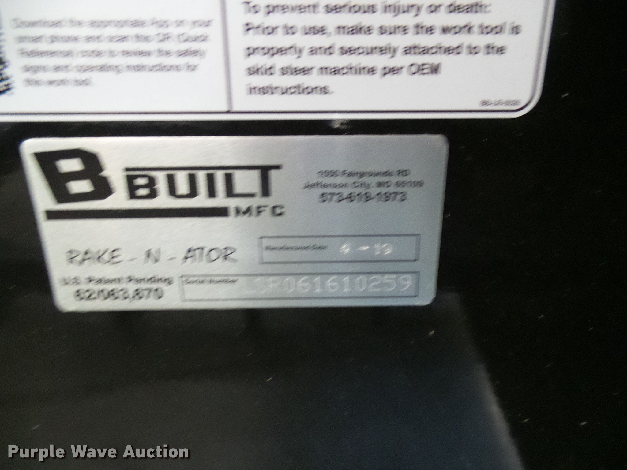 Purple Wave is selling a used Skid Steer Attach. in Missouri. This item is a 2019 B-Built Manufacturing Rake-N-Ator landscape rake with the following: 96"W, Weld-on teeth, Unused, Serial LSR061610259