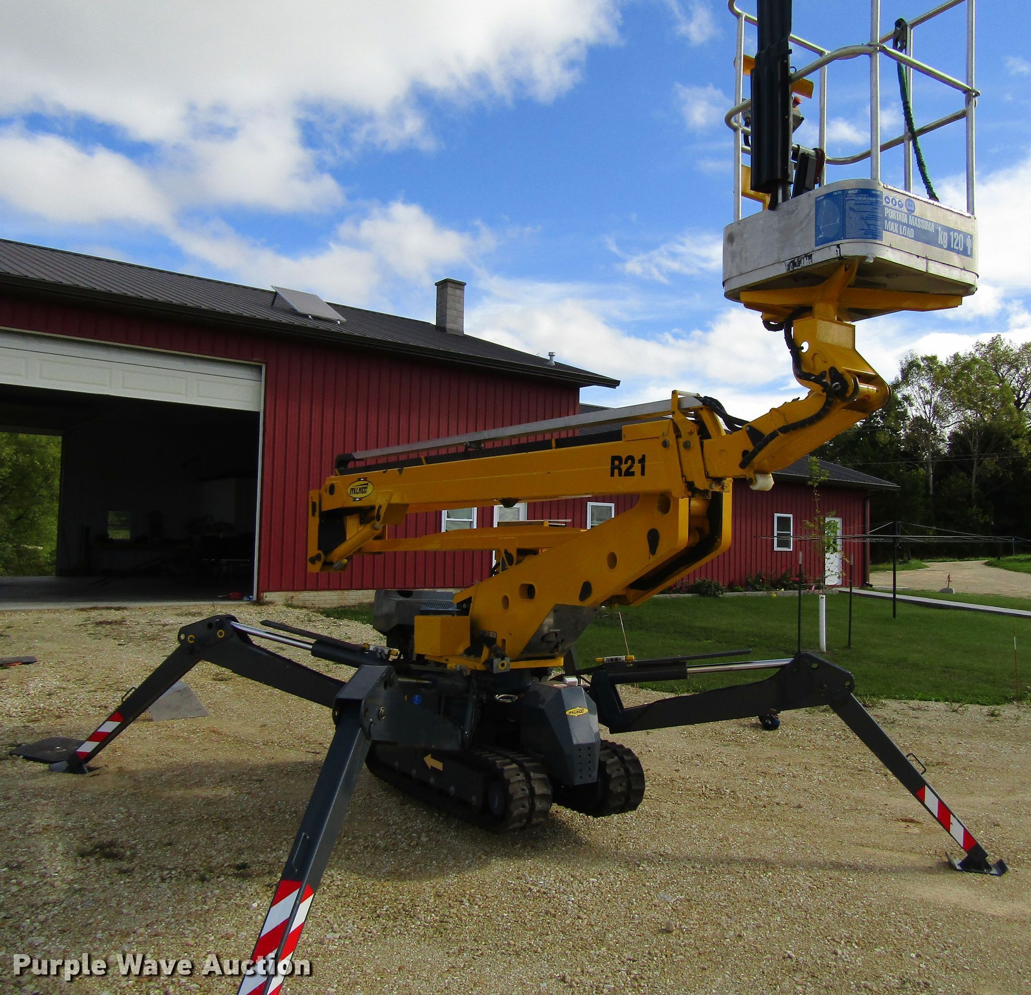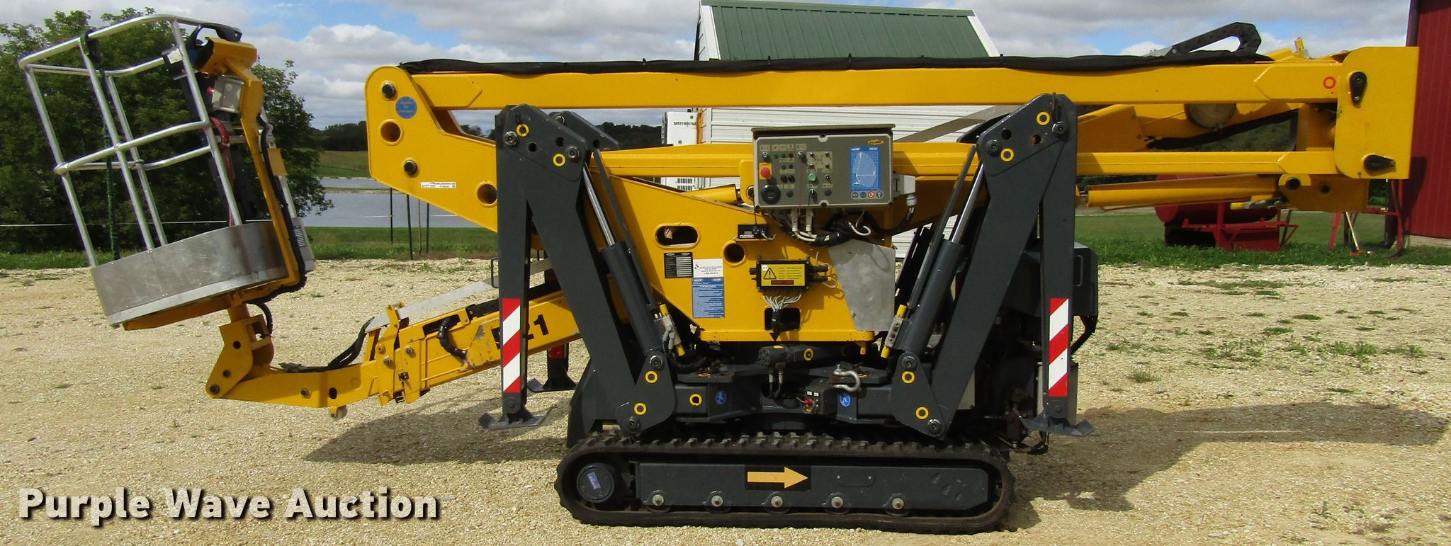 2008 Italmec R21 boom lift. 637 hours on meter, One cylinder diesel engine, 265 lbs max lift capacity, 75' max reach length, 70' max lift height, Hydraulic leveling, 30"L x 30"W platform Platform, ground, and remote controls, Powered platform extensions, Hydraulic platform rotation, Hydraulic outriggers, 10"W rubber tracks, Fits through 36" opening, Possible idle issues, Serial I-13111. 2557 240th Ave. Delhi, IA 52223