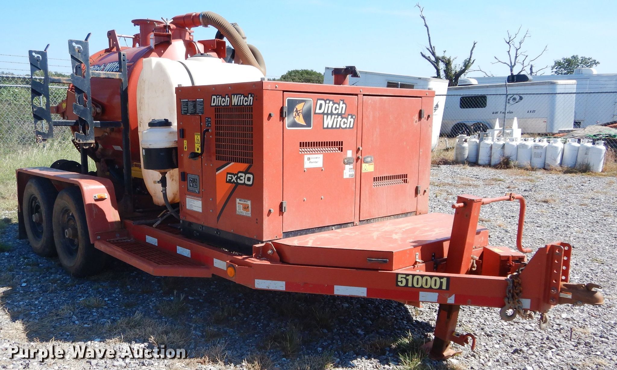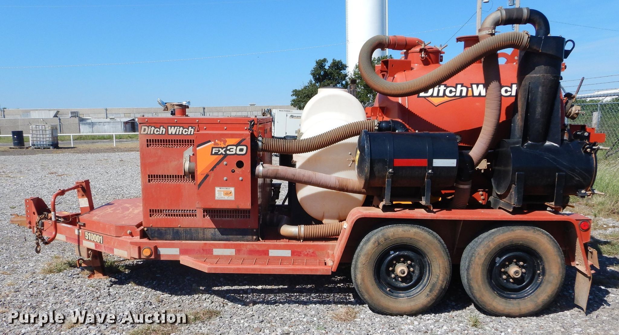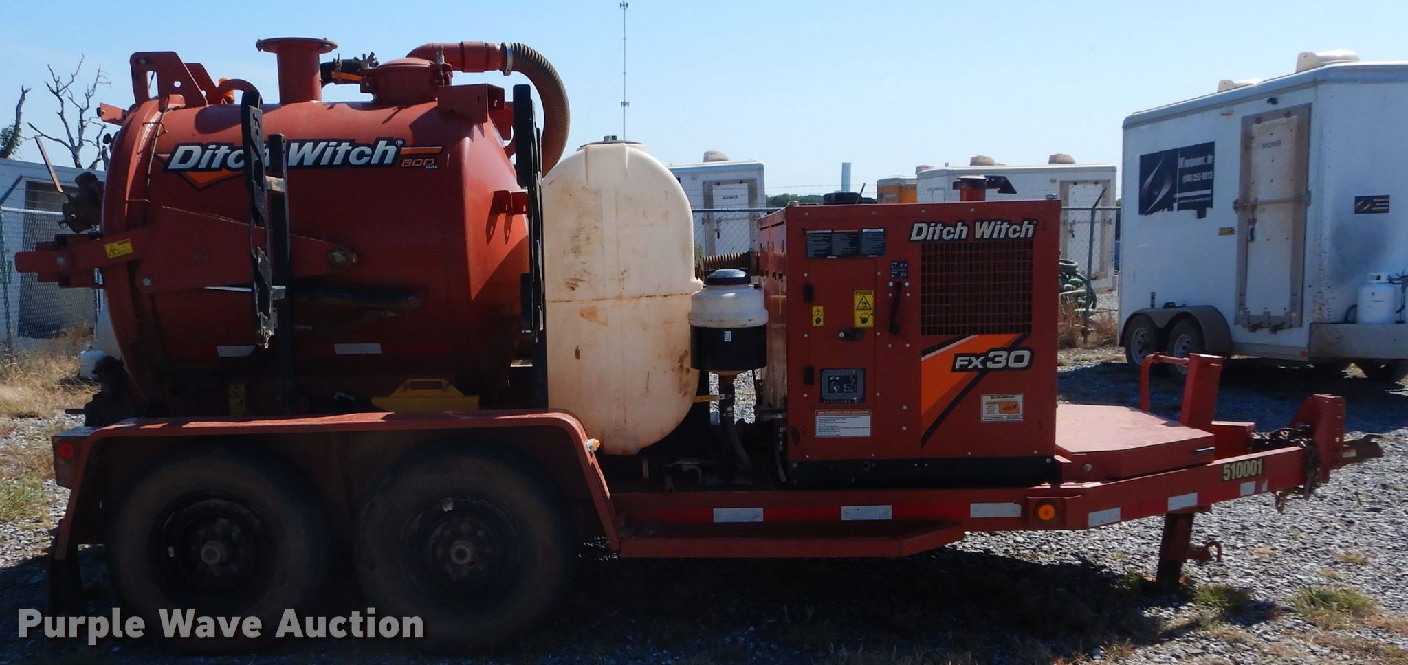 Purple Wave is selling a used Vacuum Excavator in Oklahoma. This item is a 2017 Ditch Witch FX30 vacuum excavator with the following: 1,814 hours on meter, Kubota 1.1L three cylinder diesel engine, 500 gallon steel tank, 4" inlet, 6" outlet, 22'L trailer, Jack stand, Spring suspension, Electric brakes, Tandem axle, Steel wheels, 235/80R16 tires, Serial DWPFX30XAH0003199