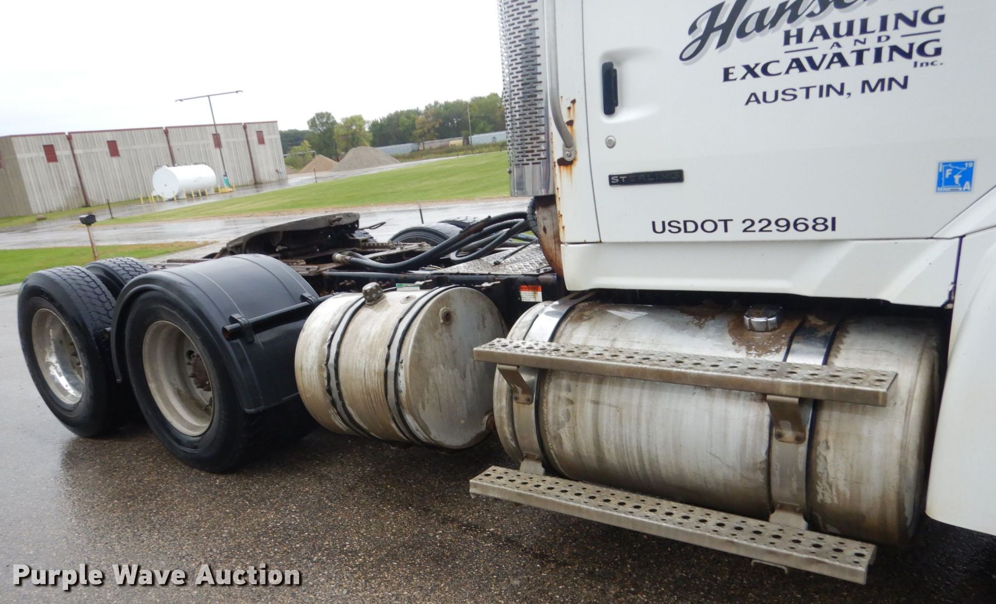 Purple Wave is selling a used Truck Tractor in Minnesota. This item is a 2006 Sterling L-Line semi truck with the following: 153,095 miles on odometer, 6,236 hours on meter, Caterpillar C15 14.6L L6 diesel engine, Serial MXS72312, 13 speed manual transmission, Tandem axle, Full locking differential, AC and heat, Cruise, Power windows and locks, Heated mirrors, Dump valves, PTO, Air ride cab, Aluminum deck plate, Air operated sliding fifth wheel plate, Dual fuel tanks, Air suspension, Air brakes, 11R22.5 tires