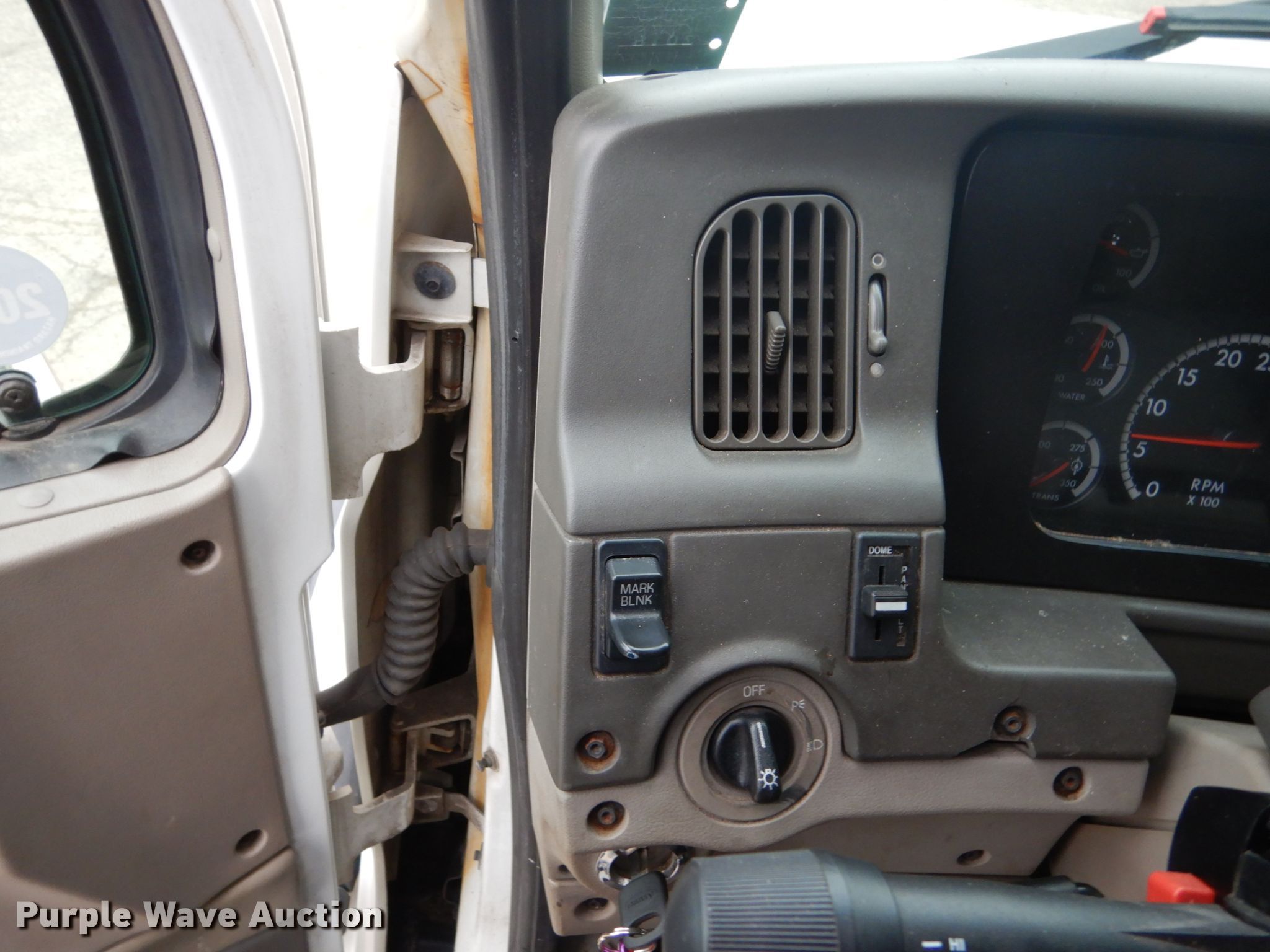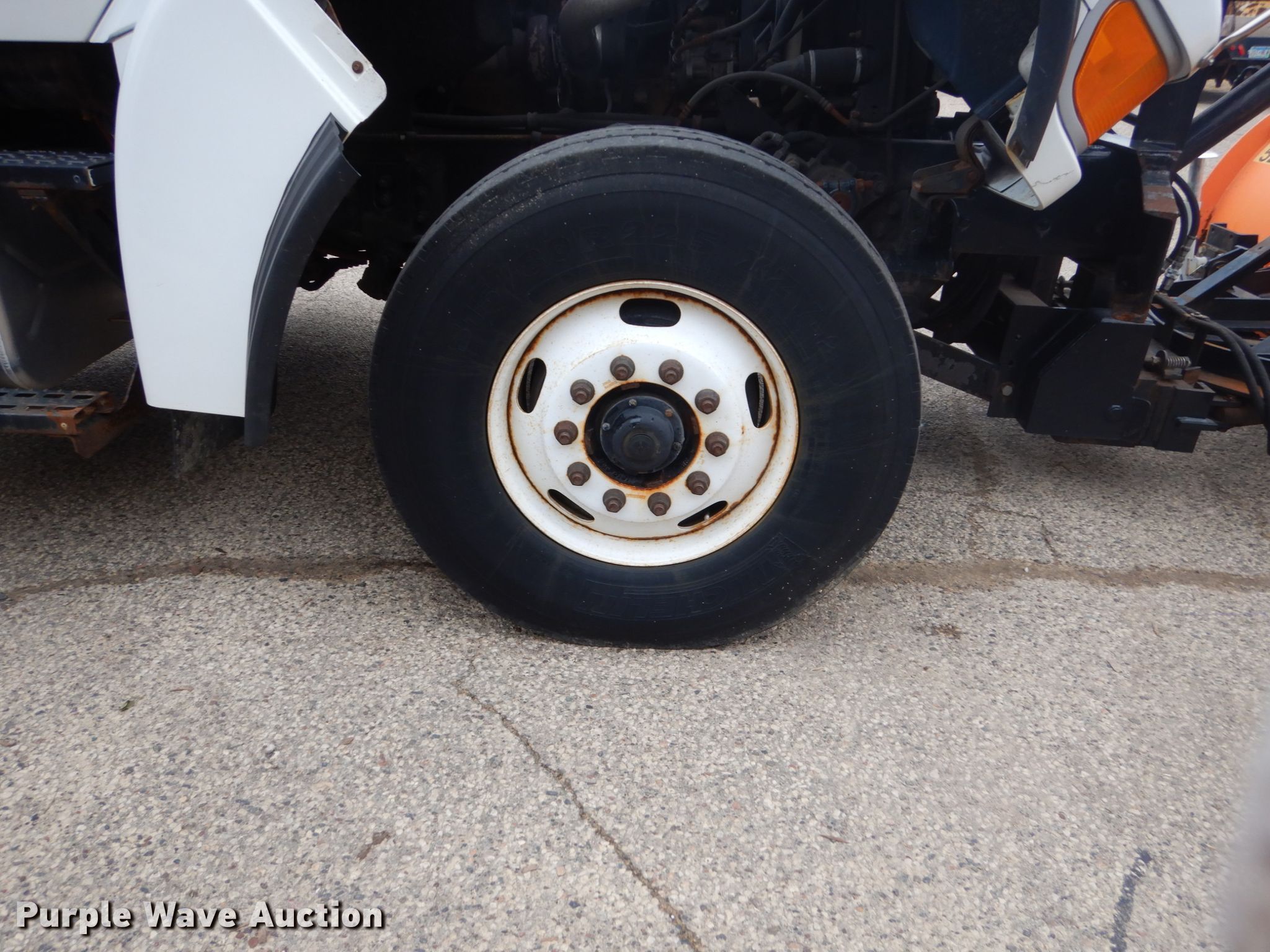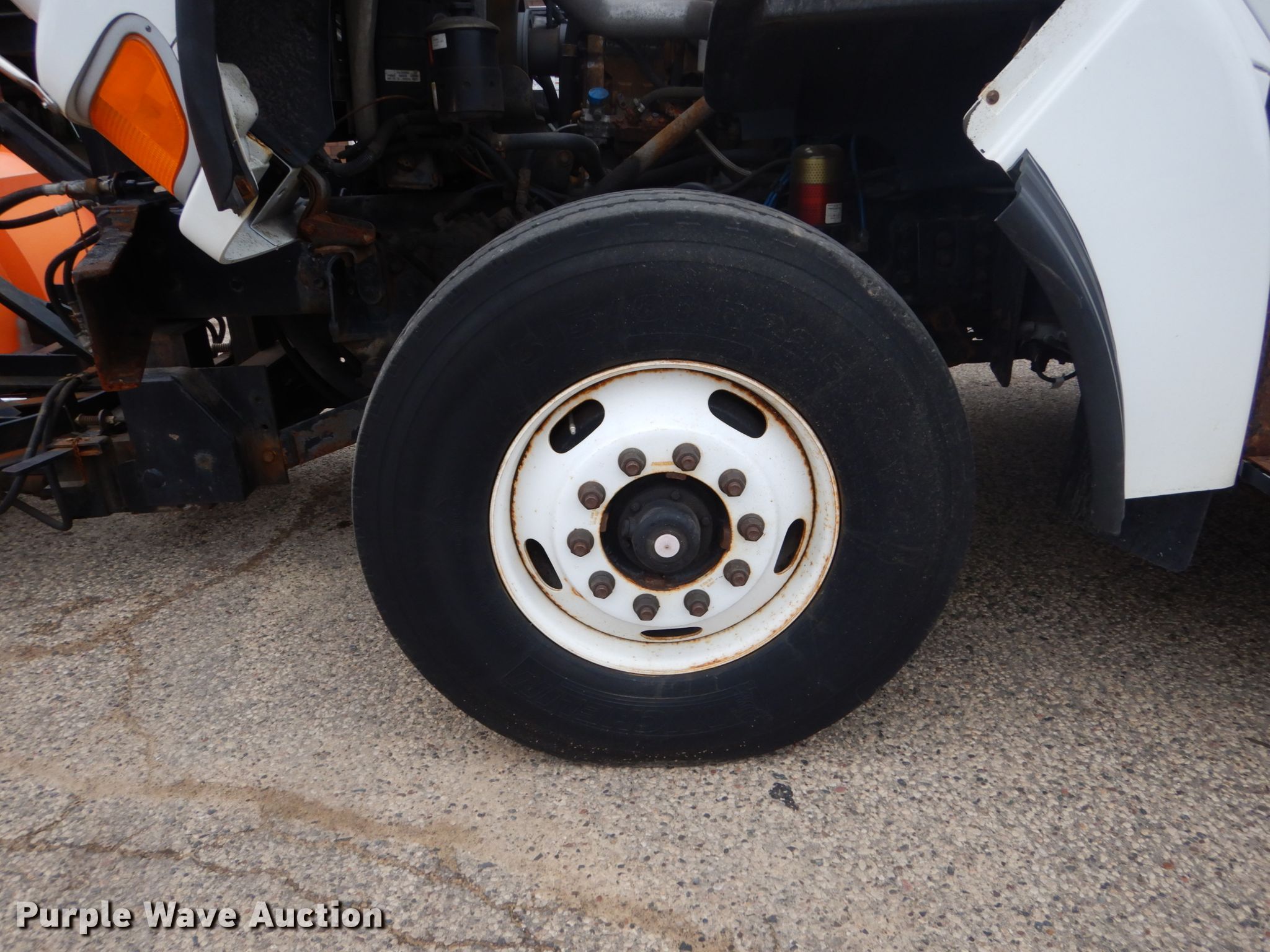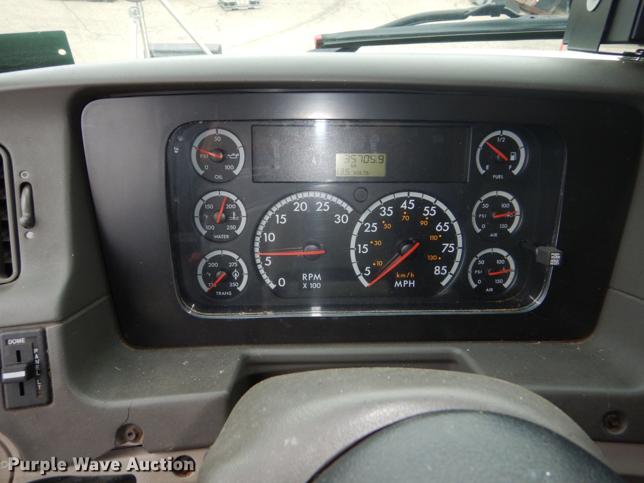 2004 Sterling L-Line dump truck. 35,709 miles on odometer, 3,309 hours on meter, Caterpillar 3126 7.2L L6 diesel engine Serial HEP33348, Automatic transmission, Single axle, Inter-axle differential lock, AC and heat, Cruise, Power windows, Heated mirrors, Front mounted PTO, 10'L x 96"W steel dump bed 42" side height, 10" side board height, Single ram hoist, Air operated end gate, Falls 1A2SD-6CDLMSS spreader, Monroe MPP44R12-ISTT 12'W snow plow, 9'W wing plow, 11'W mid-mounted snow plow, Automatic tire chains, Spring suspension, Air brakes, Automatic tire chains, 315/80R22.5 front tires, 11R22.5 rear tires, GVWR 39,000 lbs, FAWR 16,000 lbs, RAWR 23,000 lbs. Minnesota title. 2FZAAWAK44AM32057. 9600 Newton Ave S. Bloomington, MN 55431