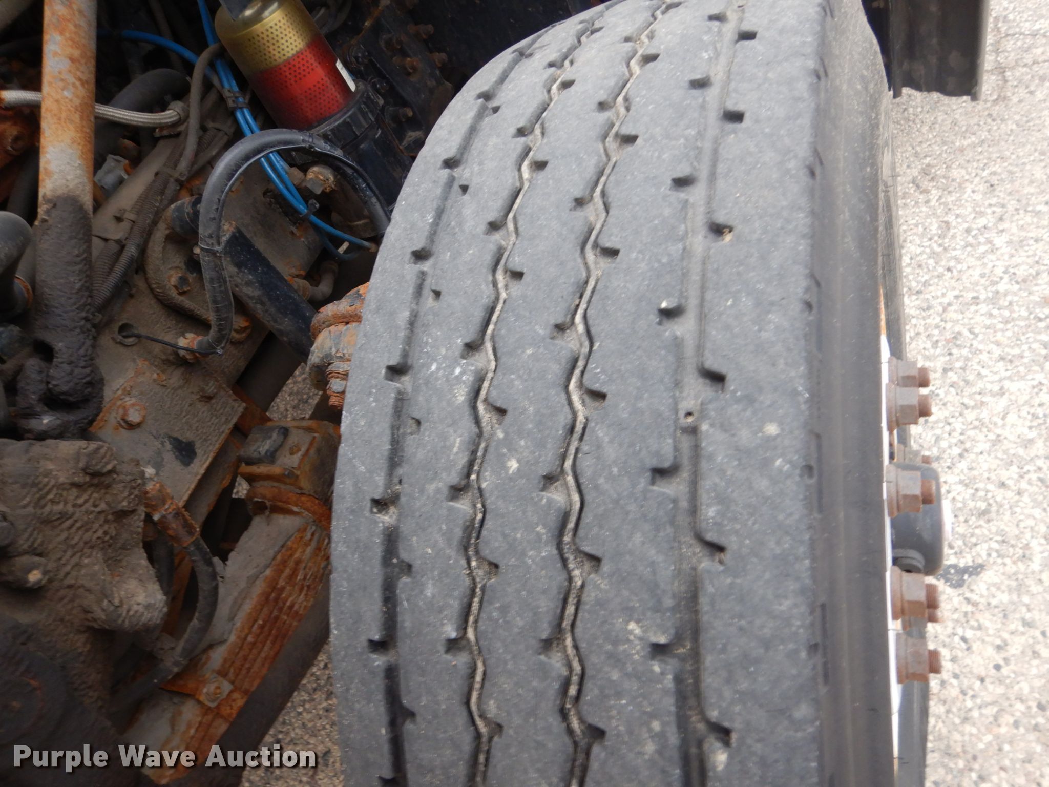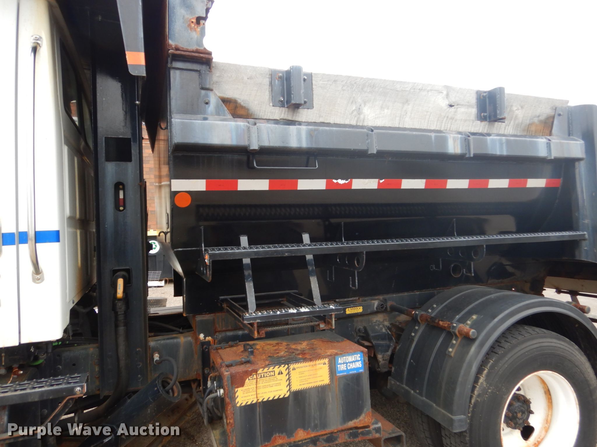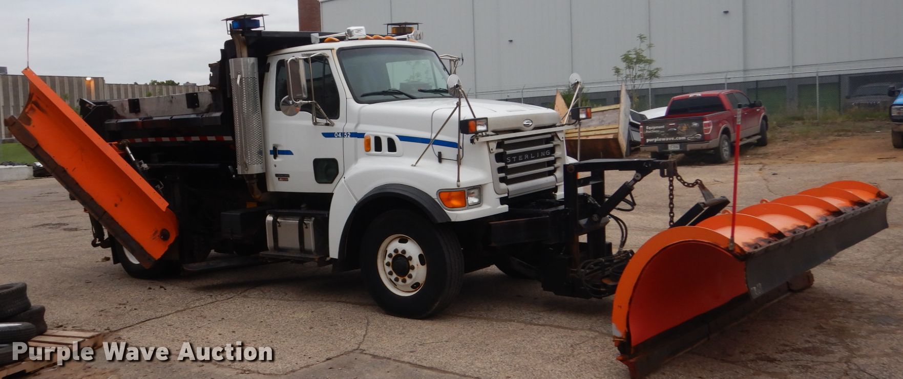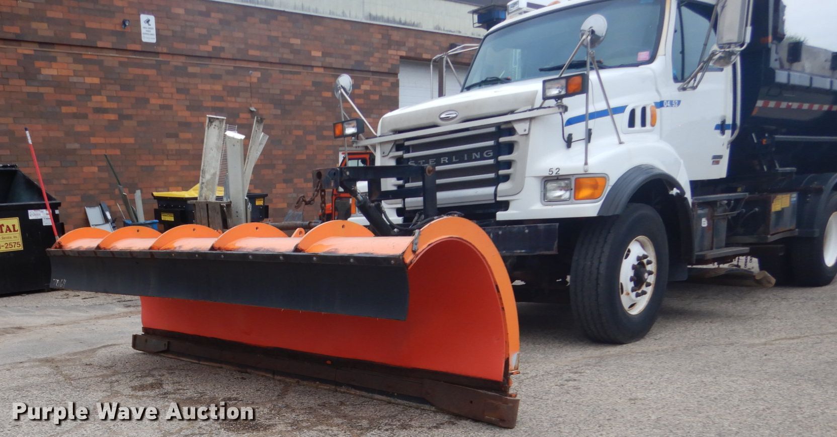 Purple Wave is selling a used Construction Dump Truck in Minnesota. This item is a 2004 Sterling L-Line dump truck with the following: 35,709 miles on odometer, 3,309 hours on meter, Caterpillar 3126 7.2L L6 diesel engine, Serial HEP33348, Automatic transmission, Single axle, Inter-axle differential lock, AC and heat, Cruise, Power windows, Heated mirrors, Front mounted PTO, 10'L x 96"W steel dump bed, 42" side height, 10" side board height, Single ram hoist, Air operated end gate, Falls 1A2SD-6CDLMSS spreader, Monroe MPP44R12-ISTT 12'W snow plow, 9'W wing plow, 11'W mid-mounted snow plow, Automatic tire chains, Spring suspension, Air brakes, Automatic tire chains, 315/80R22.5 front tires, 11R22.5 rear tires, GVWR 39,000 lbs, FAWR 16,000 lbs, RAWR 23,000 lbs