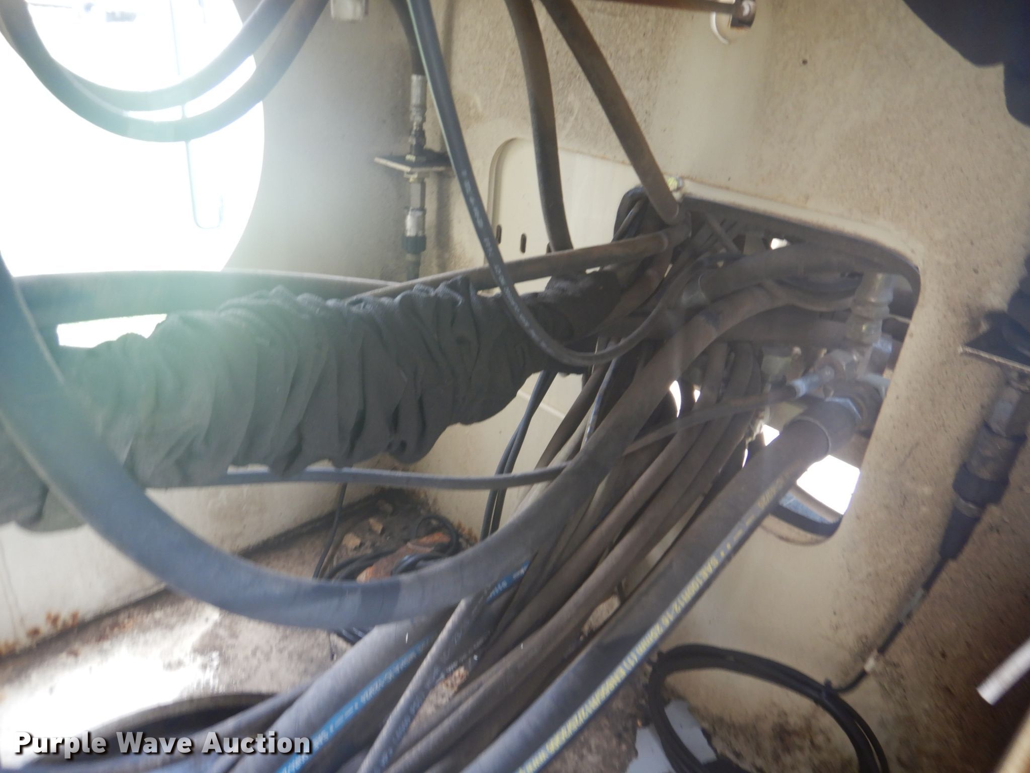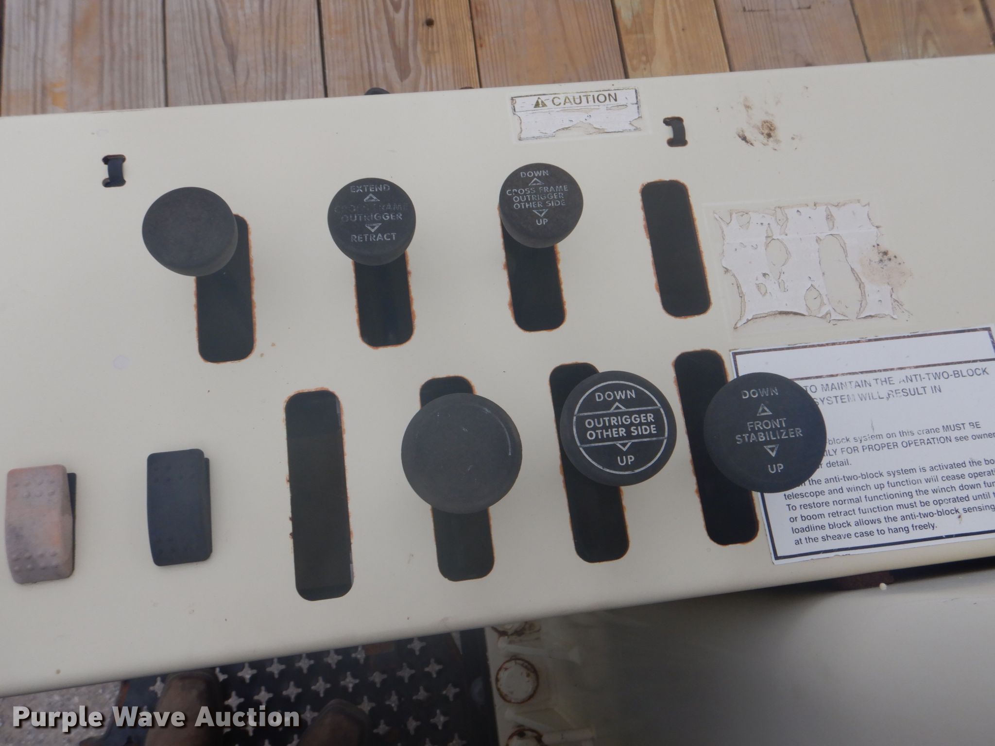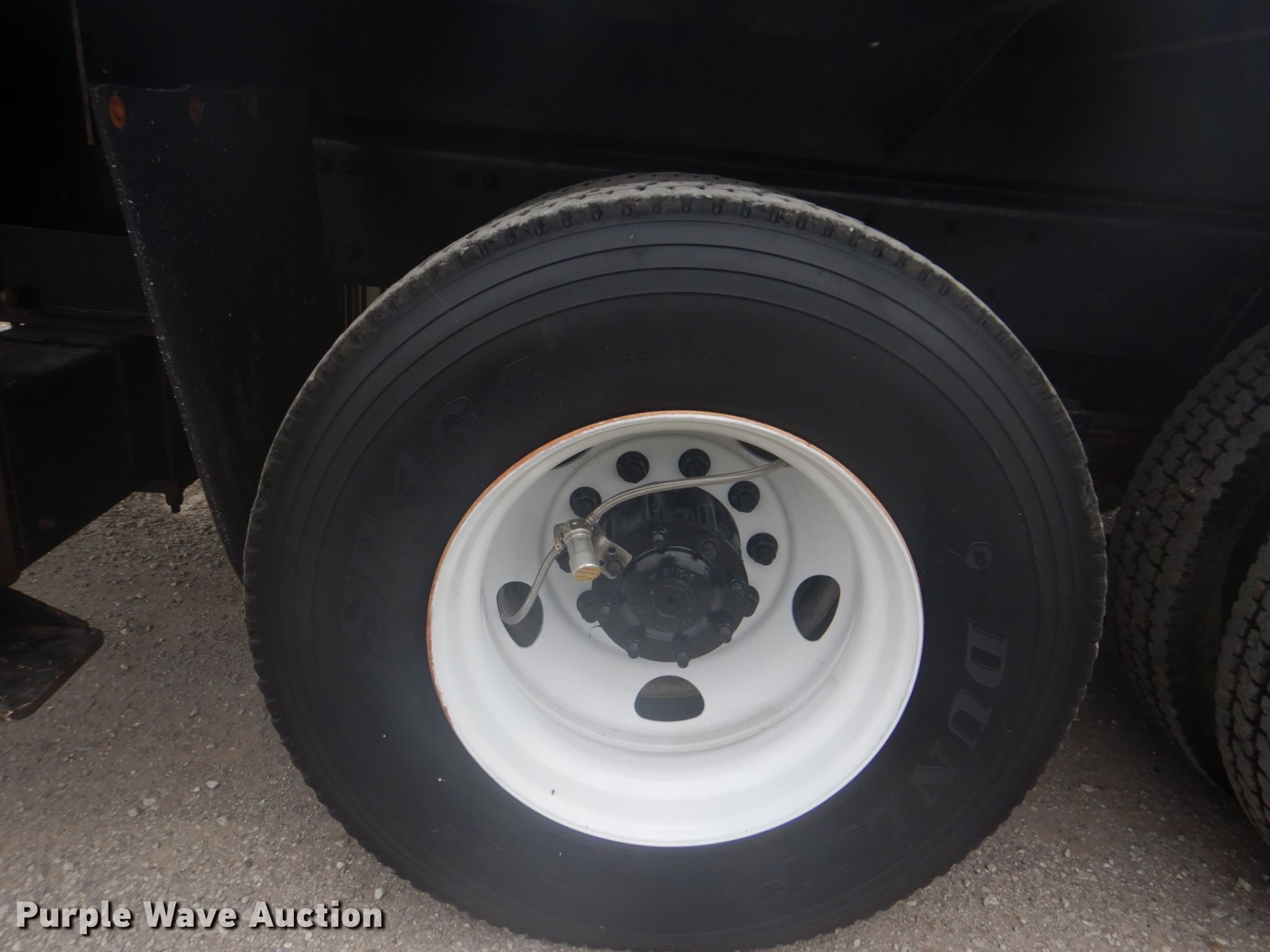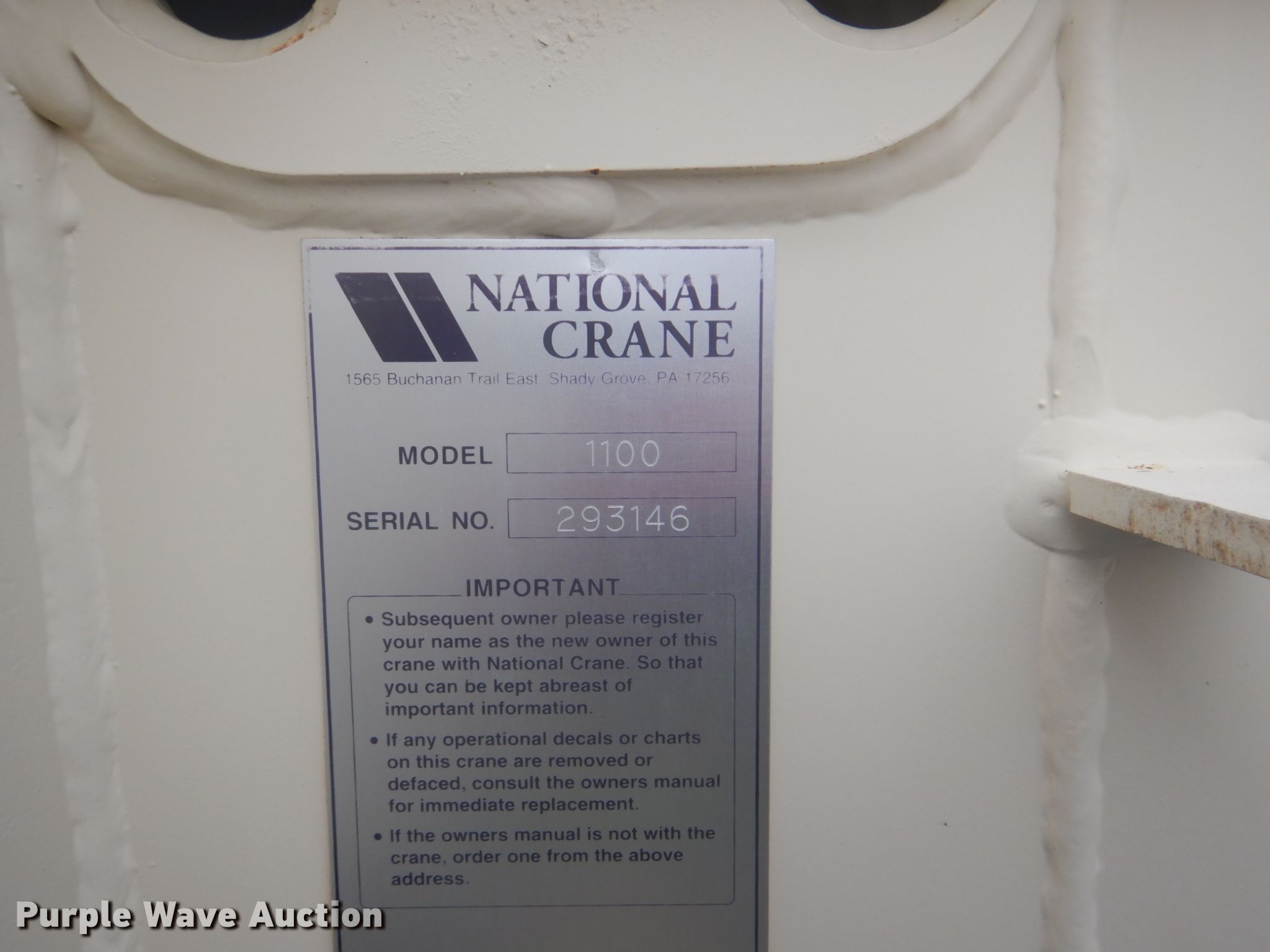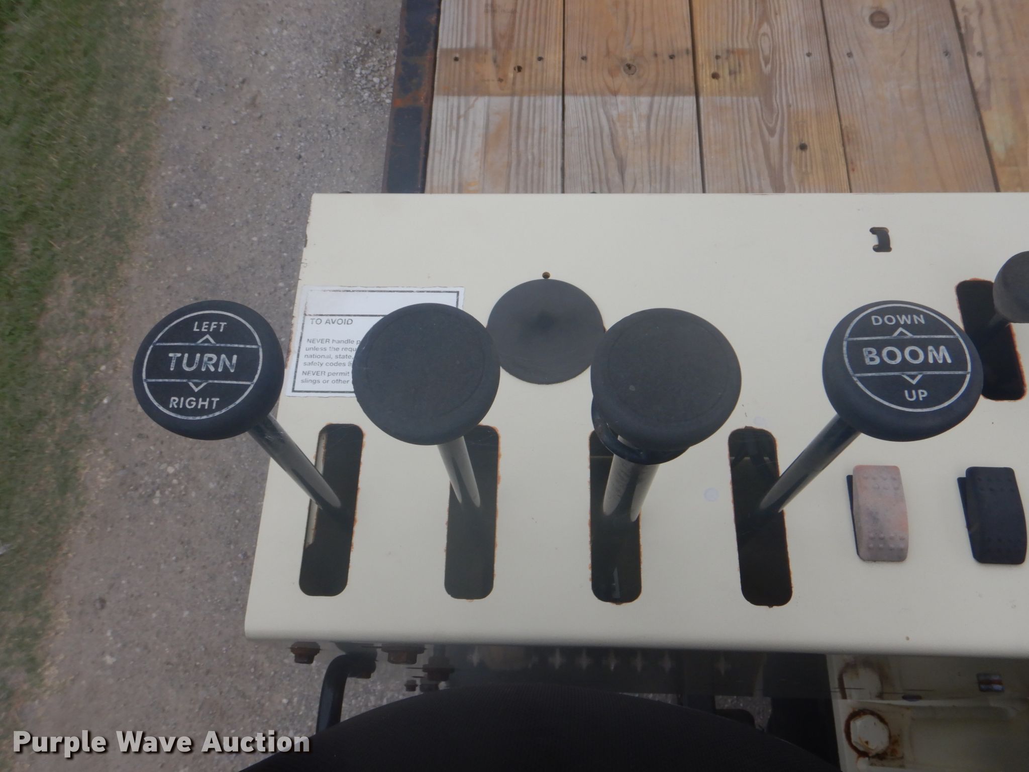 Purple Wave is selling a used Crane Truck in Oklahoma. This item is a 2007 Sterling L8500 crane truck with the following: 21,915 miles on odometer, 2,939 hours on meter, Caterpillar C7 7.2L L6 diesel engine, Eaton Fuller eight speed manual transmission, Tandem axle, Inter-axle differential lock, AC and heat, Knapheide PVMNAT-220D flatbed, 22'L, Serial 20061117-0046054, National Crane 1100 knuckle boom crane, 105' boom length, Four section boom, 28 ton maximum lift capacity, 161" maximum lift height, 44' jib, Ground boom controls, 84,000 lbs crane block, Lift chart, Spring suspension, Air brakes, Dunlop 11R22.5 tires, GVWR 47,500 lbs