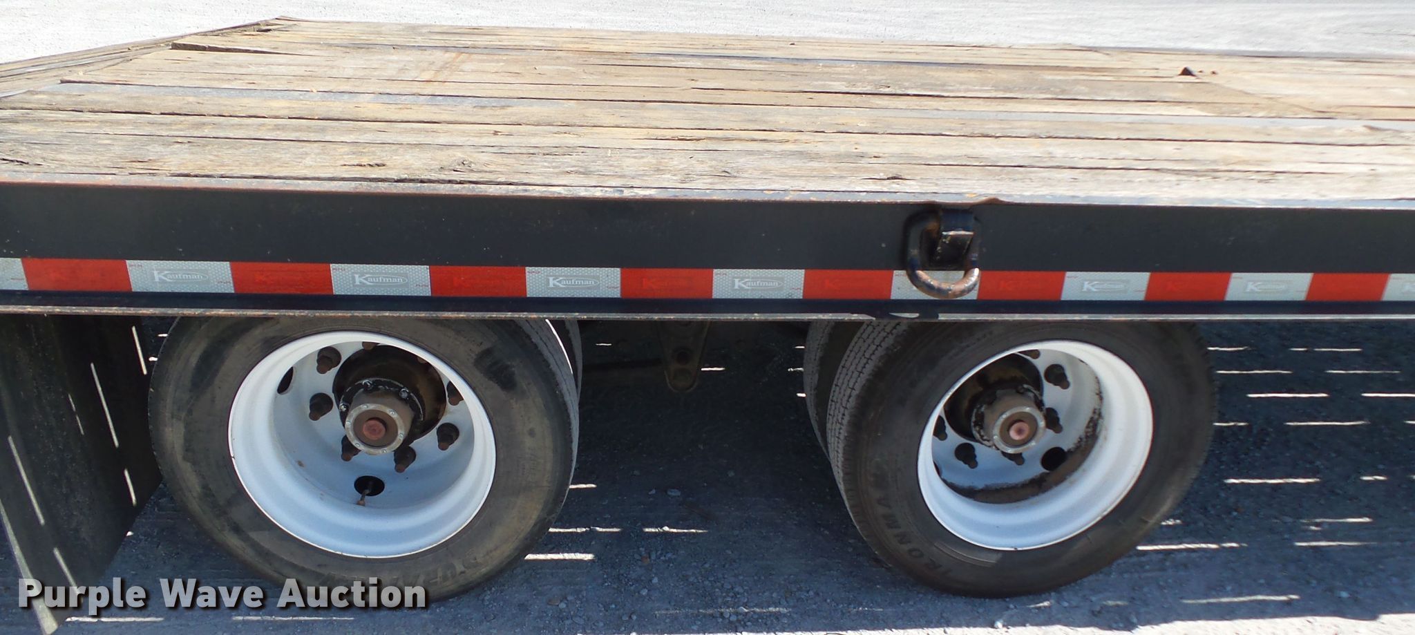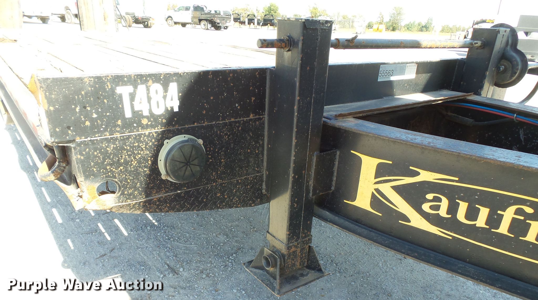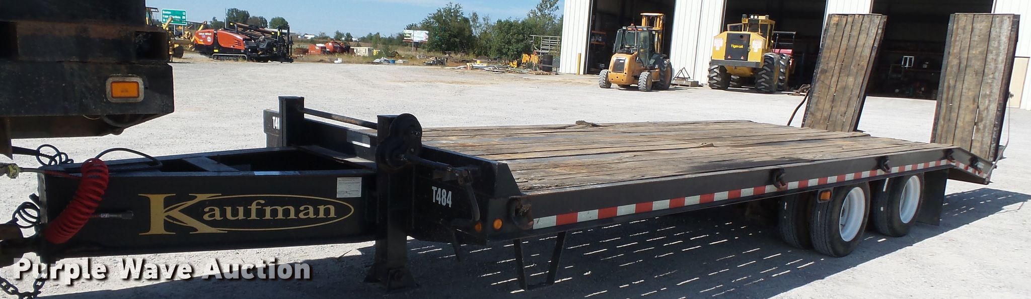 Purple Wave is selling a used Equip. Trailer in Missouri. This item is a 2013 Kaufman equipment trailer with the following: 30'L x 102"W overall dimensions, 20'L wood main deck, 5' tail length, 6'L ramps, Dual leg two speed landing gear, Spring suspension, Air brakes, Tandem axle, Steel wheels, 215/75R17.5 tires, GVWR 45,000 lbs, Unit# T484