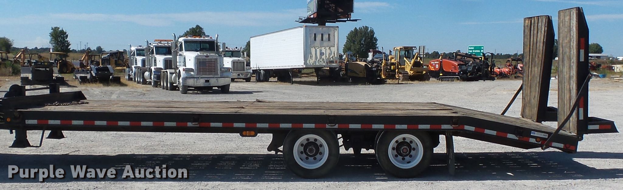 2013 Kaufman equipment trailer. 30'L x 102"W overall dimensions, 20'L wood main deck, 5' tail length, 6'L ramps, Dual leg two speed landing gear, Spring suspension, Air brakes, Tandem axle, Steel wheels, 215/75R17.5 tires, GVWR 45,000 lbs, Unit# T484. Missouri title. Seller is a Missouri licensed motor vehicle dealer. Title will be assigned and distributed by the dealer. Please contact the seller for distribution questions. 5SHAP2525DB001472. Floyd's Inc. Inventory Reduction Auction - Open Inspection Oct. 30. 225 N Interstate Dr. Sikeston, MO 63801