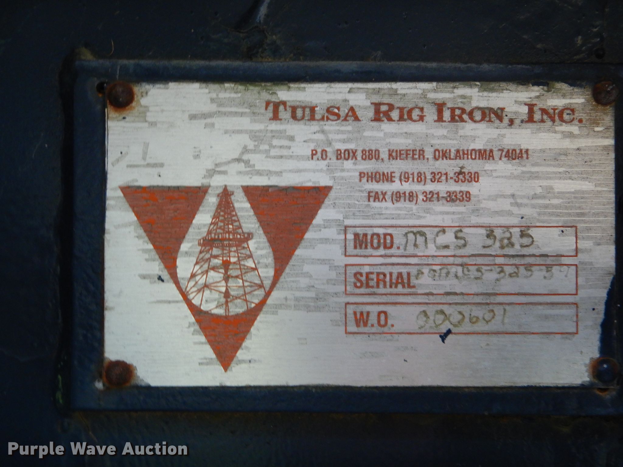 Tulsa Rig Iron MCS325 vacuum reclaimer | SOLD! October 31 Floyd's Inc. Inventory Reduction Auction