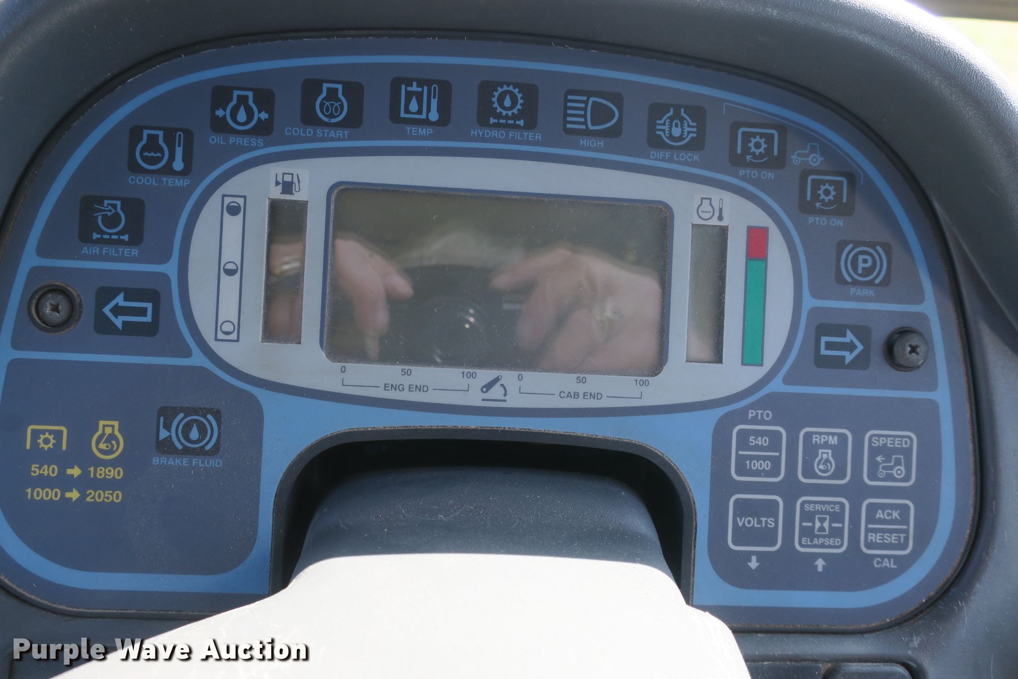 Purple Wave is selling a used Tractor in Missouri. This item is a 2005 New Holland TV145 bi-directional 4WD tractor with the following: 3,257 hours on meter, New Holland six cylinder diesel engine, Hydrostatic transmission, 3F-3R gears, Differential lock, AC and heat, New Holland 84LB loader, 101"W bucket, Pallet forks, Model HD75, 5,500 lbs capacity, Snow plow, Model 96, 96"W, Quick attach, Seven pin outlet, 540/1000 PTO, (3) rear hydraulic remote sets, Front wheel weights, 480/85R34 tires, Possible transmission issues, Possible brake issues, Serial RVS024060