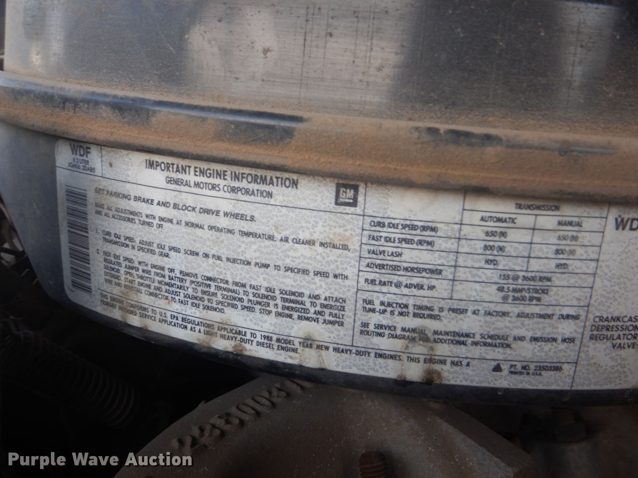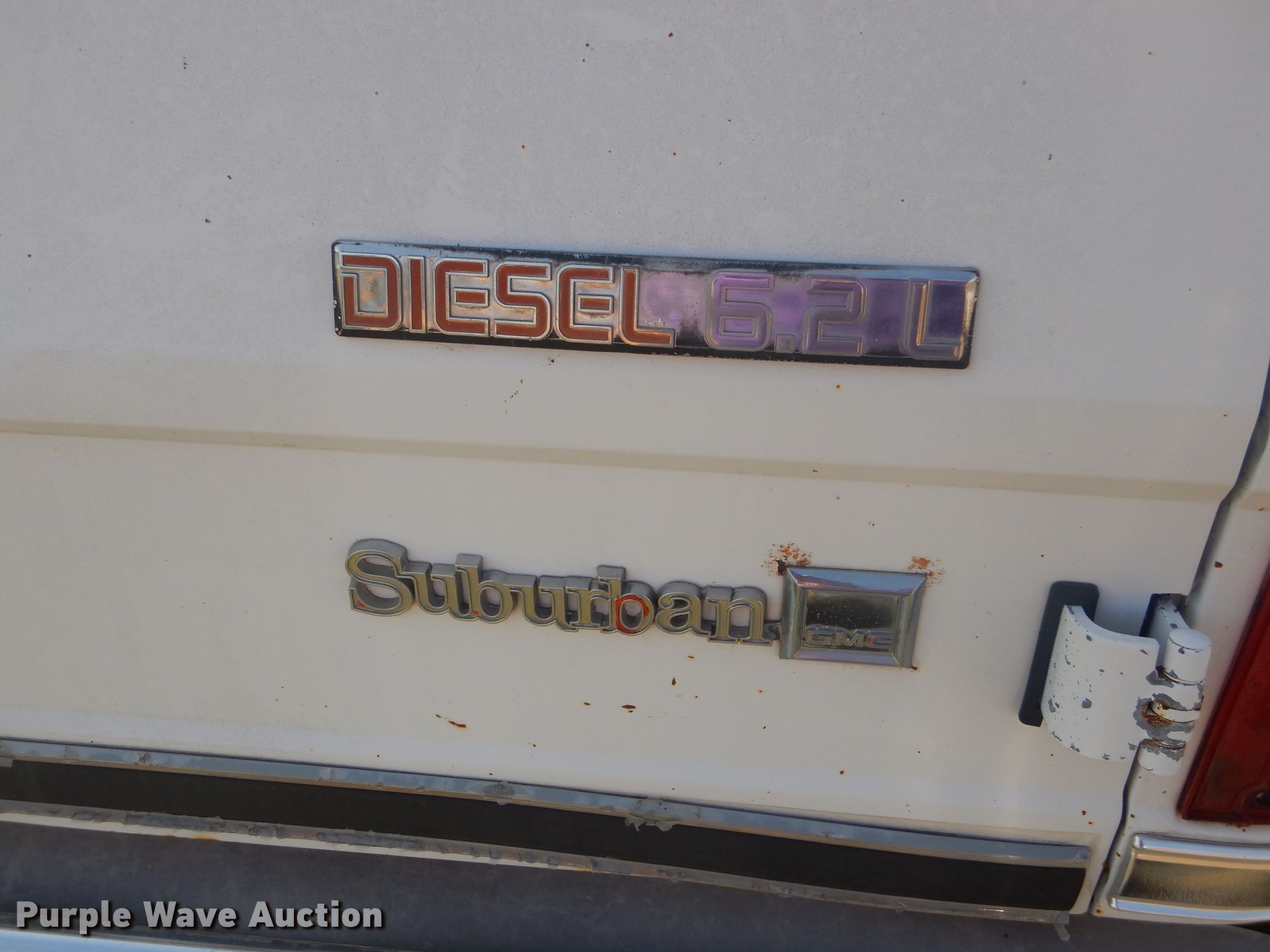 Purple Wave is selling a used Passenger Vehicle in Kansas. This item is a 1988 GMC Suburban 2500 SUV with the following: 23,749 miles on odometer, 6.2L V8 OHV 16V diesel engine, Automatic transmission, AC and heat, 235/85R16 tires, Engine starts hard, Possible glow plug issue, AC may need recharged