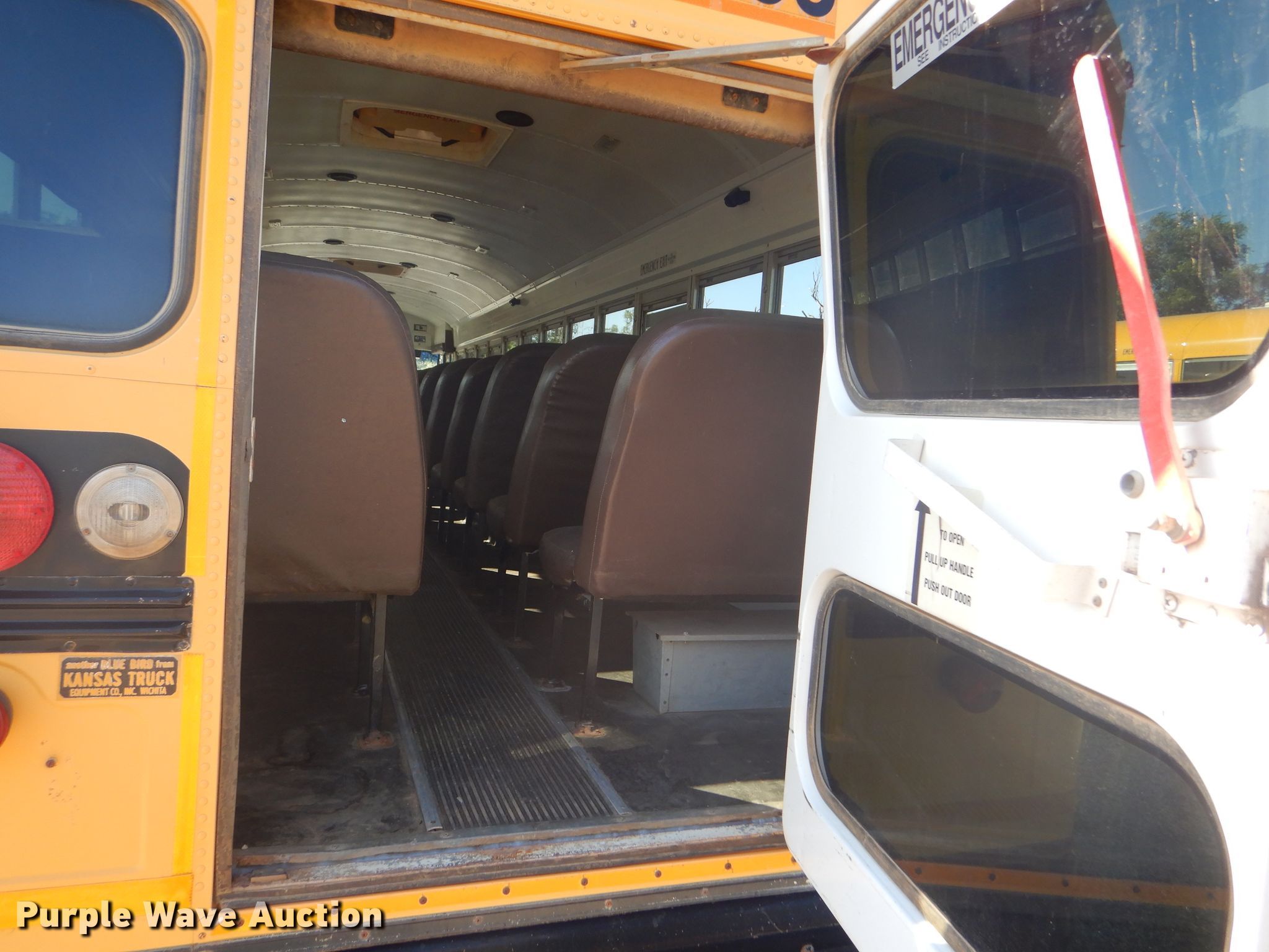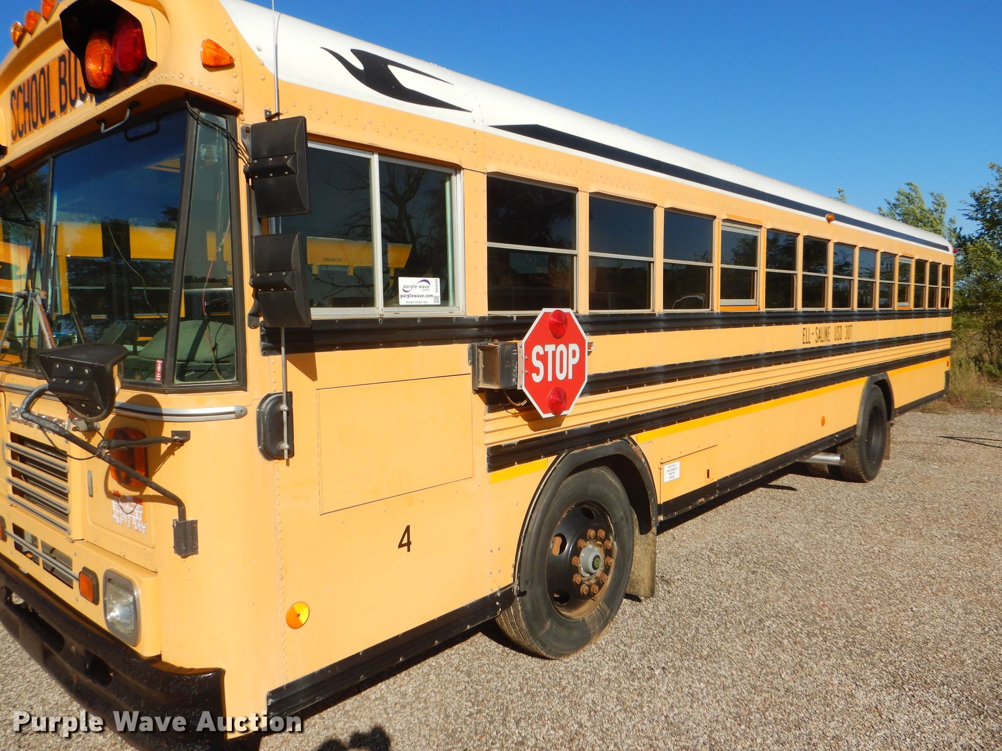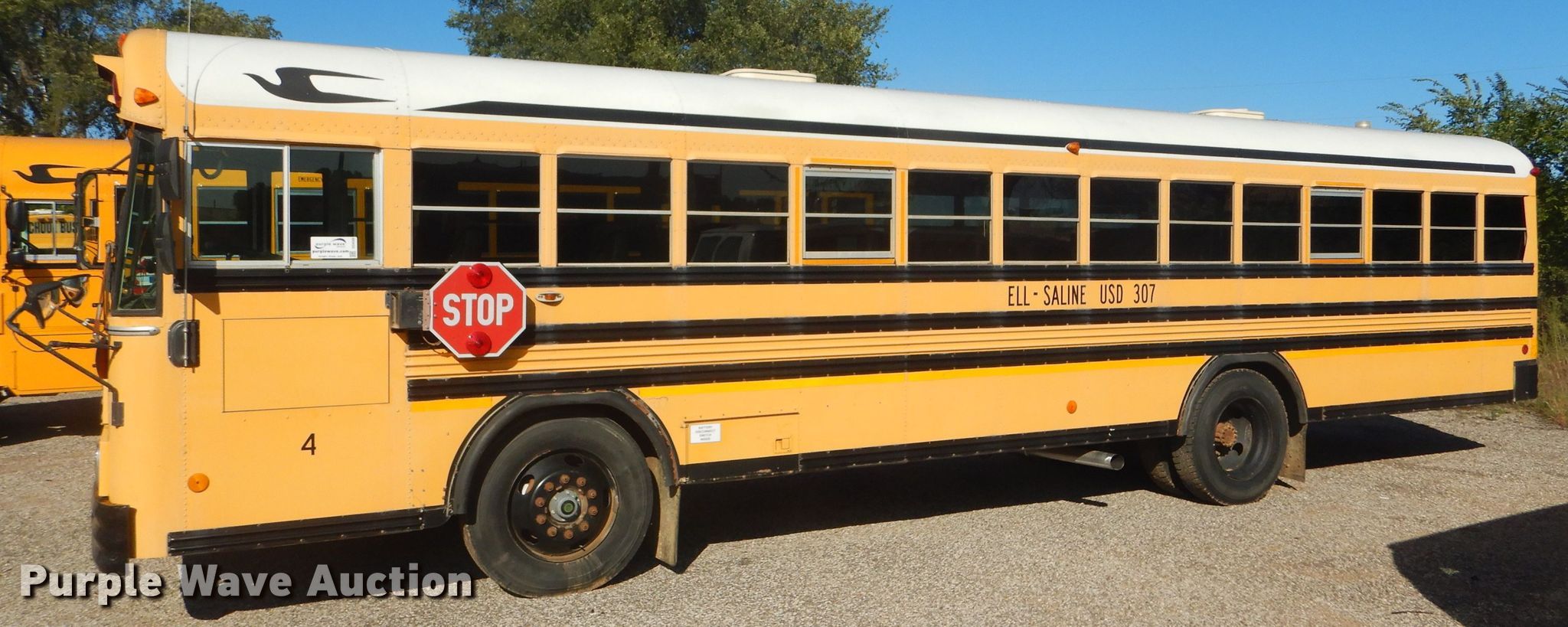 Purple Wave is selling a used Bus in Kansas. This item is a 2000 Blue Bird TC2000 school bus with the following: 102,718 miles on odometer, Cummins ISB 5.9L L6 diesel engine, Serial 45942343, Allison automatic transmission, Single axle, Heat, Auxiliary controls, 68 passenger capacity, Spring suspension, Hydraulic brakes, 10R22.5 tires, GVWR 30,000 lbs