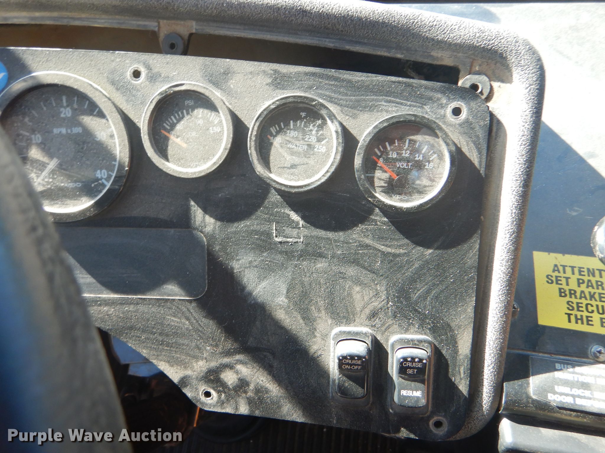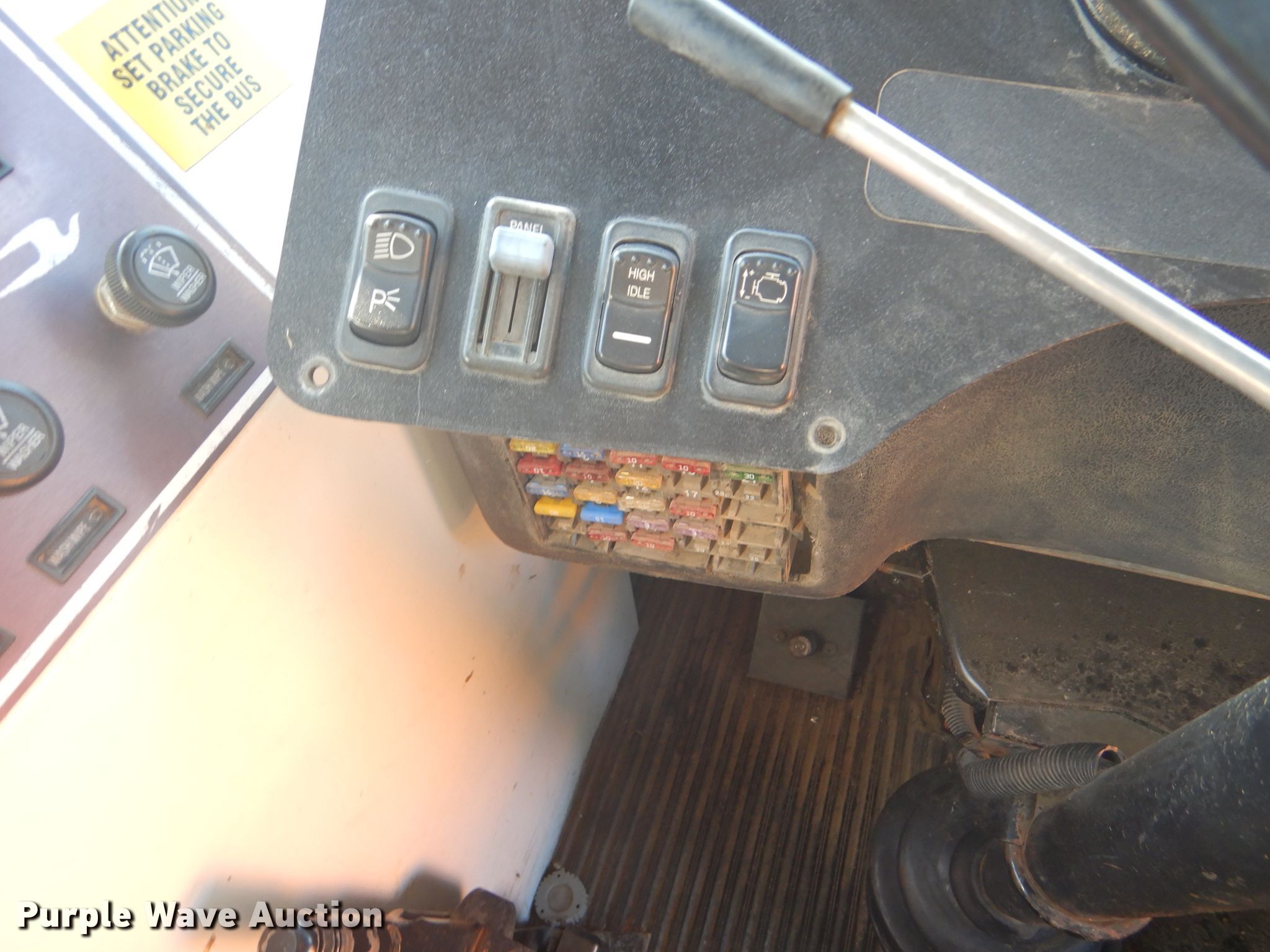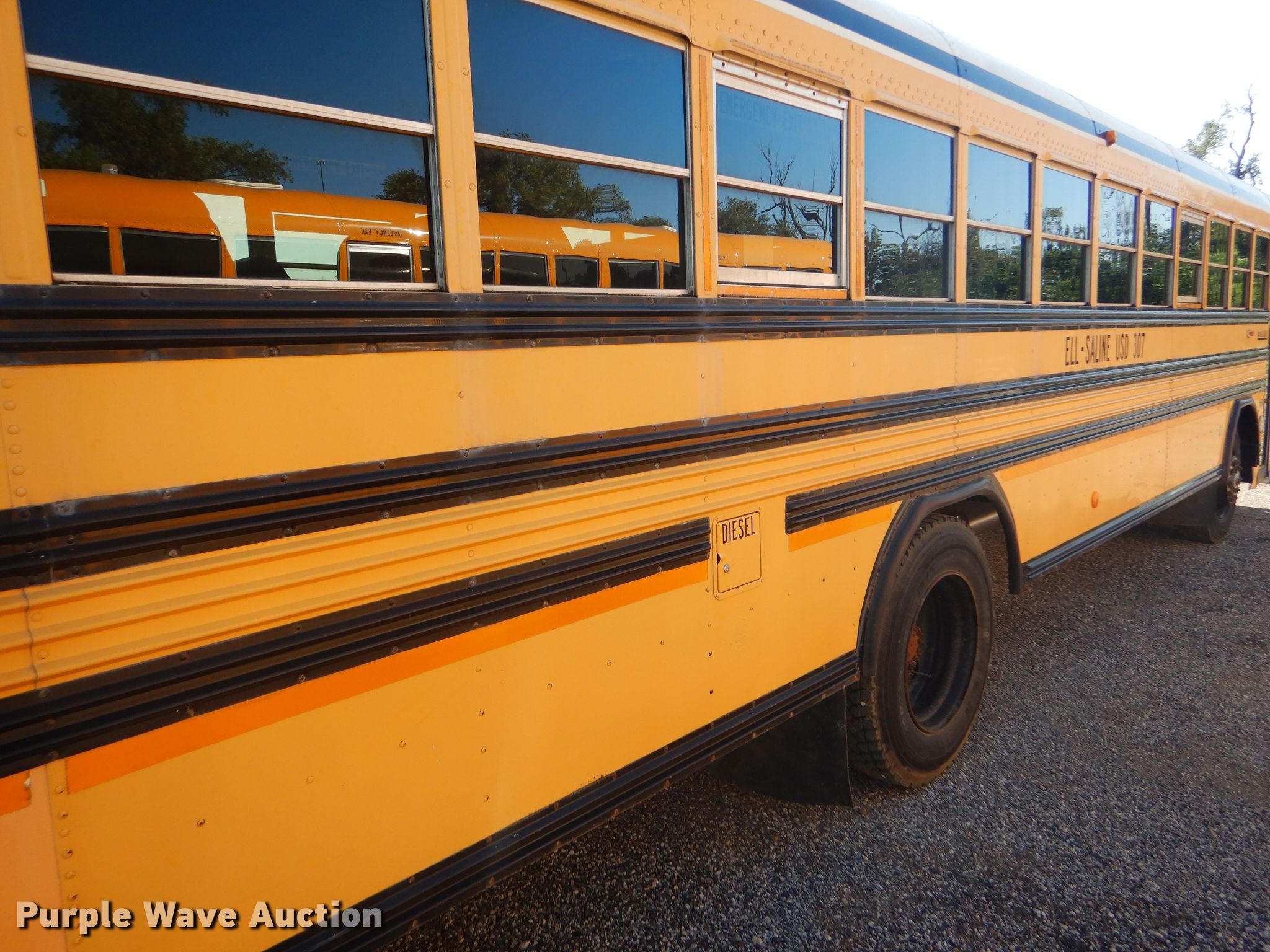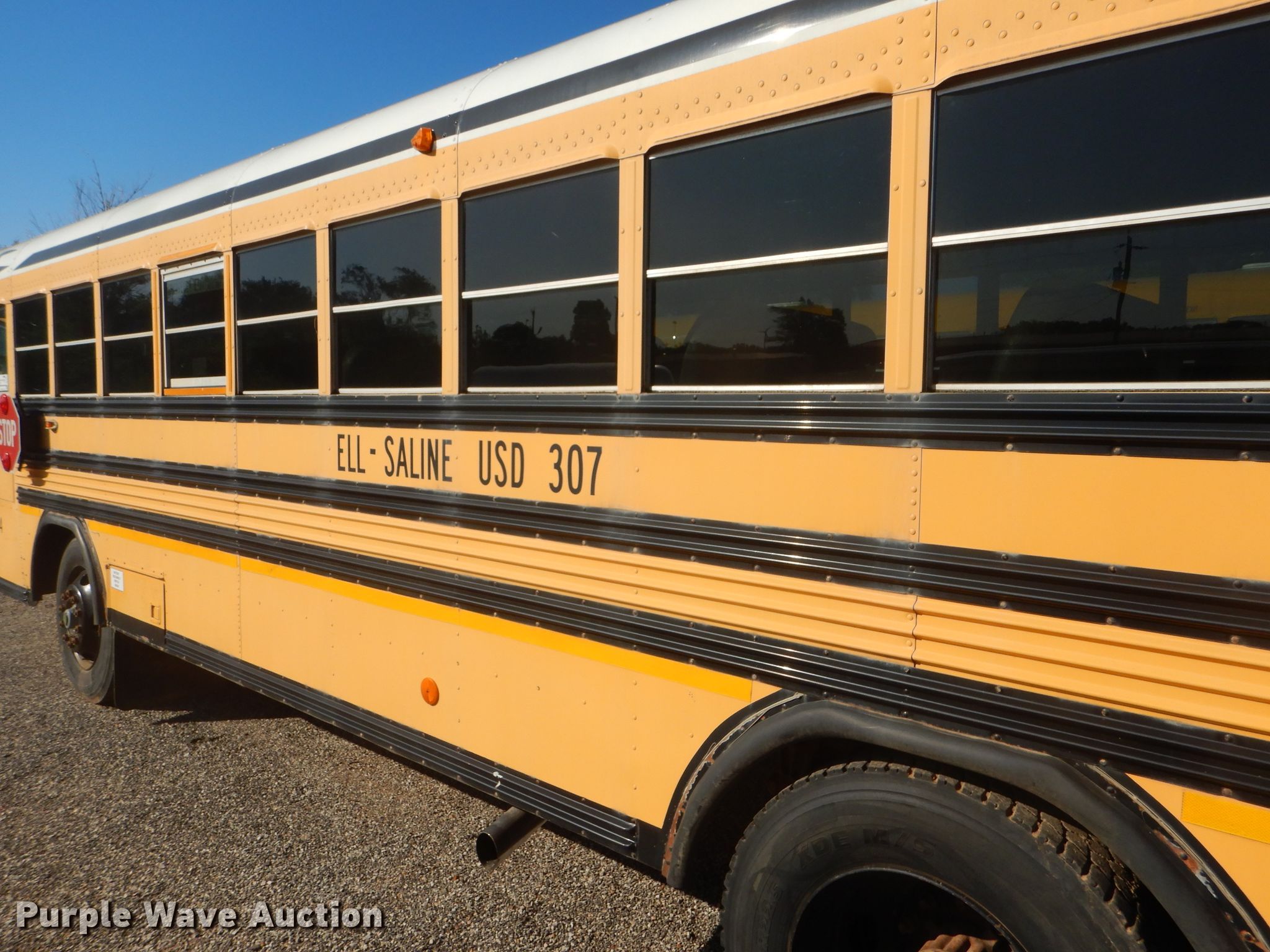 Purple Wave is selling a used Bus in Kansas. This item is a 2000 Blue Bird TC2000 school bus with the following: 102,718 miles on odometer, Cummins ISB 5.9L L6 diesel engine, Serial 45942343, Allison automatic transmission, Single axle, Heat, Auxiliary controls, 68 passenger capacity, Spring suspension, Hydraulic brakes, 10R22.5 tires, GVWR 30,000 lbs