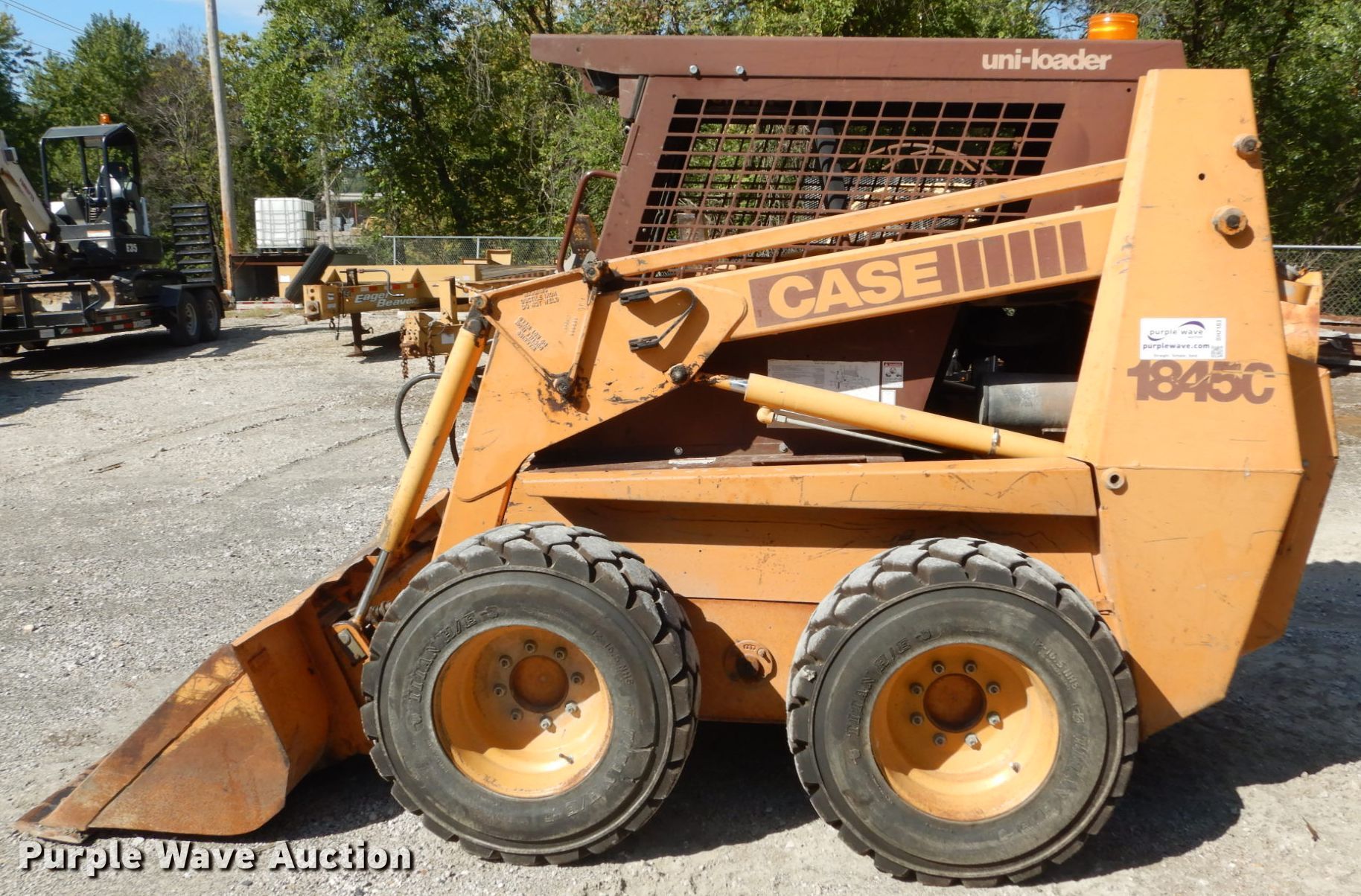 Purple Wave is selling a used Skid Steer Loader in Missouri. This item is a 1994 Case 1845C skid steer with the following: 3,263 hours on meter, Case four cylinder diesel engine, Hydrostatic transmission, OROPS, Foot bucket controls, Auxiliary hydraulics, Manual quick coupler, 72"W bucket, Bolt-on cutting edge, Counterweights, 12-16.5 NHS tires, Case 14.5"W over the tire tracks, Drive motor issue, Serial JAF0135842