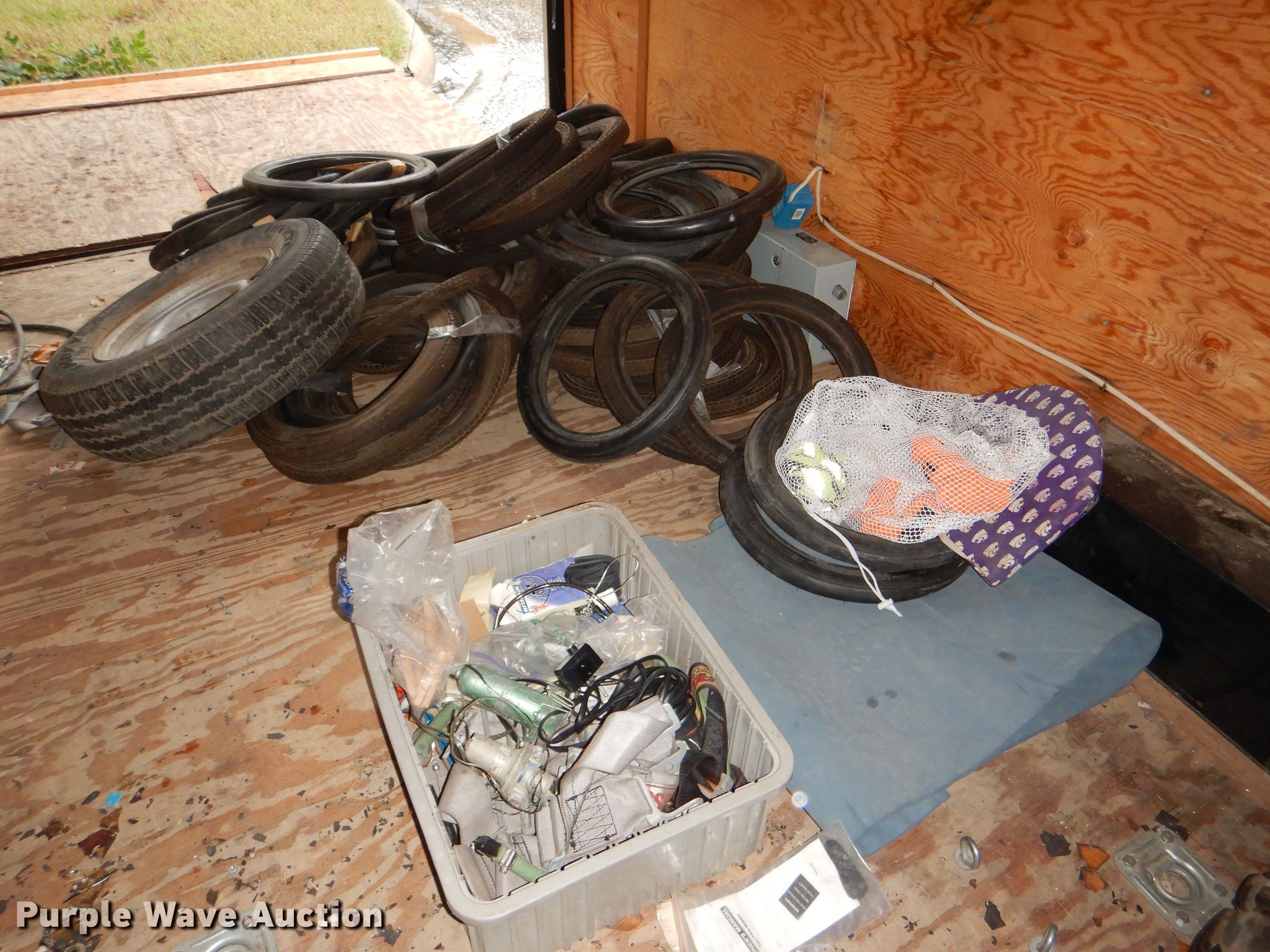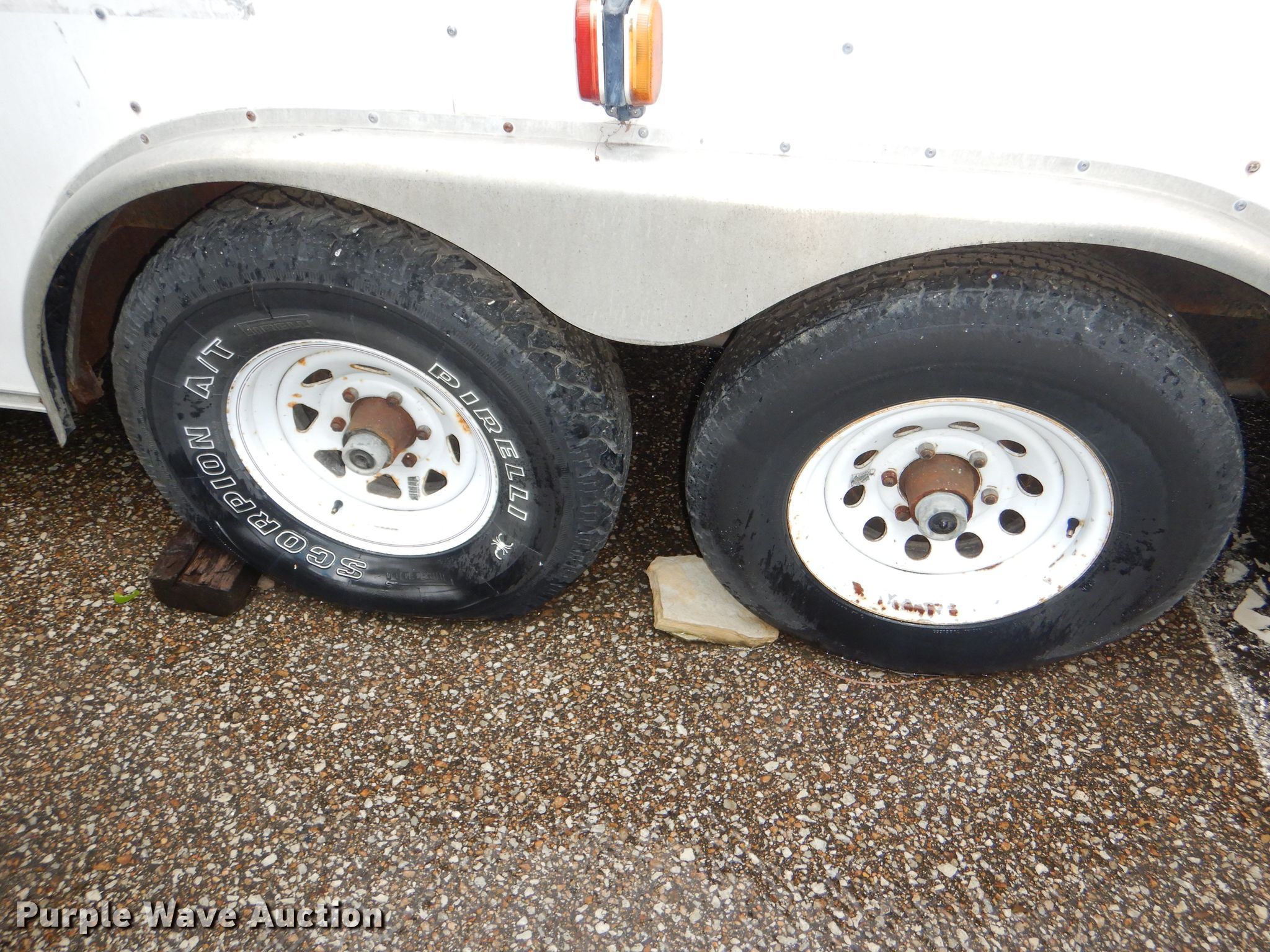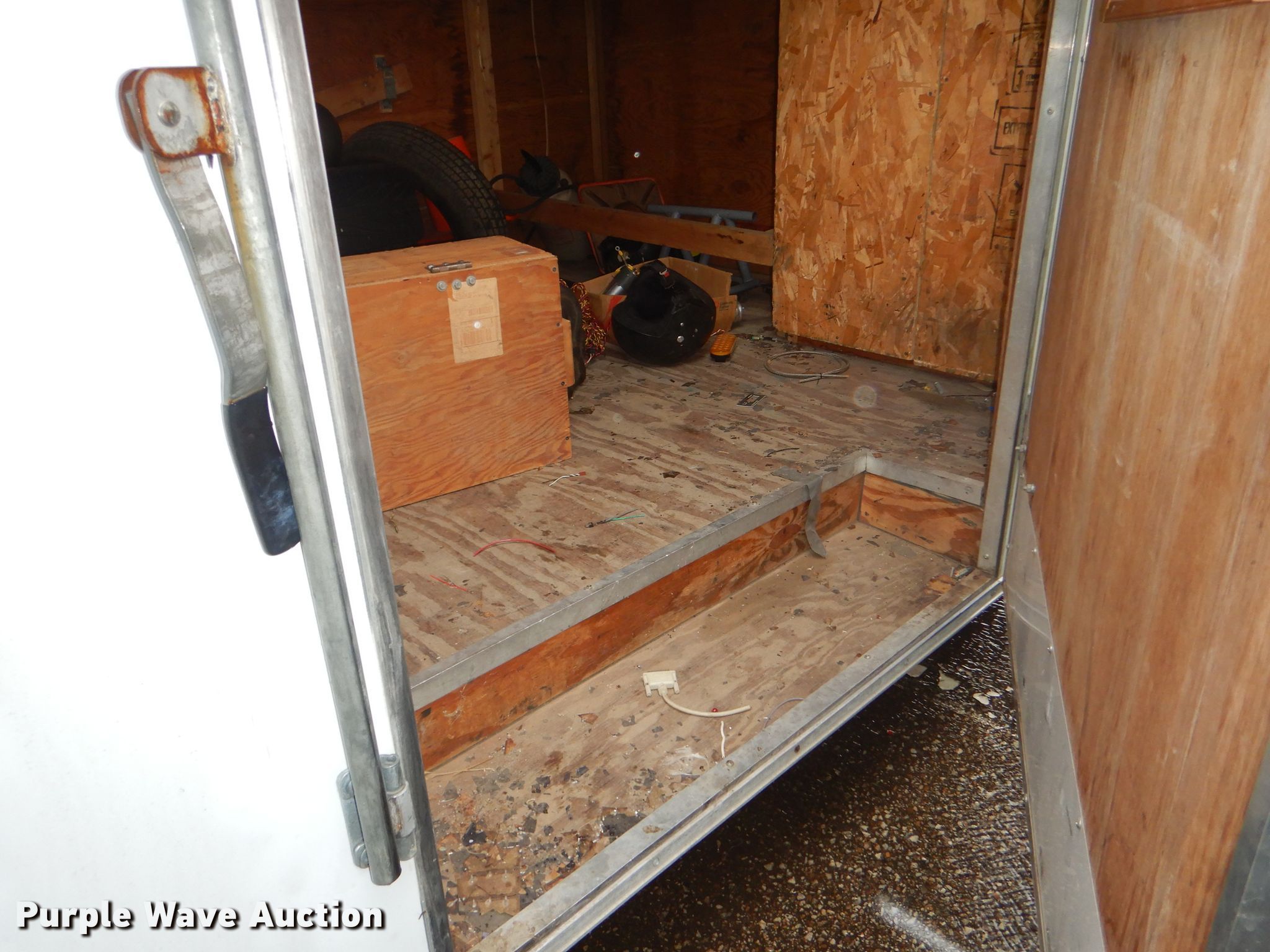 Purple Wave is selling a used Enclosed Cargo Trailer in Kansas. This item is a 1997 Southern enclosed cargo trailer with the following: 26'L x 8'W overall, 23.5'L x 95"W x 79"H inside dimensions, Rear ramp door, Shelving and storage cabinet, Load leveling bars, 2 5/16" ball hitch, Electric brakes, Tandem axle, 225/75R15 tires, GAWR 7,000 lbs, Additional tire and wheel, Contents included