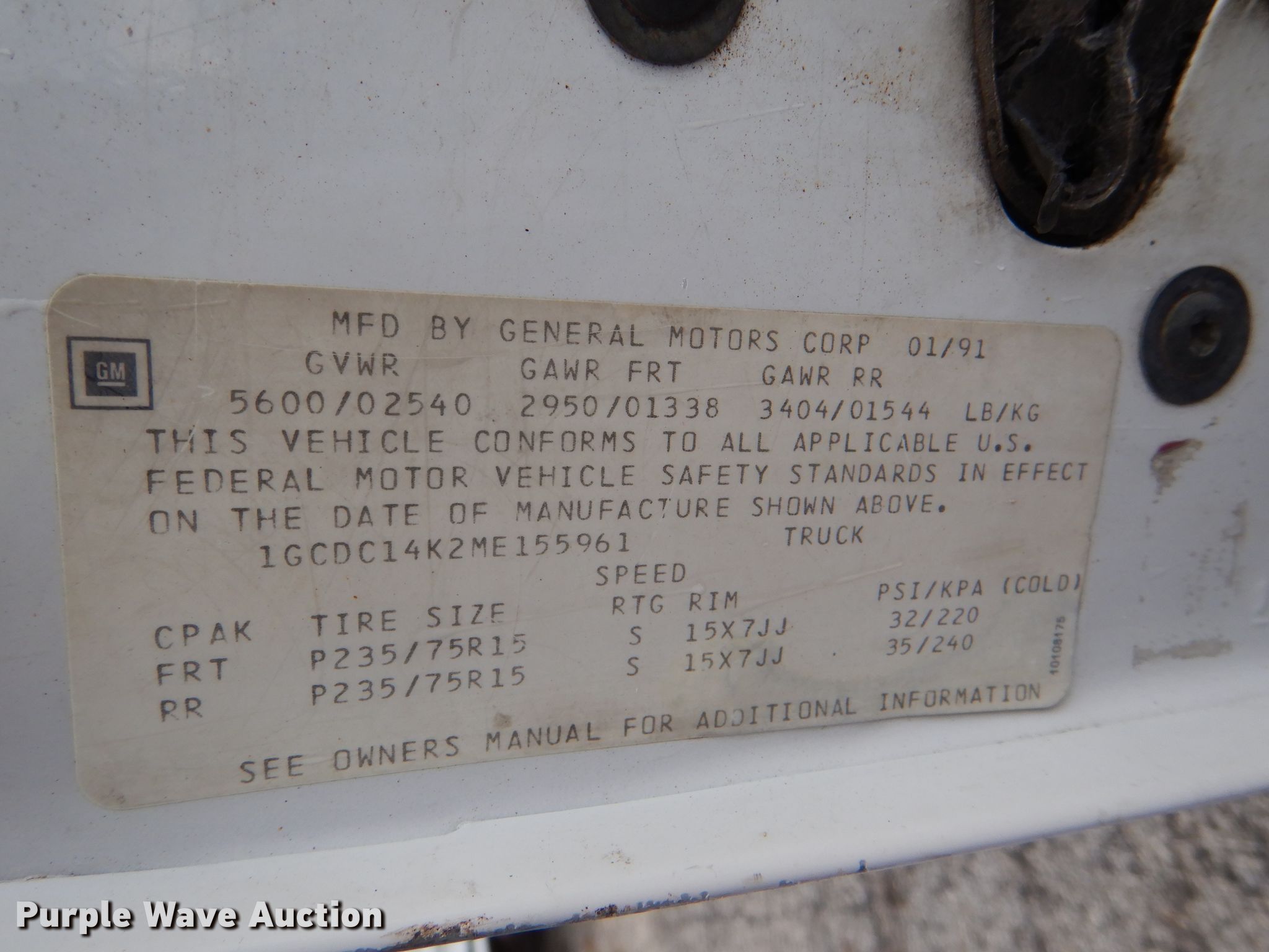 Purple Wave is selling a used 1/2 Ton Pickup or Van in Missouri. This item is a 1991 Chevrolet C1500 pickup truck with the following: 103,911 miles on odometer, 5.7L V8 OHV 16V gas engine, Automatic transmission, AC and heat, 235/75R15 tires, Dead battery