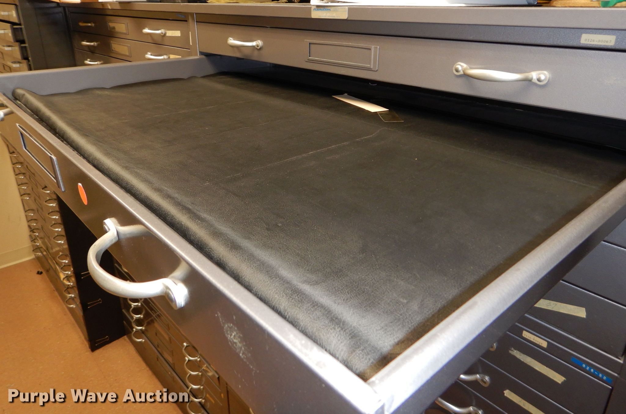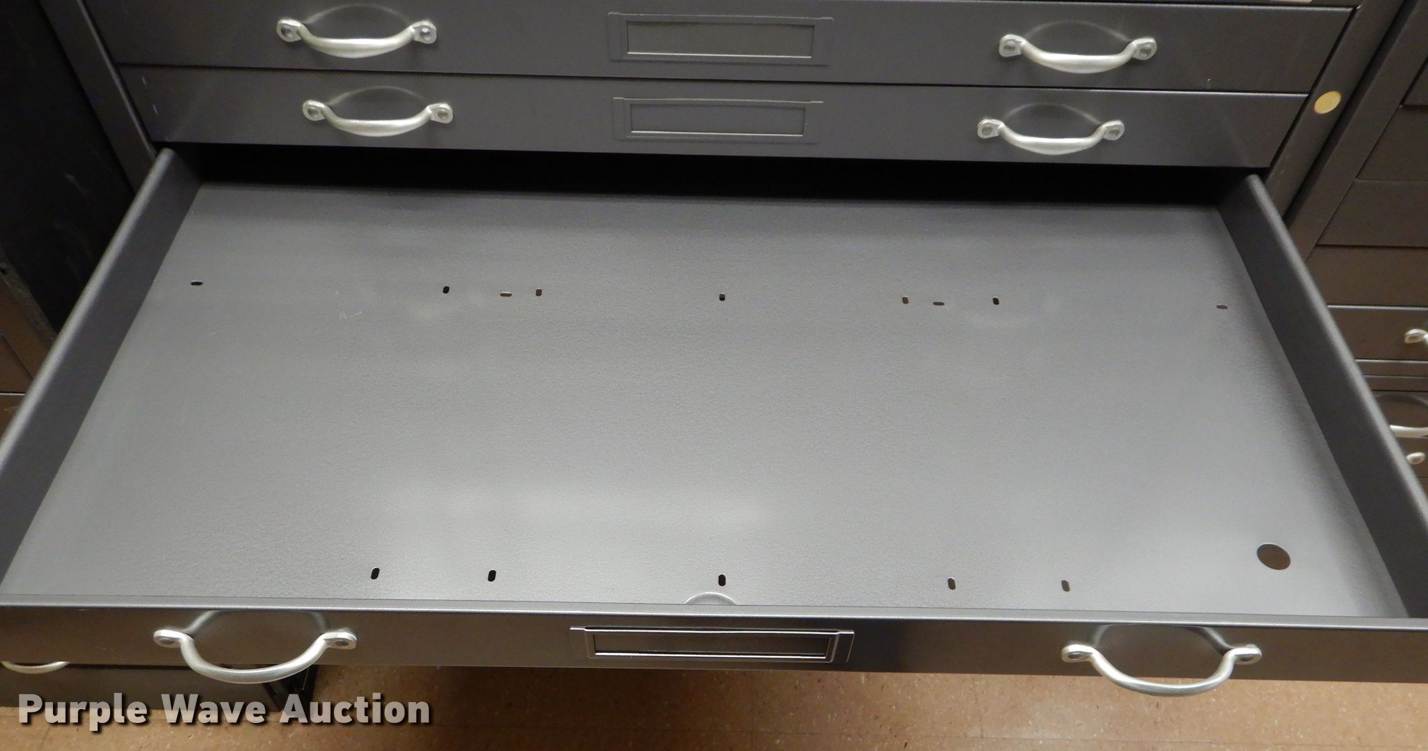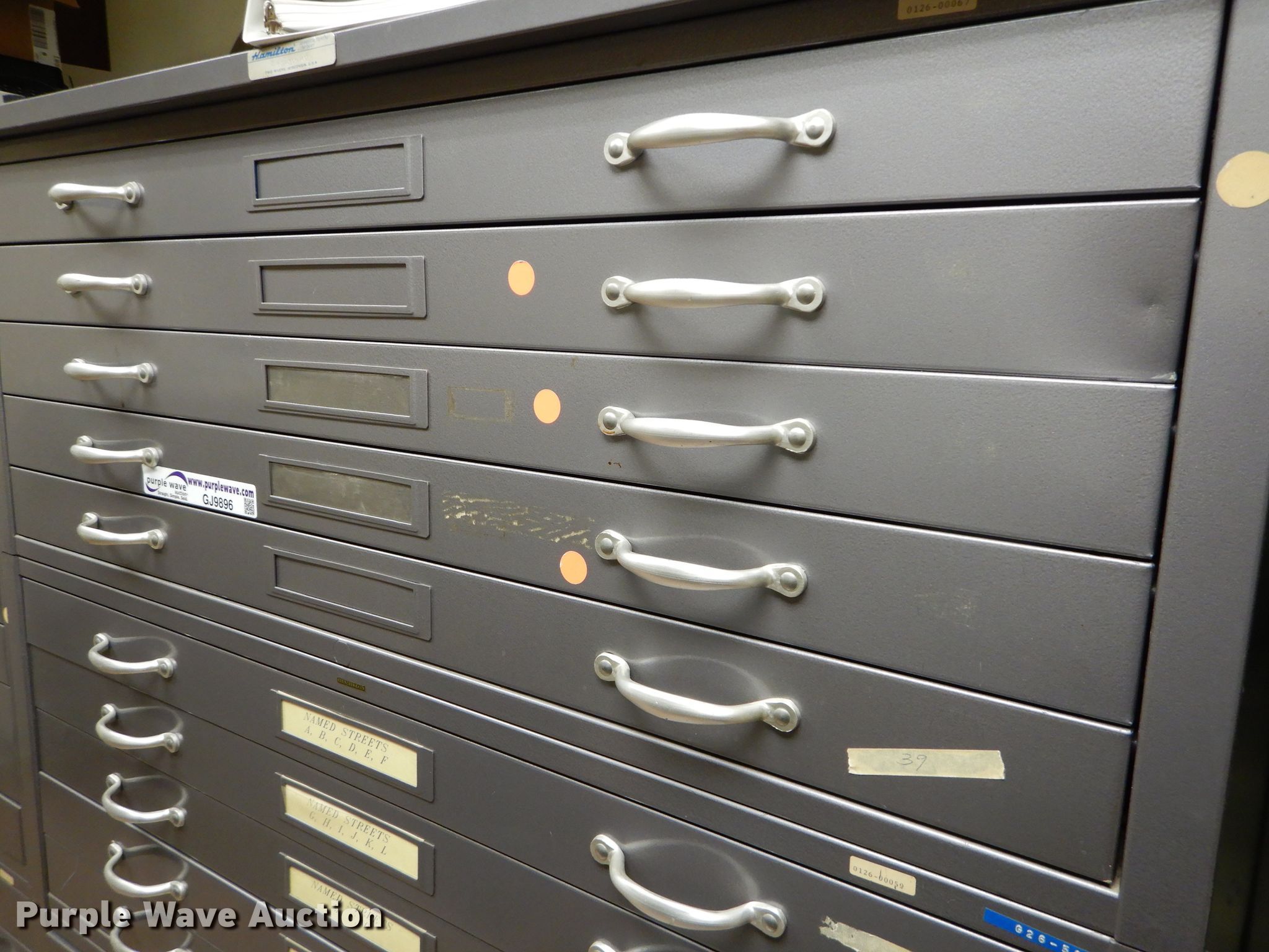 Purple Wave is selling a used Office Supplies and Equip. in Kansas. This item is a (10) five drawer cabinets with the following: 41"W x 21"D x 15.5"H, Some with vinyl separators