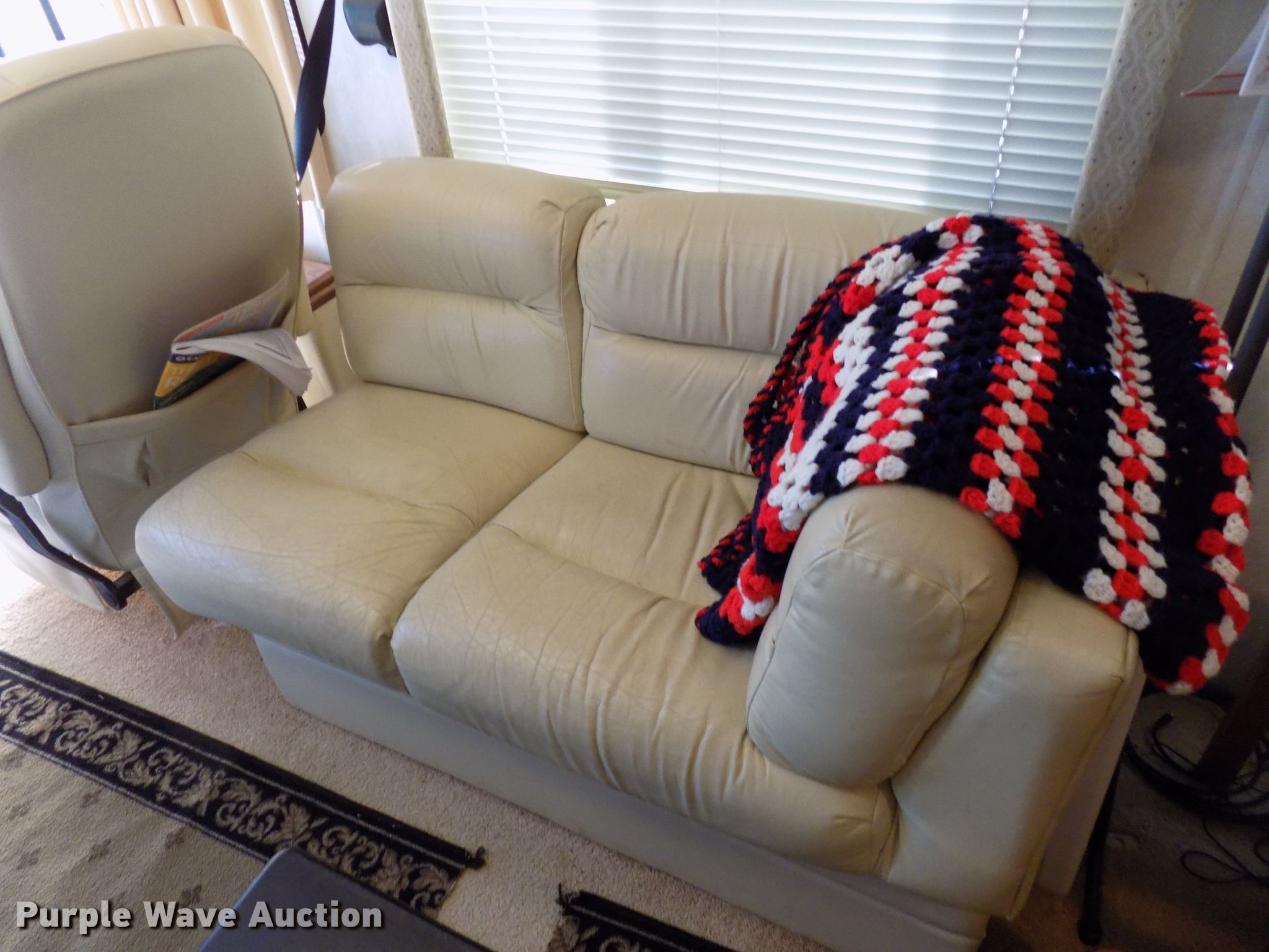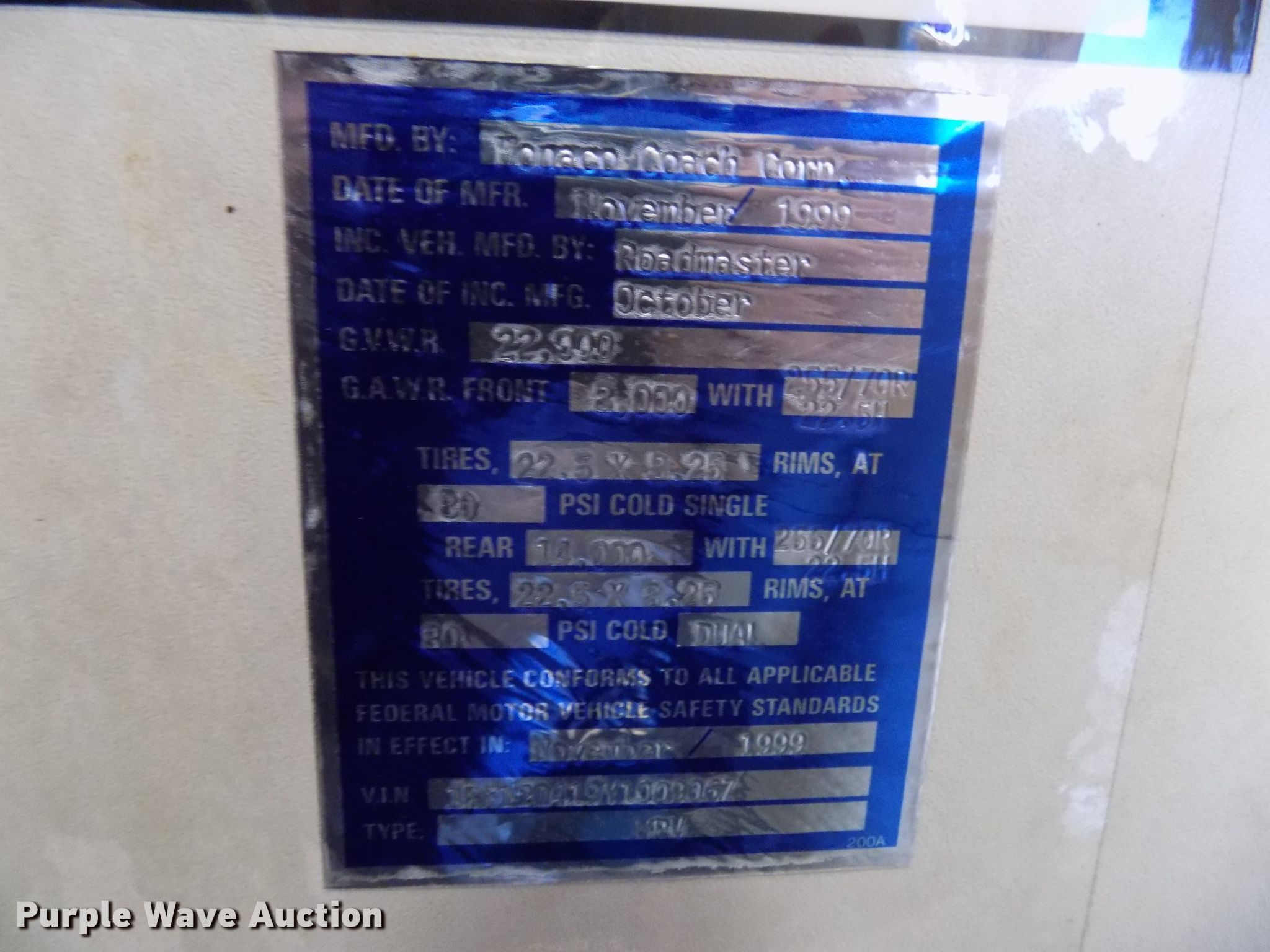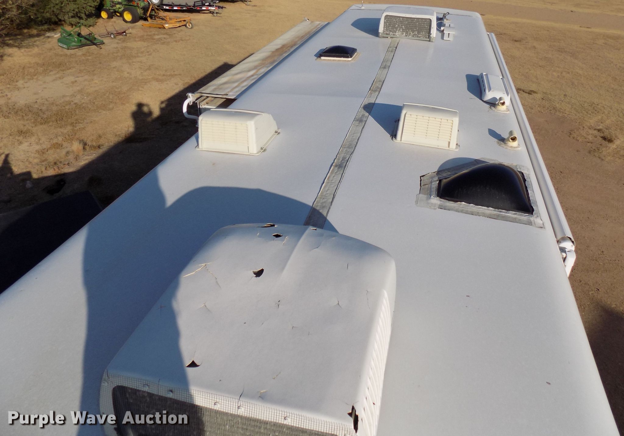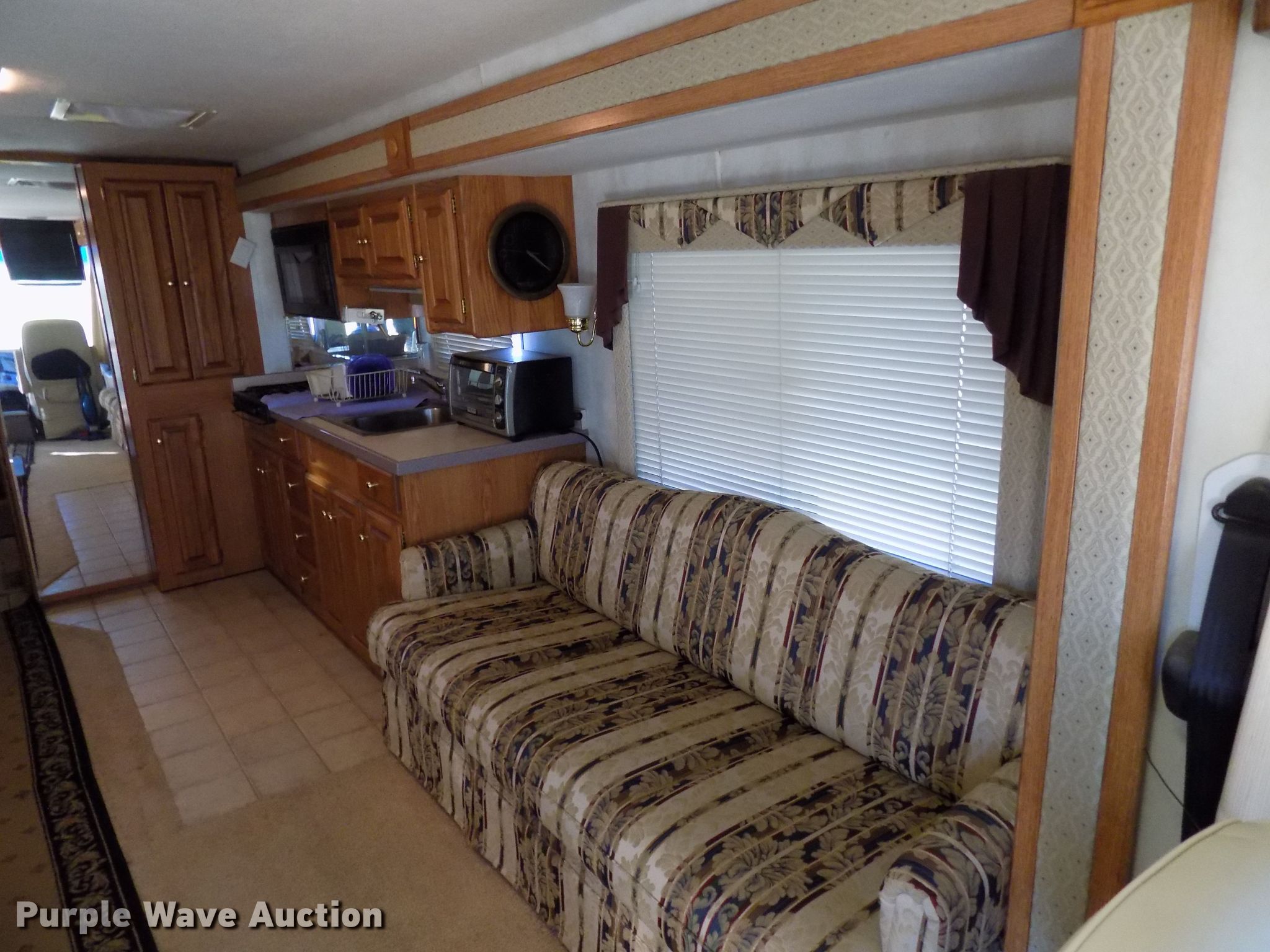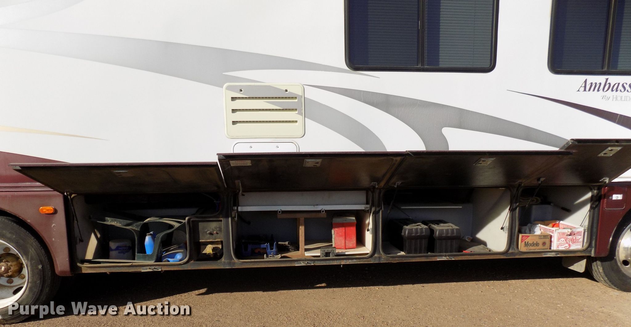 Purple Wave is selling a used RV in Colorado. This item is a 2000 Holiday Rambler Ambassador RV with the following: 52,456 miles on odometer, Cummins ISC 8.3L L6 diesel engine, Allison automatic transmission, Single axle, 36'L, Slide-out, (2) awnings, Kitchen, Sink, Refrigerator/freezer, Microwave, Gas stove, Living room, Table, Couch, Bathroom, Queen bed, (2) televisions, (2) AC units, Auto leveler, Onan 6300LP generator, Propane engine, Rear hitch, Air suspension, Air brakes, 255/70R22.5 tires, GVWR 22,000 lbs, Cracked windshield, Non-operational television, Living quarters battery weak