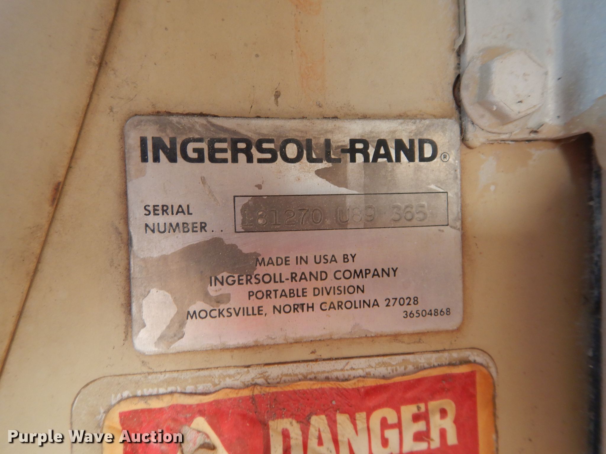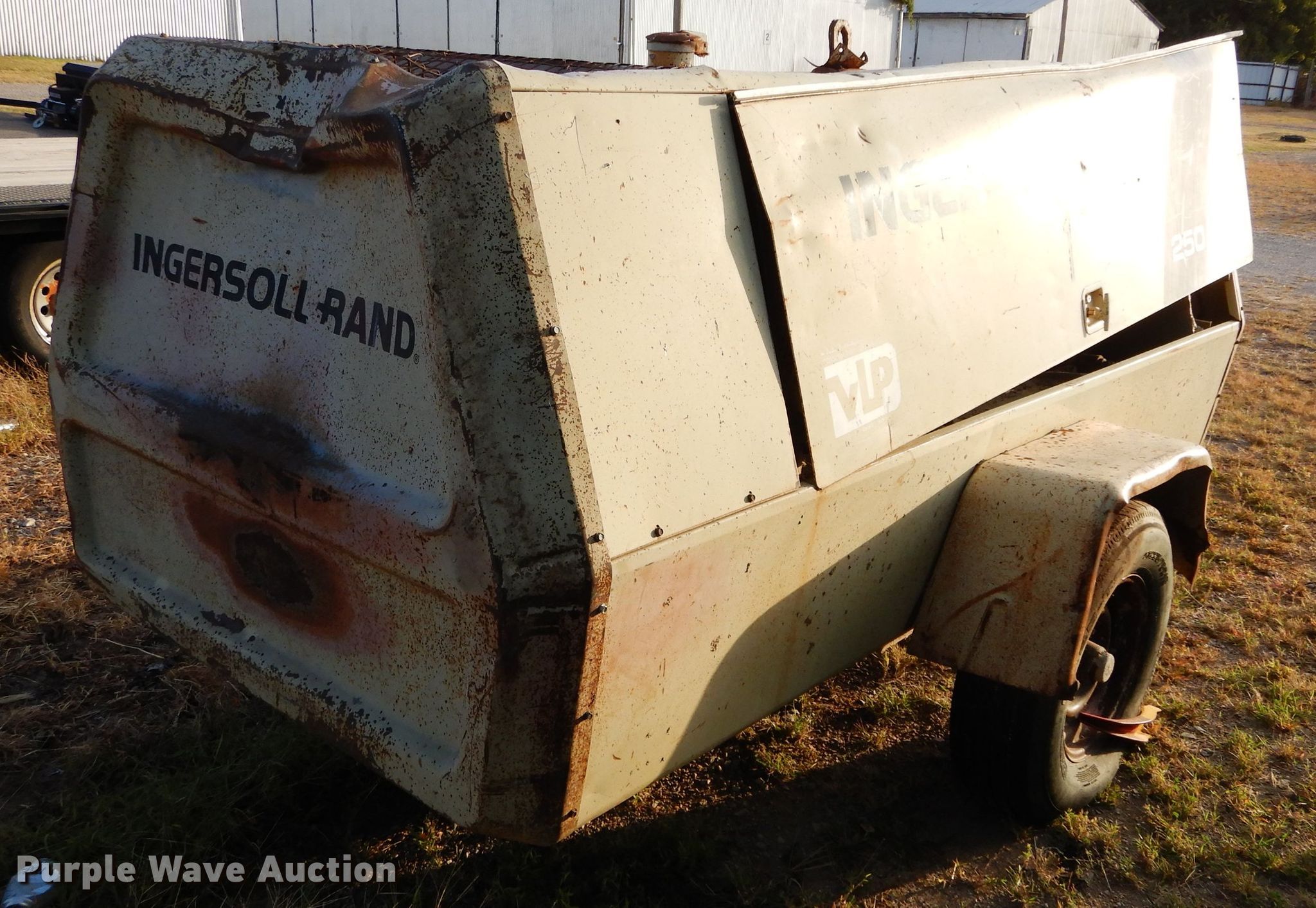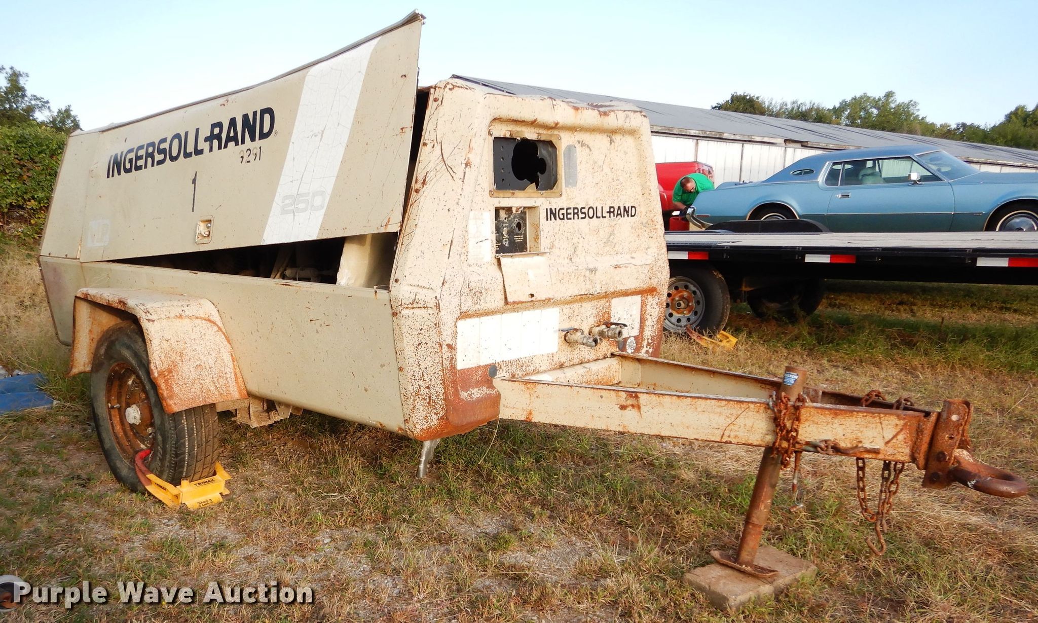 Purple Wave is selling a used Air Compressor in Oklahoma. This item is a Ingersoll Rand VLP250 air compressor with the following: Deutz four cylinder diesel engine, Pintle hitch, 225/75R15 tires, Serial 181270U89365