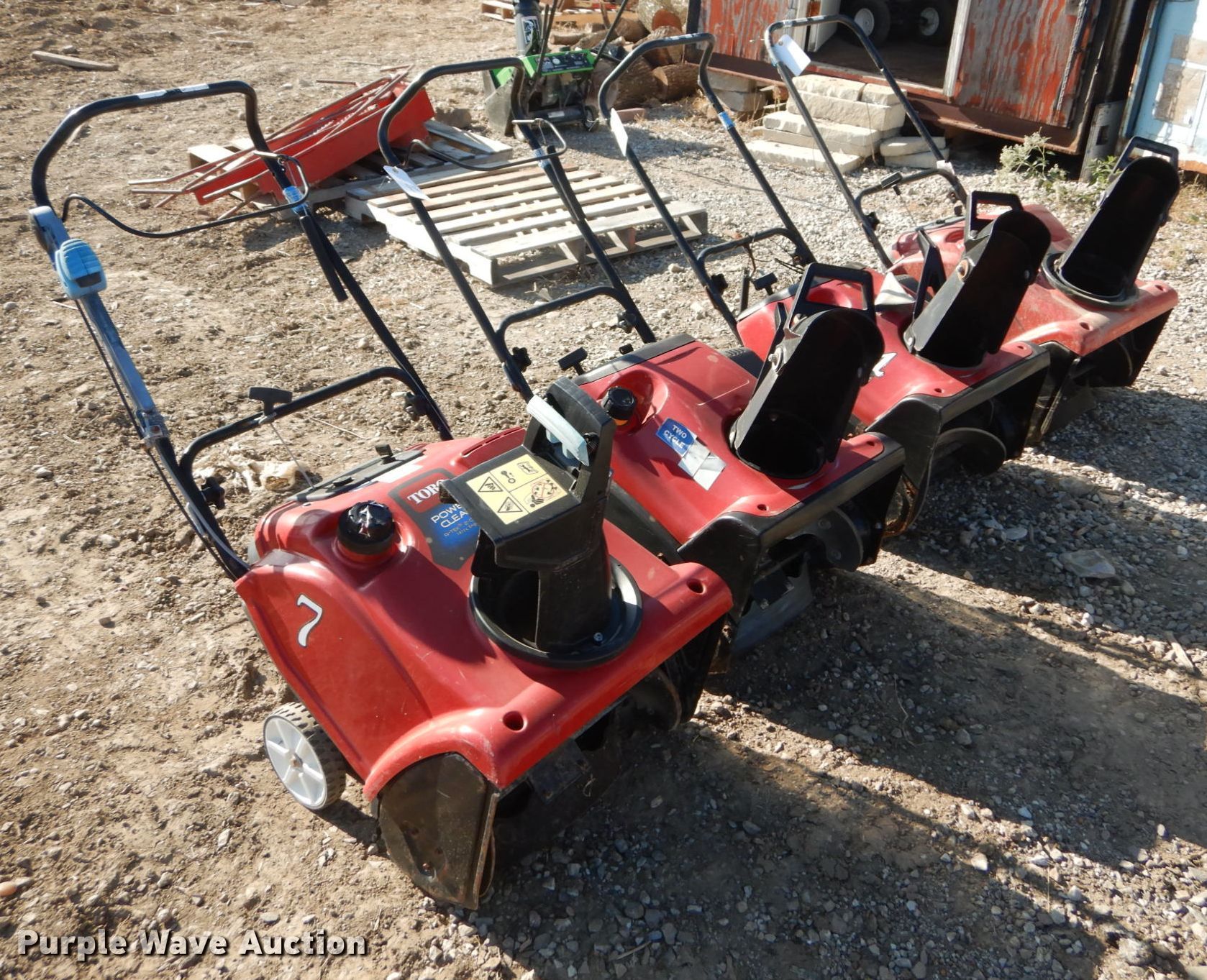 Purple Wave is selling a used Lawn and Garden in Missouri. This item is a (4) Toro snow blowers with the following: Model 38583, (2) model 38515, Model 38587, (2) 21"W, Two cycle gas engines, (2) 20"W, Two cycle gas engines