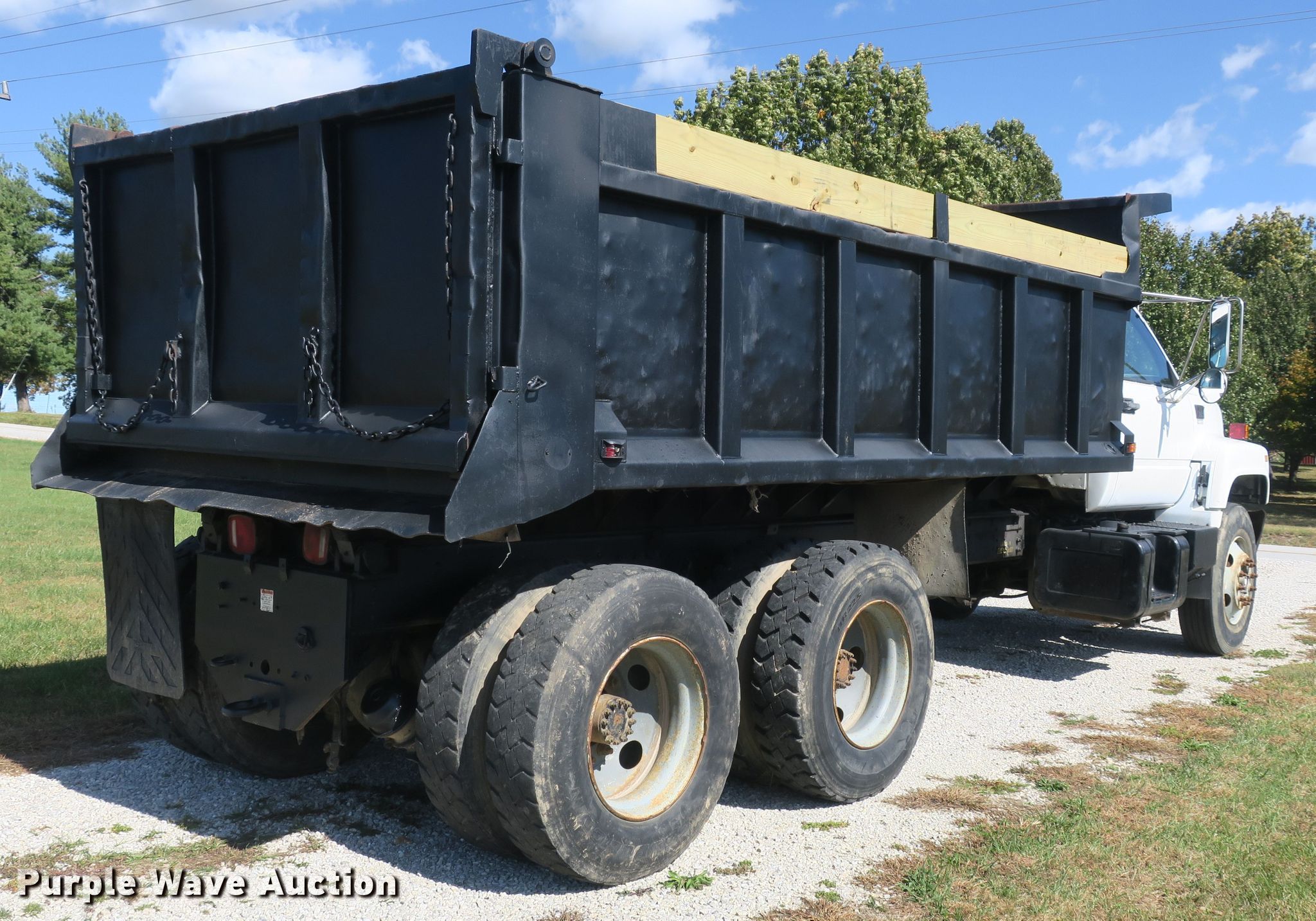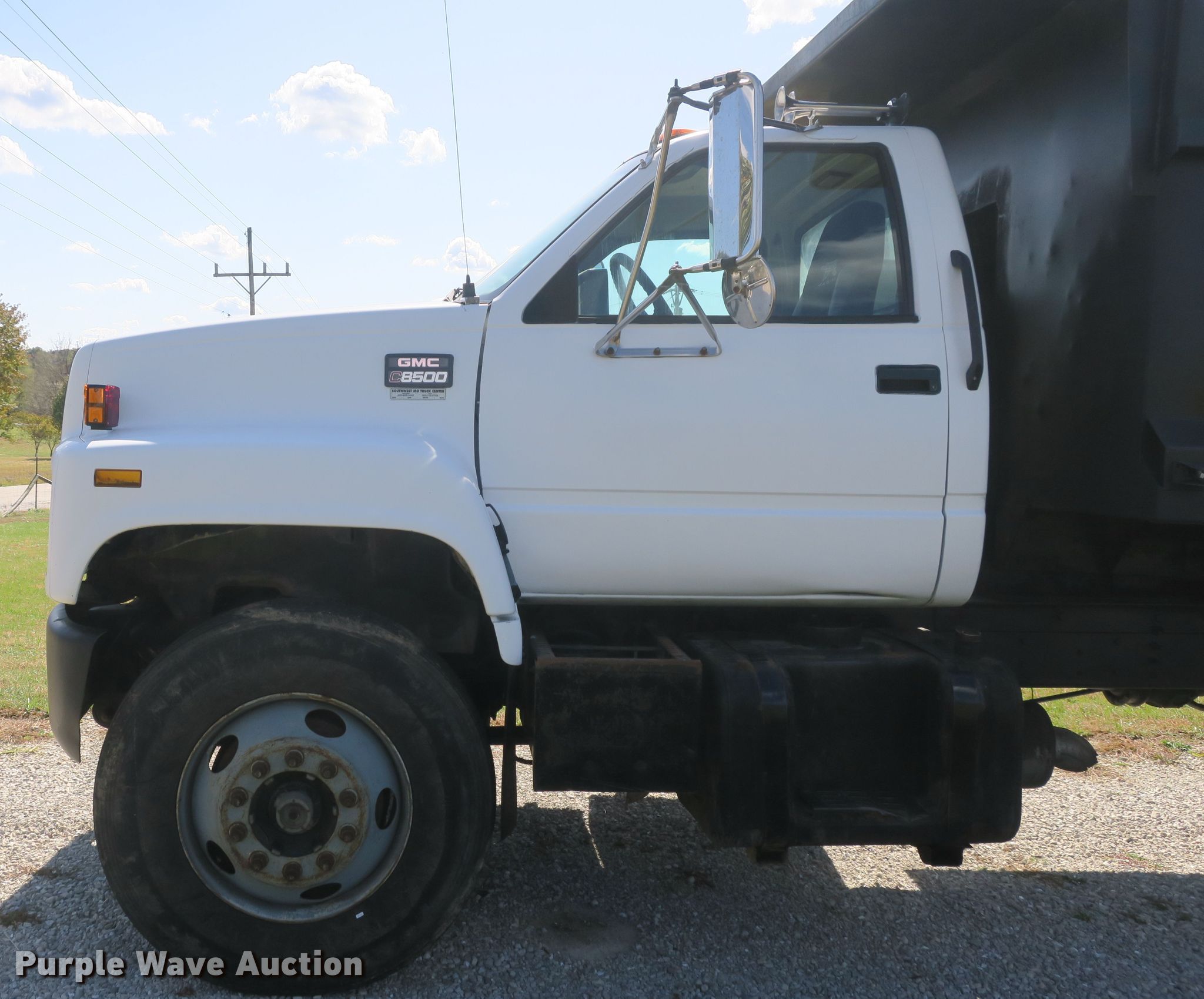 Purple Wave is selling a used Construction Dump Truck in Missouri. This item is a 2002 GMC C8500 dump truck with the following: 234,256 miles on odometer, 17,280 hours on meter, Caterpillar 3126 7.2L L6 diesel engine, Eaton Fuller nine speed manual transmission, Tandem axle, AC and heat, PTO, 15'L x 96"W steel dump bed, 39" side height, 8" side board height, Single ram hoist, Air operated end gate, Spring over walking beam suspension, Air brakes, 11R22.5 tires, GVWR 46,350 lbs, FAWR 12,350 lbs, IAWR 17,000 lbs, RAWR 17,000 lbs, Check engine light on, AC leaks
