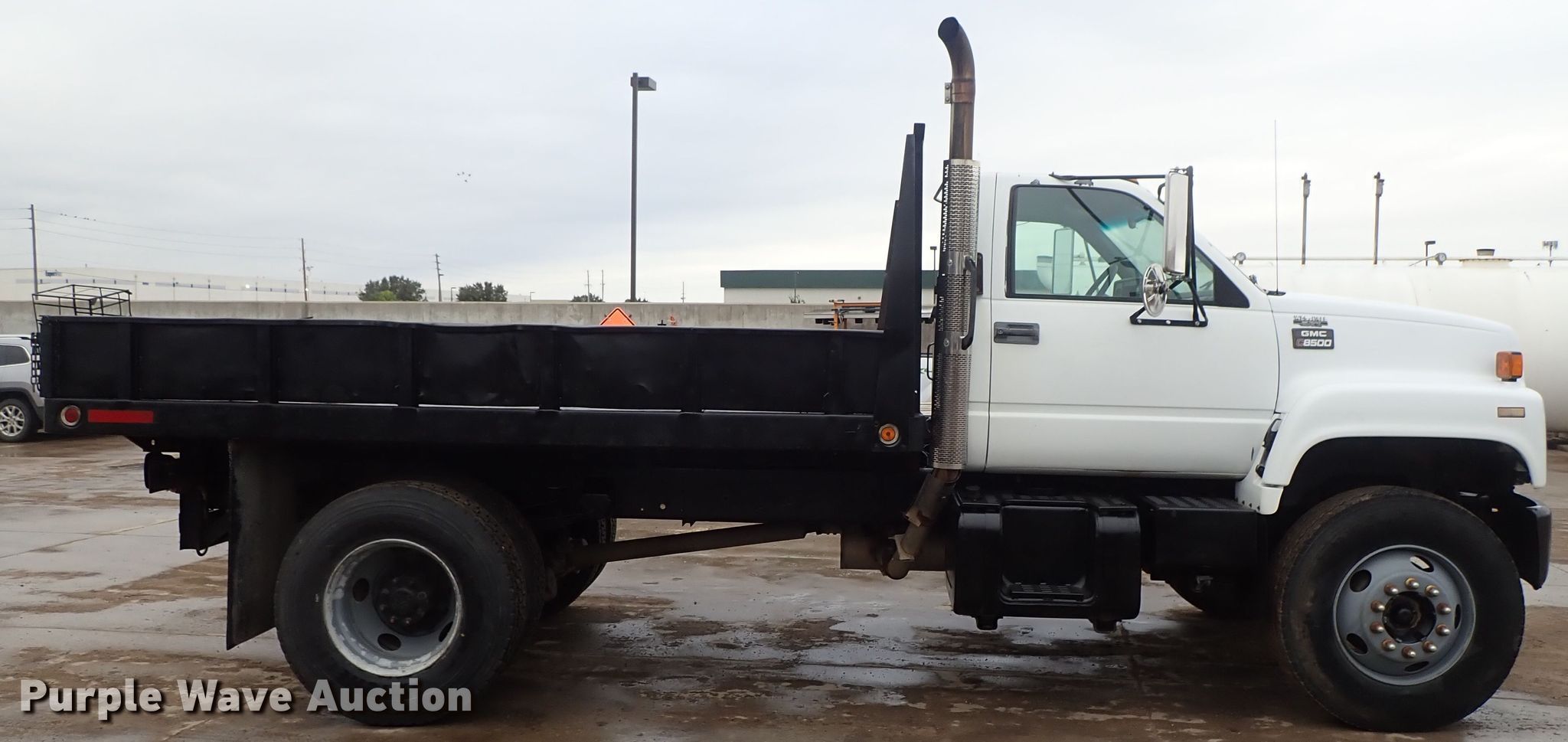 Purple Wave is selling a used Flat Bed Truck in Kansas. This item is a 2000 GMC C8500 flatbed truck with the following: 199,700 miles on odometer, Caterpillar 3126 7.2L six cylinder diesel engine, Eaton Fuller nine speed manual transmission, Single axle, AC and heat, Brake controller, 12'L x 96"W flatbed, Removable sides, Spring suspension, Air brakes, 11R22.5 tires, GVWR 34,000 lbs