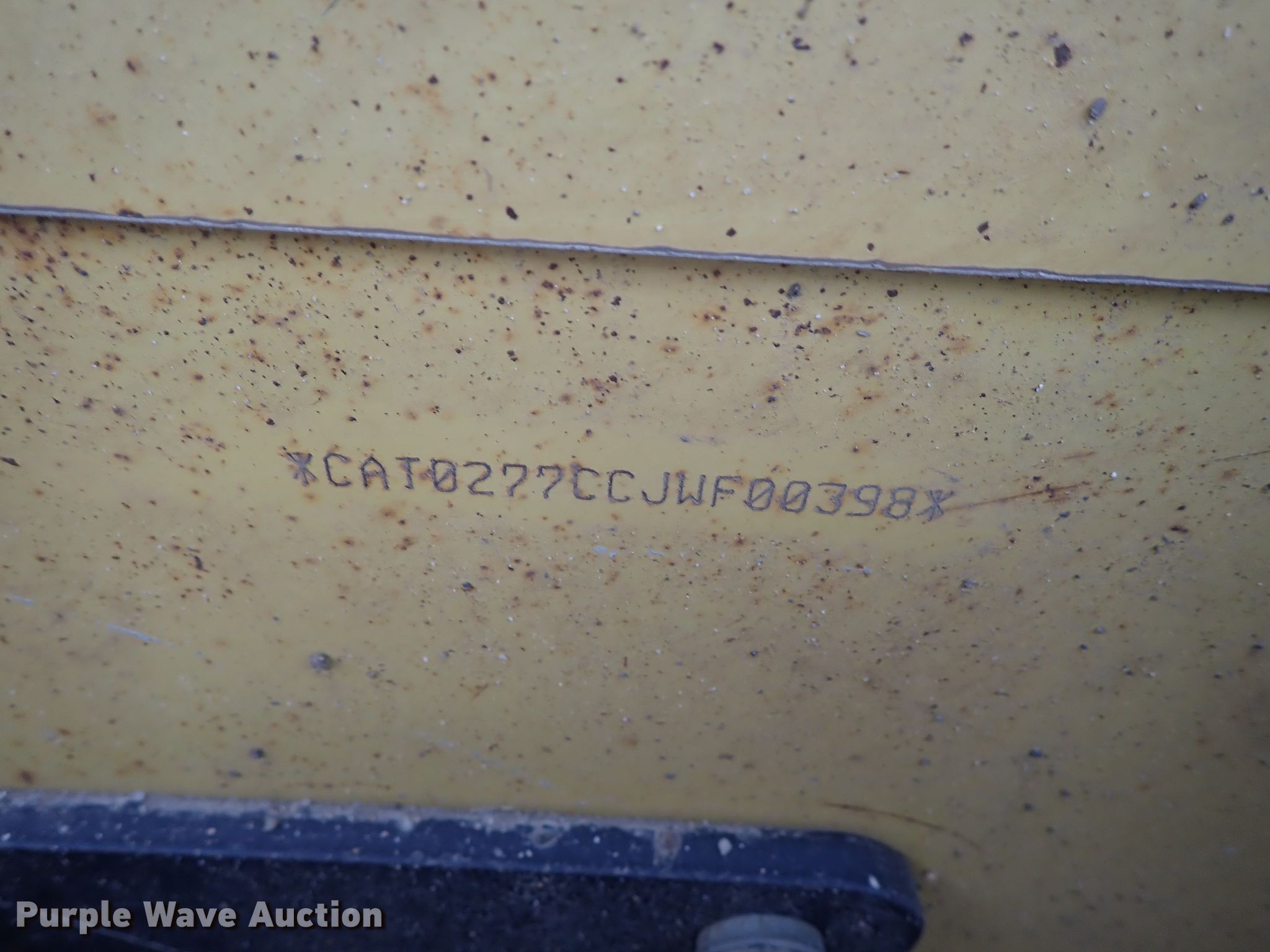 Purple Wave is selling a used Tracked Skid Steer Loader in Kansas. This item is a 2007 Caterpillar 277C skid steer with the following: 6,628 hours on meter, Caterpillar four cylinder diesel engine, Two speed hydrostatic transmission, Enclosed cab, AC and heat, Hand bucket controls, Auxiliary hydraulics, Hydraulic quick coupler, Caterpillar general purpose bucket, 72"W, Weld-on cutting edge, Bolt-on teeth, 0.57 cu. yd. capacity, 17"W tracks, Additional set of tracks, Serial CAT0277CCJWF00398