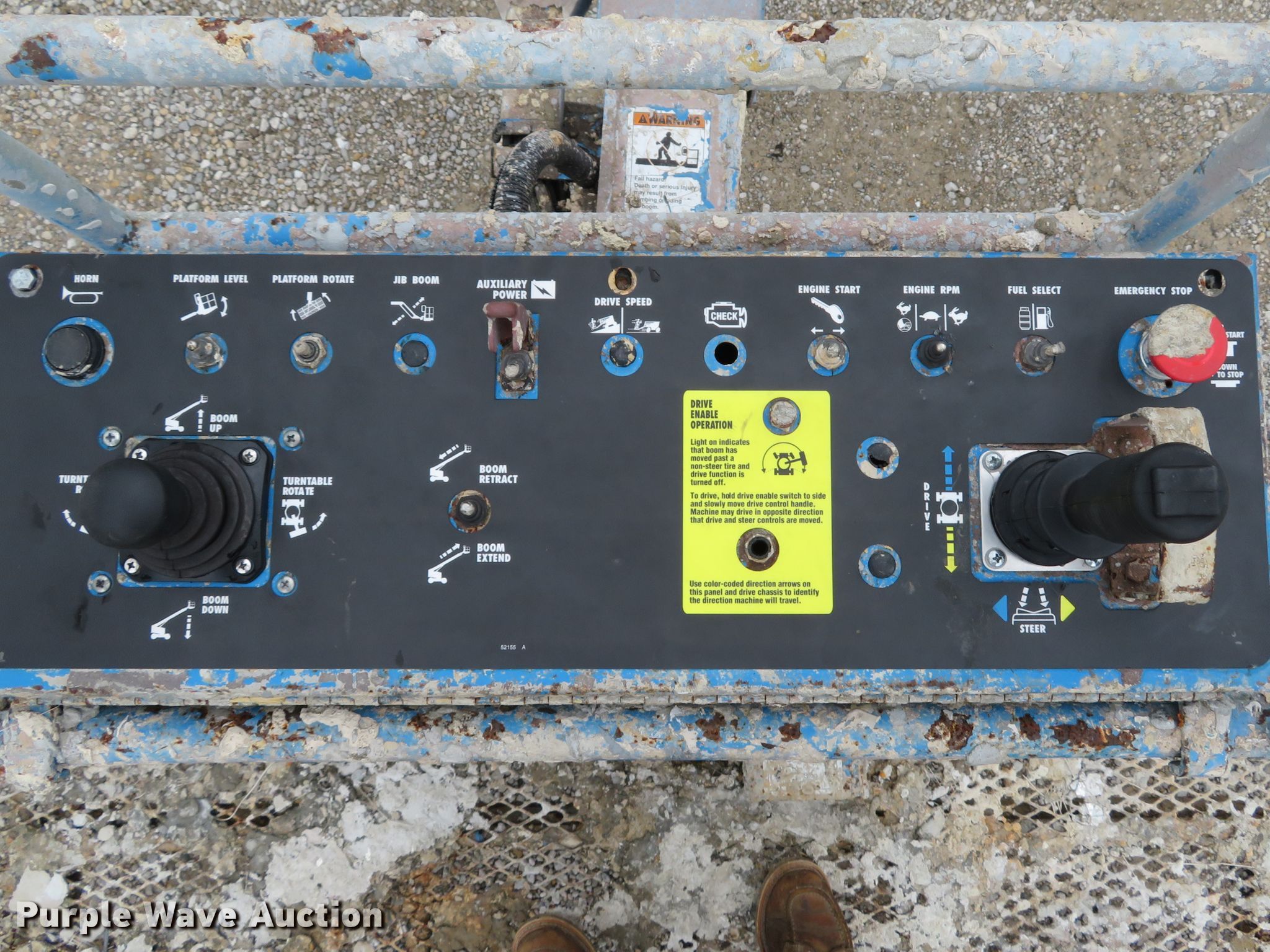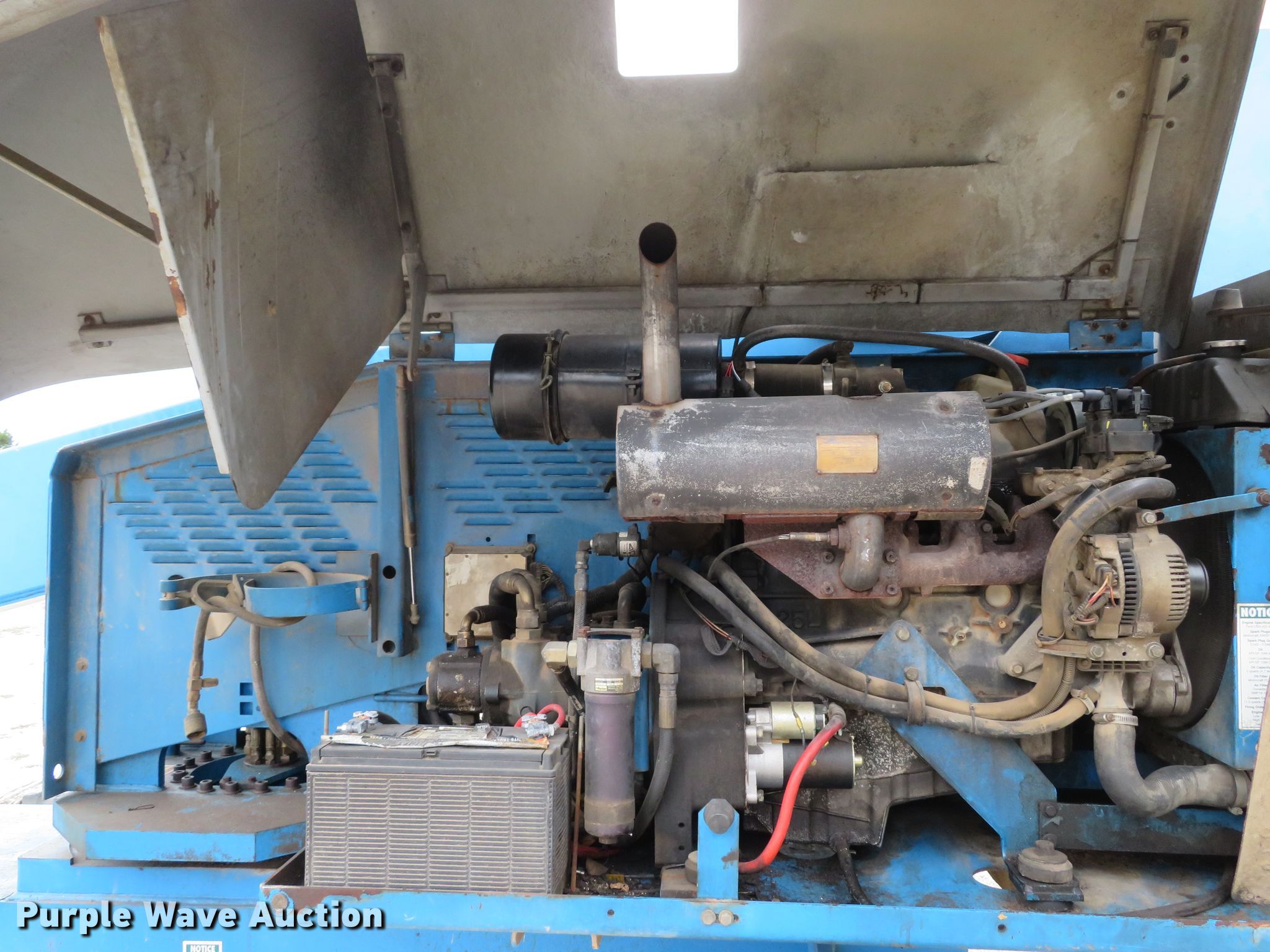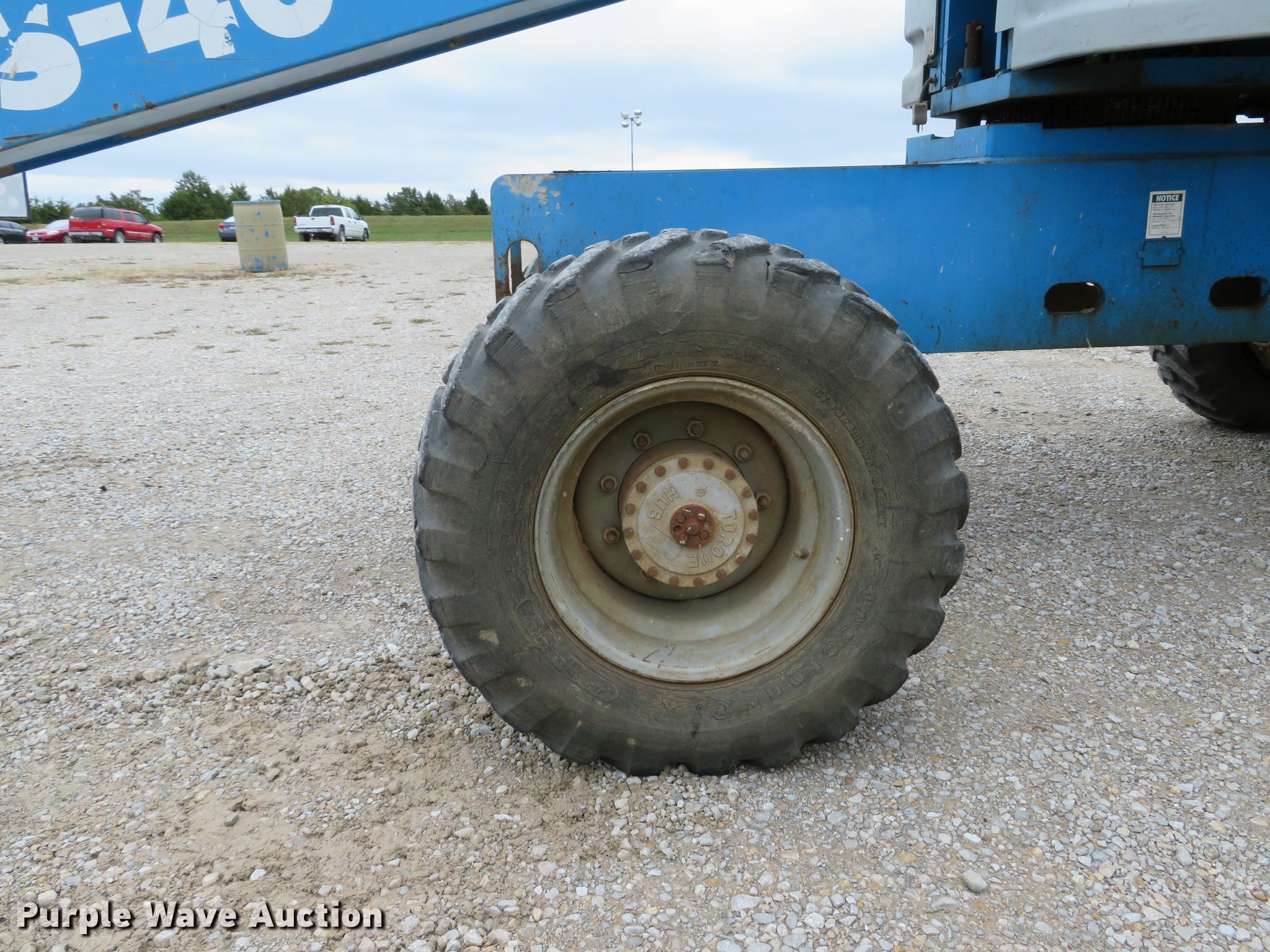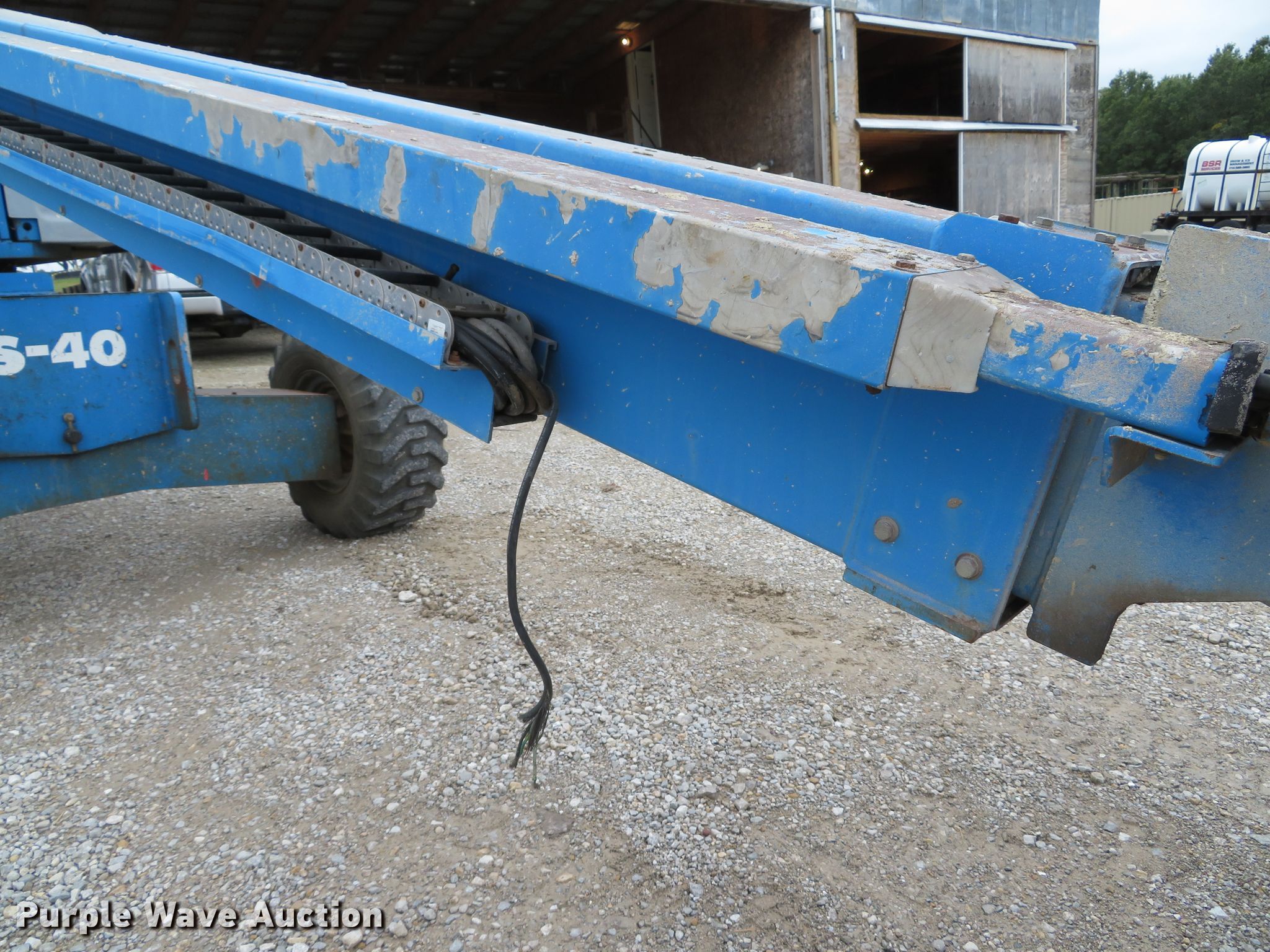 Purple Wave is selling a used Boom Lift in Missouri. This item is a 1999 Genie S40 boom lift with the following: 4,476 hours on meter, Ford LRG-425 EFI four cylinder dual fuel engine, Gas and propane capable, 500 lbs maximum lift capacity, 31'8" maximum reach, 40' maximum lift height, 33"L x 93"W platform, Platform and ground controls, Hydraulic platform rotation, Hydraulic leveling, 12-16.5 foam filled tires, Serial 2303