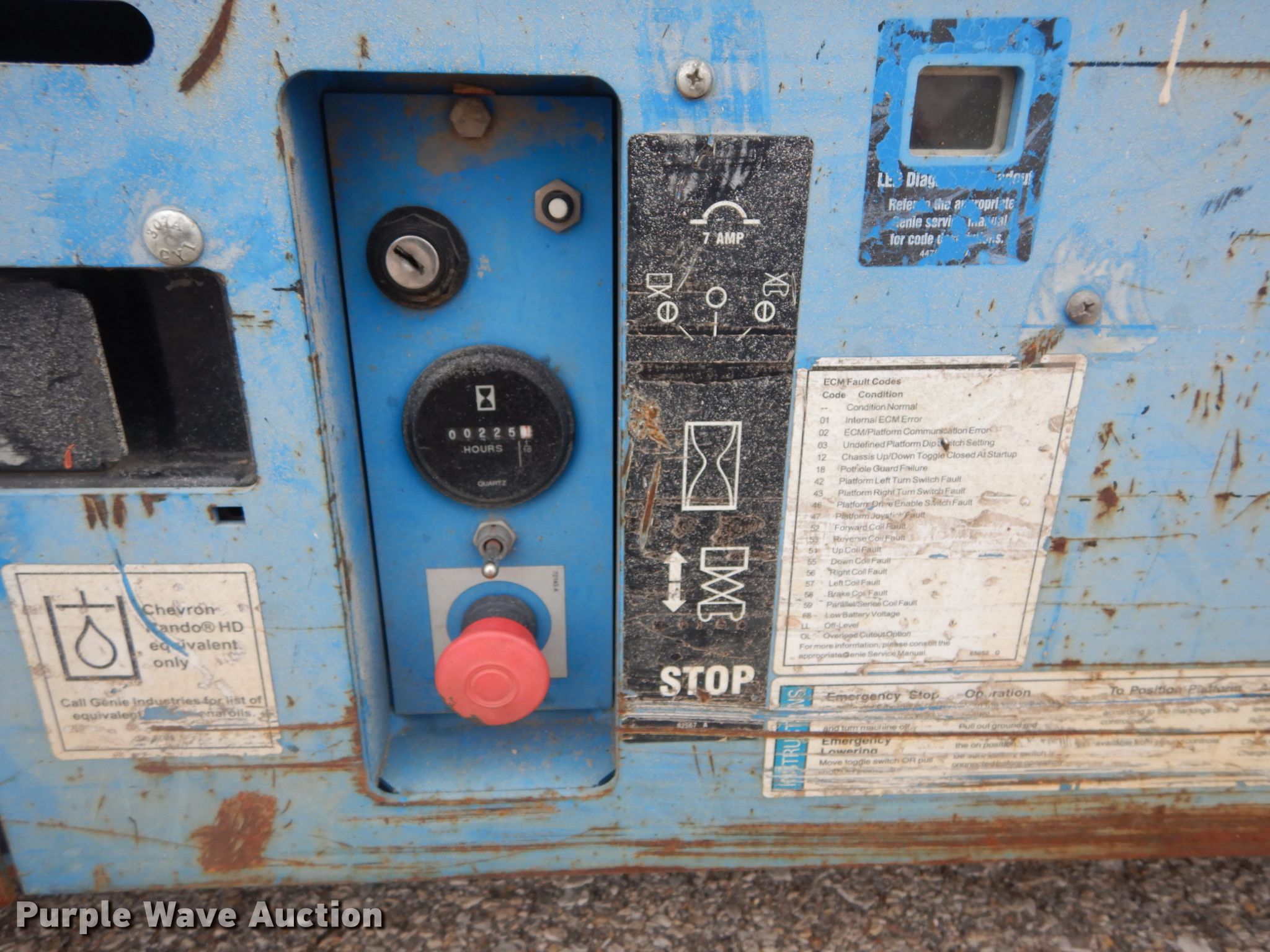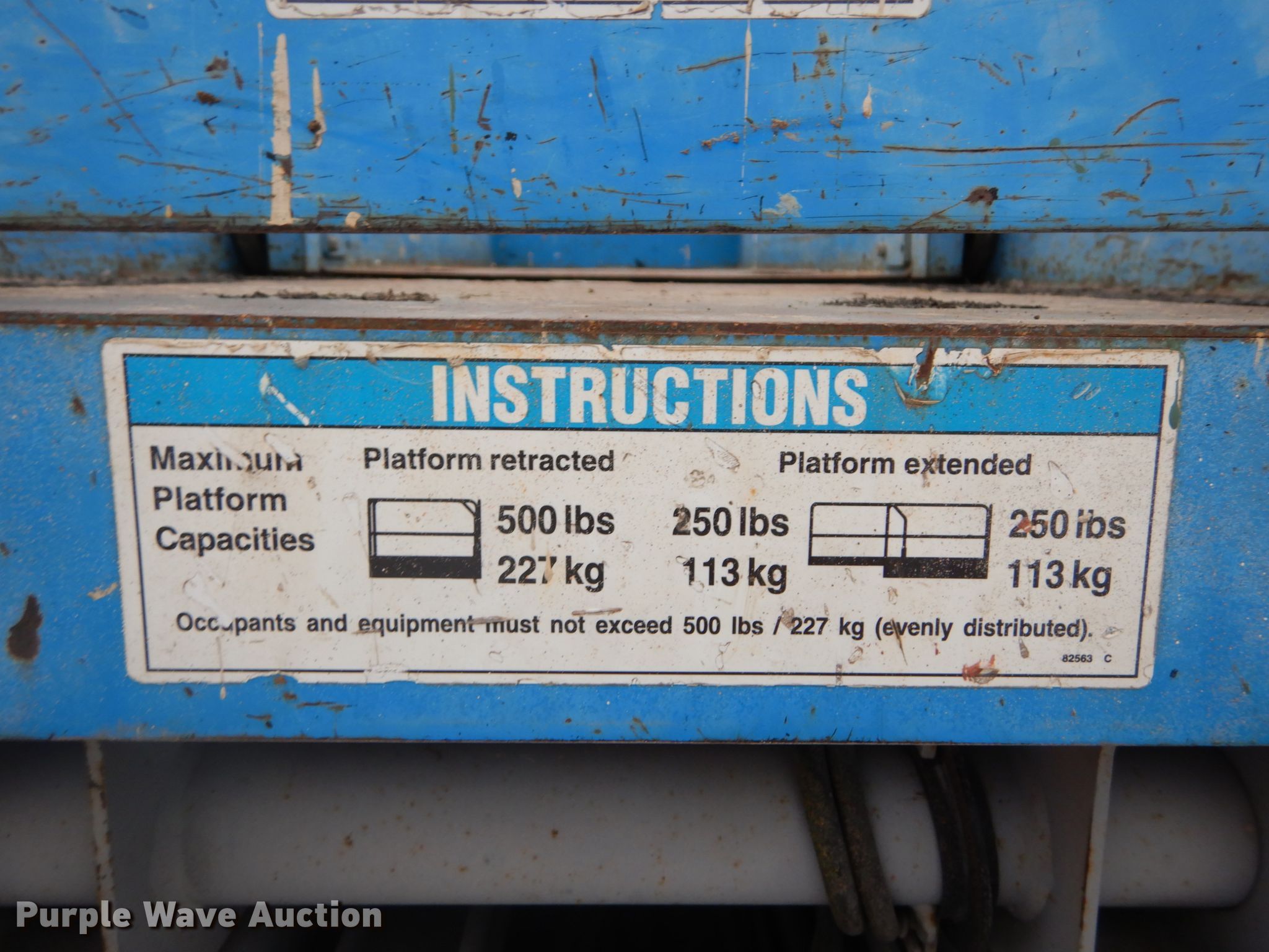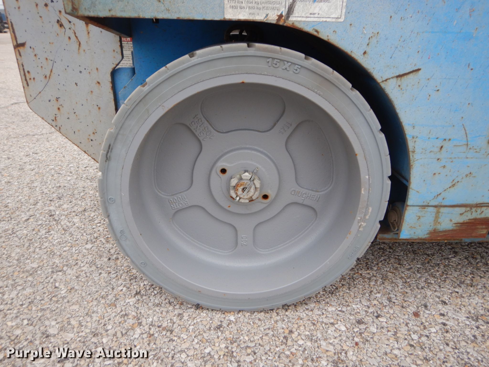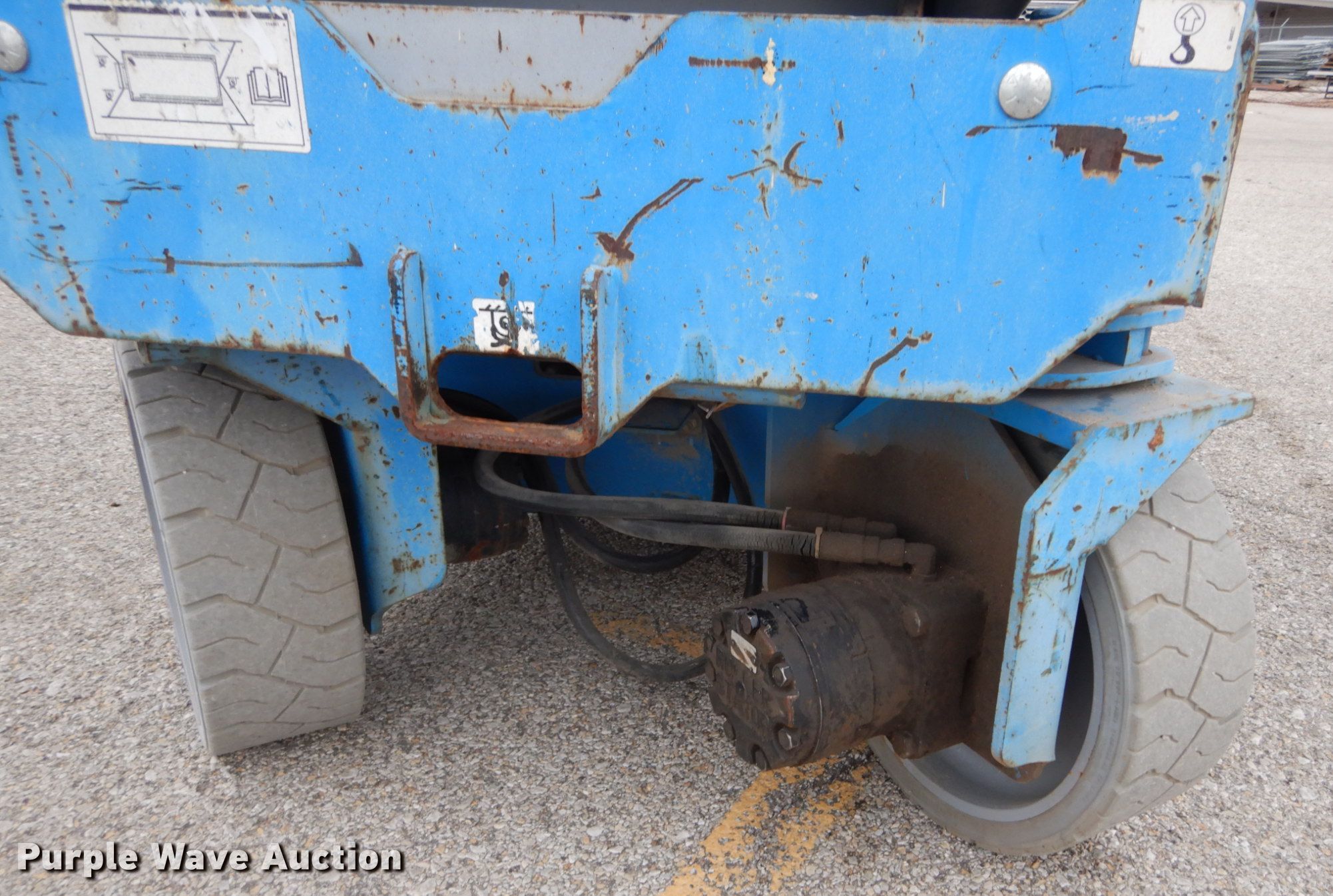 Purple Wave is selling a used Scissor or Vertical Lift in Missouri. This item is a 2012 Genie GS-2632 scissor lift with the following: 225 hours on meter, Electric operation, 500 lbs maximum lift capacity, 26' maximum lift height, 7'L x 2.5'W platform, Manual platform extensions, AC power outlet, Platform controls, 15 x 5 x 11 1/4 tires, Serial GS3212A98725