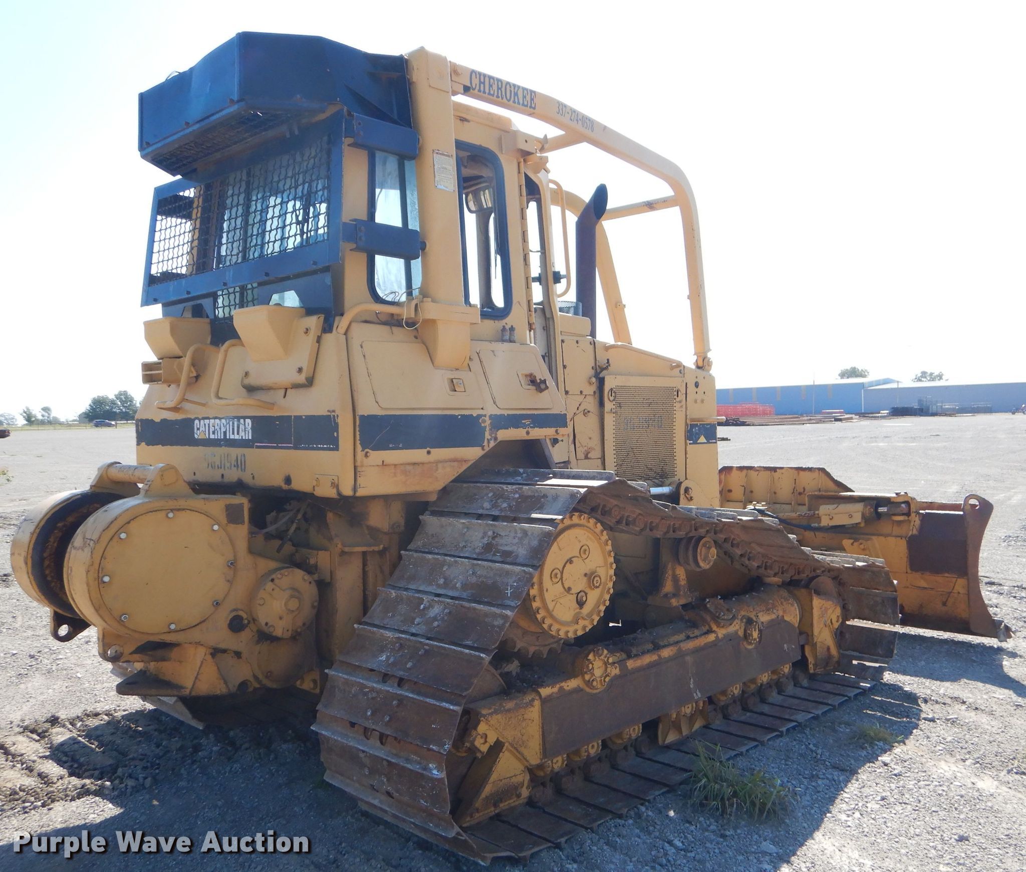 Purple Wave is selling a used Crawler Dozer in Oklahoma. This item is a 1997 Caterpillar D4H LGP dozer with the following: 6,268 hours on meter, Caterpillar four cylinder diesel engine, Powershift transmission, Enclosed cab, Joystick steering, 124"W six-way dozer blade, Caterpillar winch, Seven bottom rollers, 30"W single grouser track pads, Serial 9GJ1940