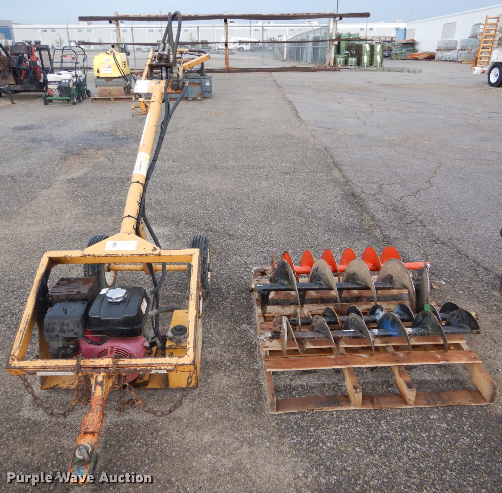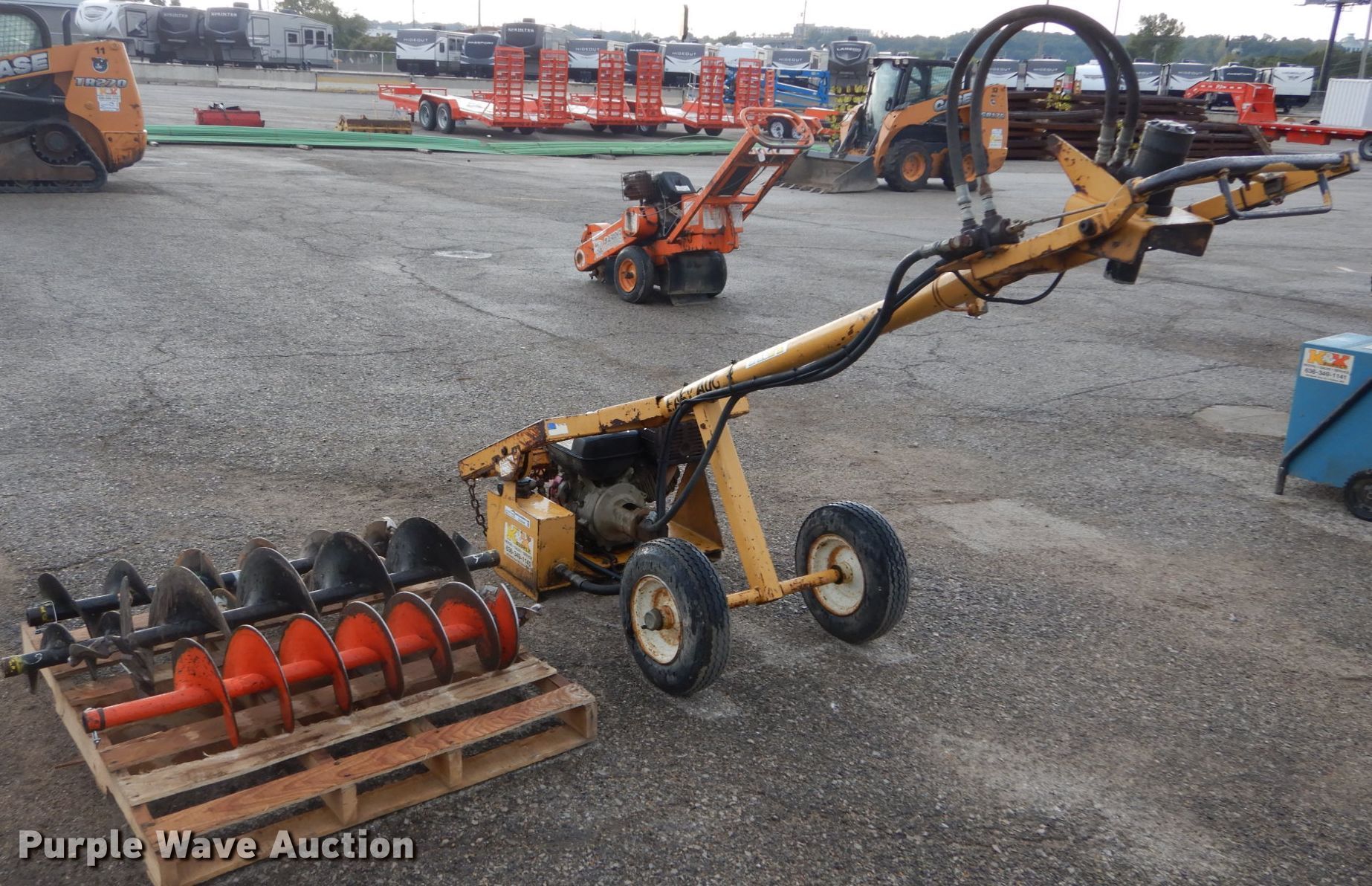 Purple Wave is selling a used Tools in Missouri. This item is a Easy Auger post hole auger with the following: Honda gas engine, 12" diameter auger, 10" diameter auger, 8" diameter auger, 6" diameter auger, 2" ball hitch, 4.80-8 tires, Serial 910166, Unit# 2