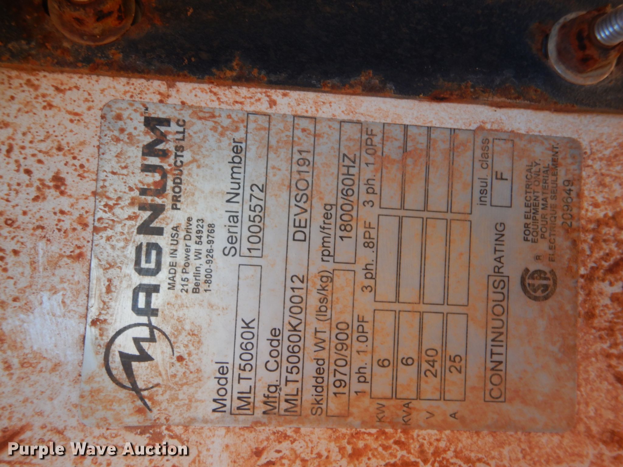 Take a look at this used 2010 Magnum MLT5060K light plant being sold on November 14th, 2019 in the SOLD! November 14 Construction Equipment Auction made by Magnum. Take a look at all of the item information below or take a look at similar auctions for Generators and Light Plants.