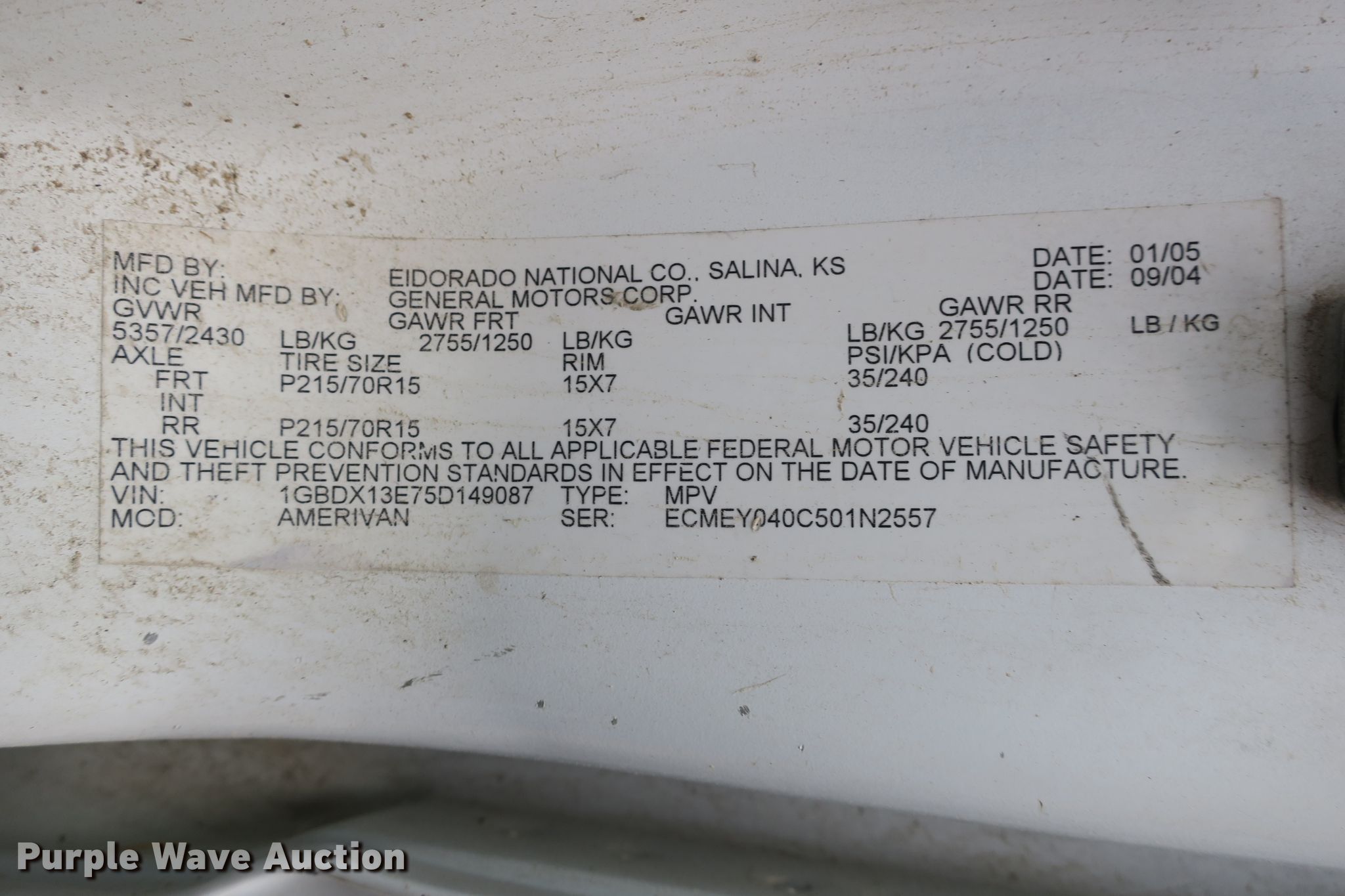Purple Wave is selling a used Passenger Vehicle in Missouri. This item is a 2005 Chevrolet Venture Amerivan handicap accessible van with the following: 152,013 miles on odometer, 3.4L V6 OHV 12V gas engine, Automatic transmission, AC and heat, Cruise, Power windows and locks, Wheelchair tie down area, 215/70R15 tires